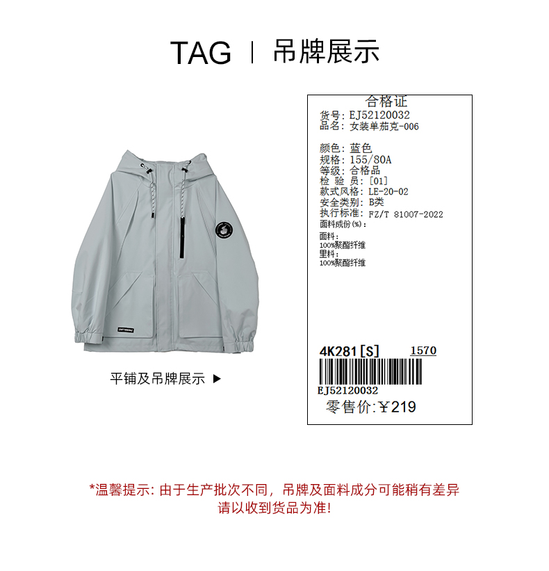 女装连帽大口袋中性款外套-006J5212003