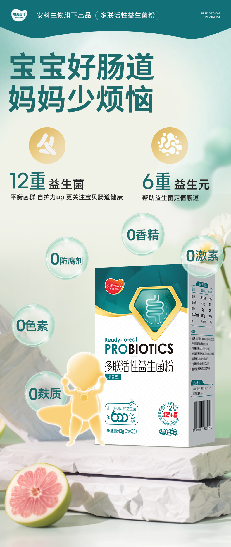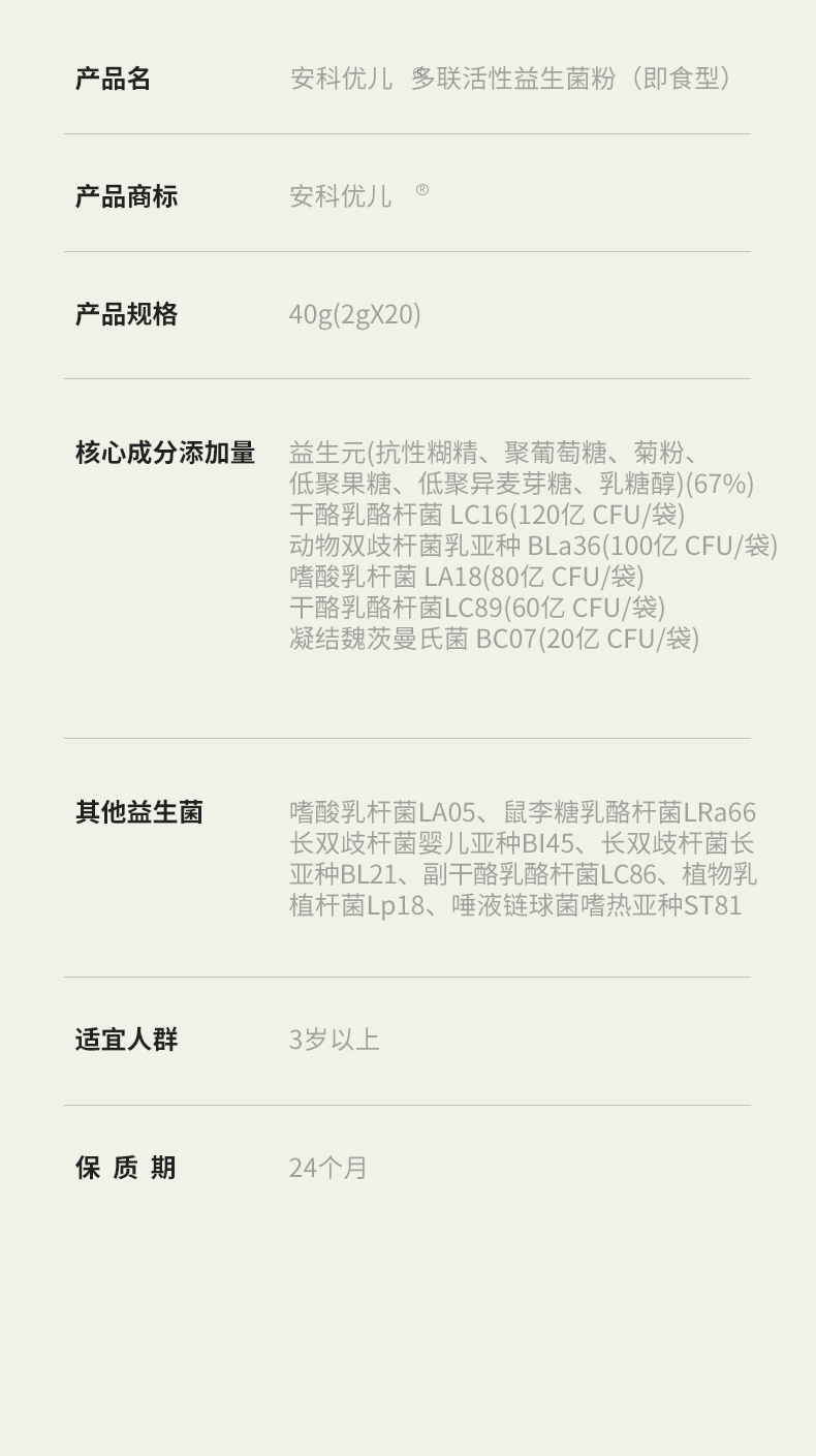 多联活性益生菌粉 适用便秘腹泻 儿童青少年骨骼成长 每袋1000亿CFU/袋活性益生菌益生元