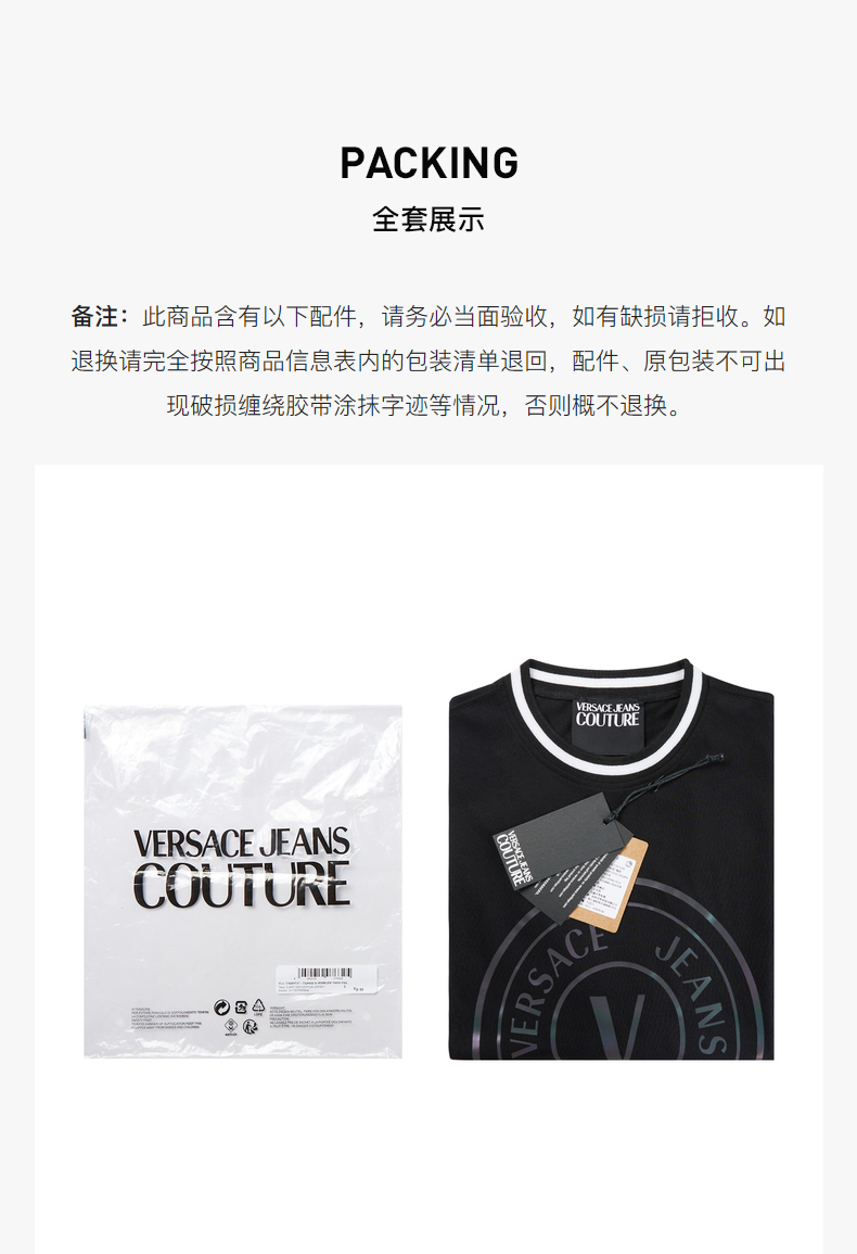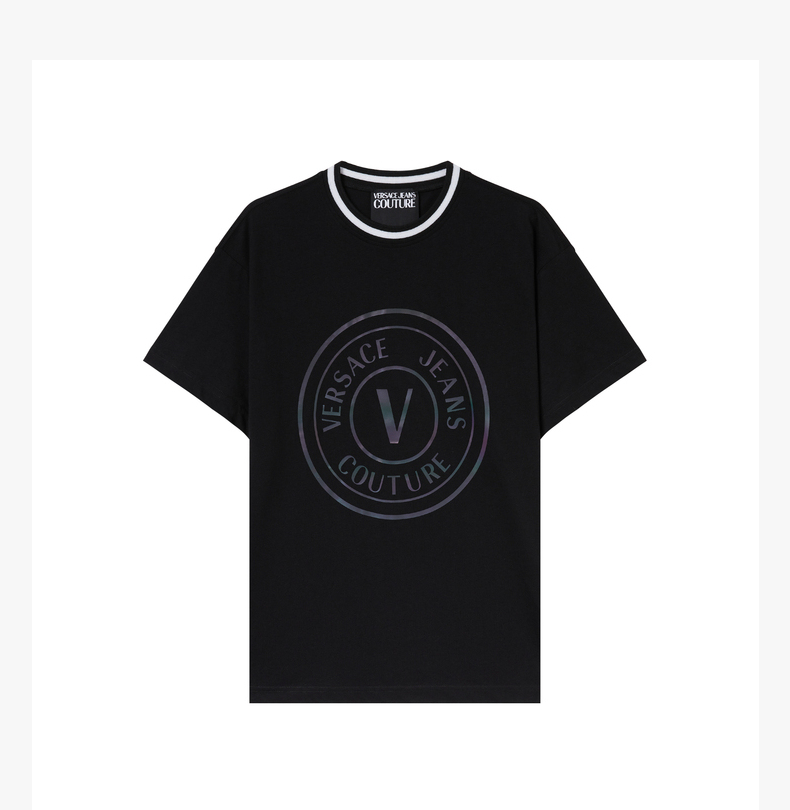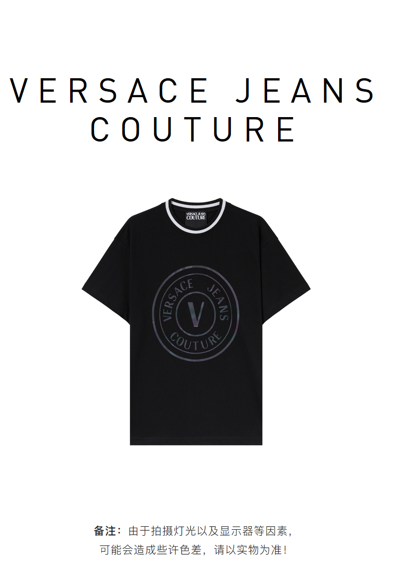 VERSACE JEANS 范思哲 男士经典圆形标识印花圆领短袖 黑色 73GAHG01 CJ00G 899