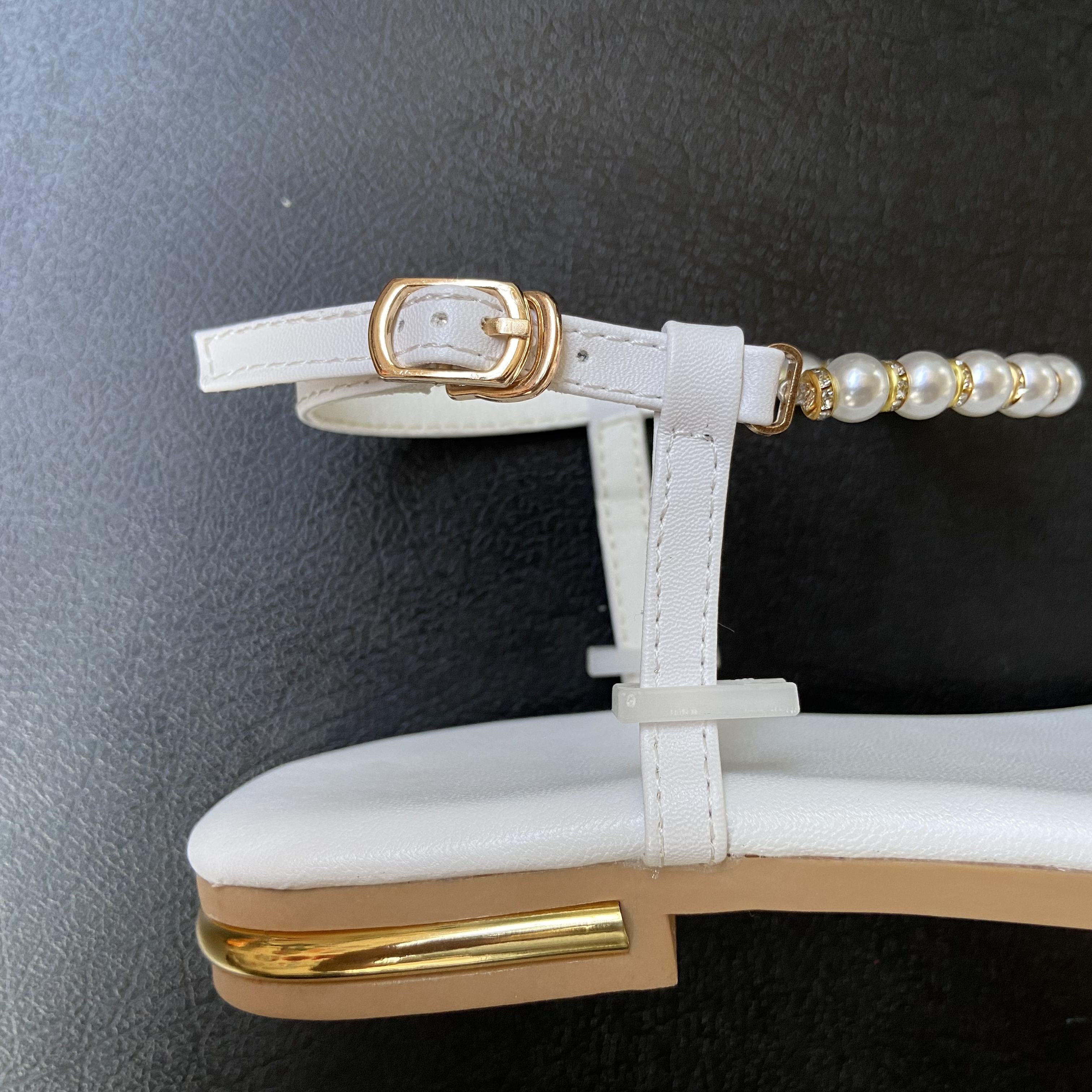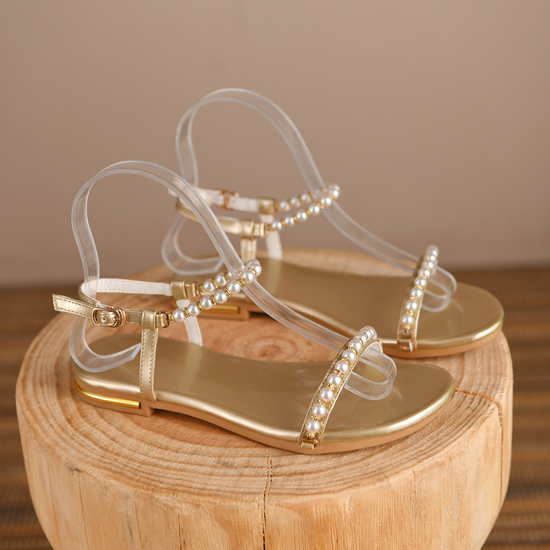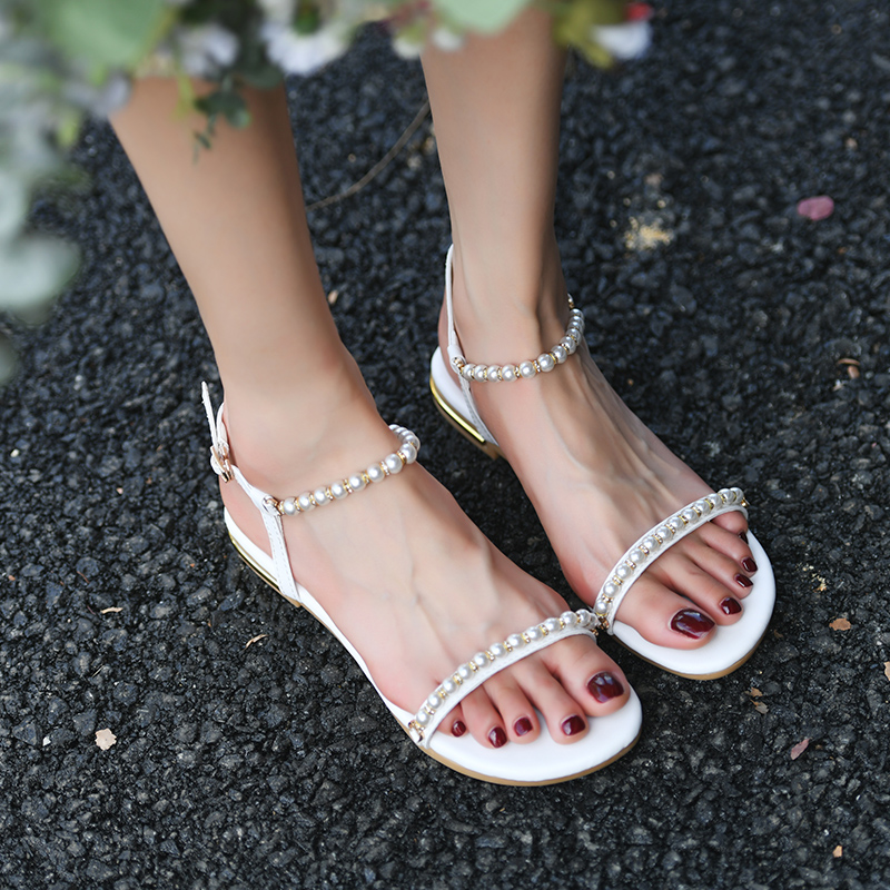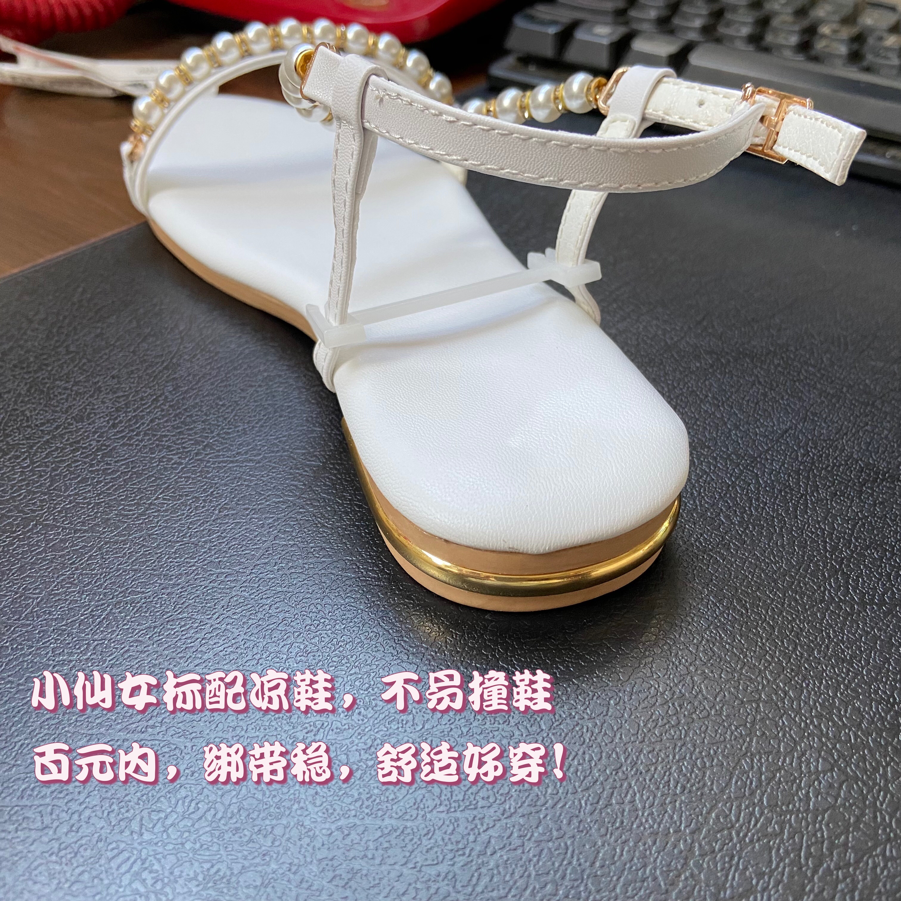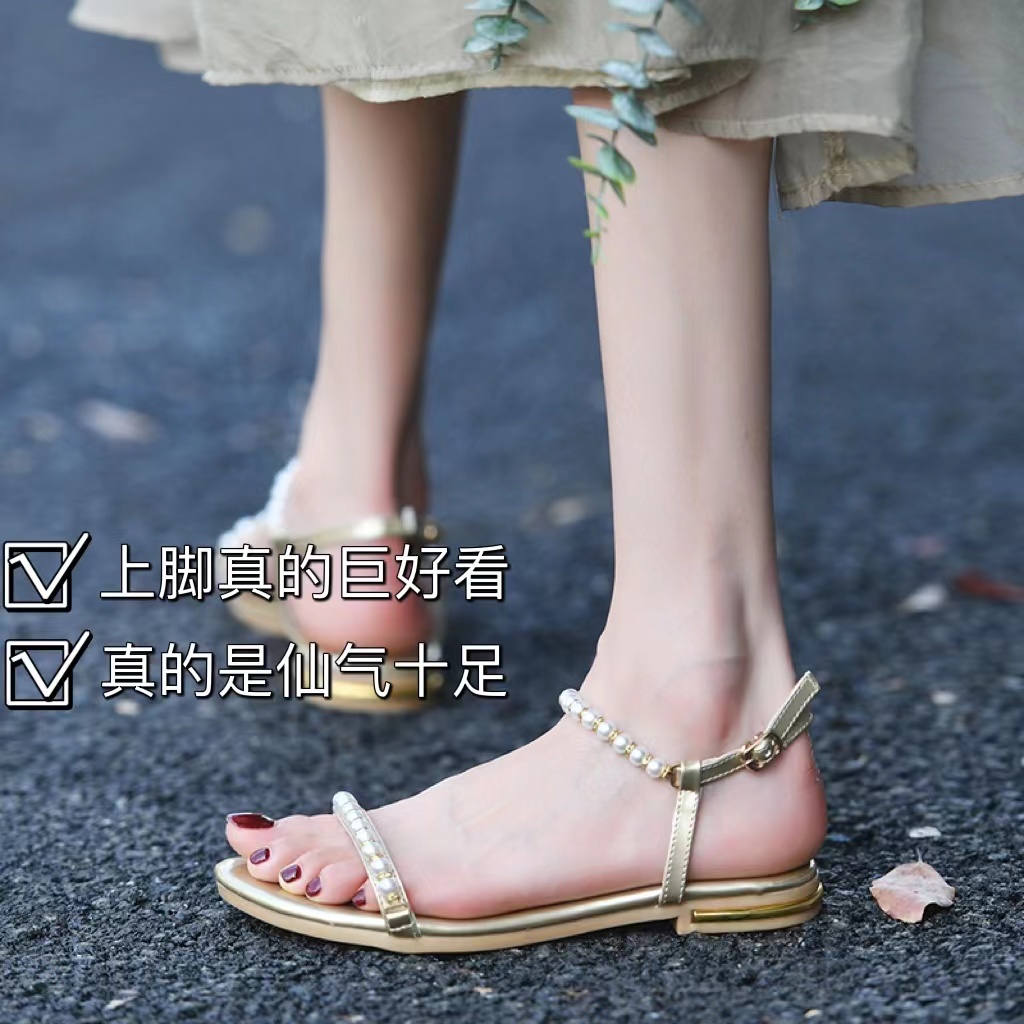 【品名】雅梦纤足仙女风一字珍珠羊皮凉鞋