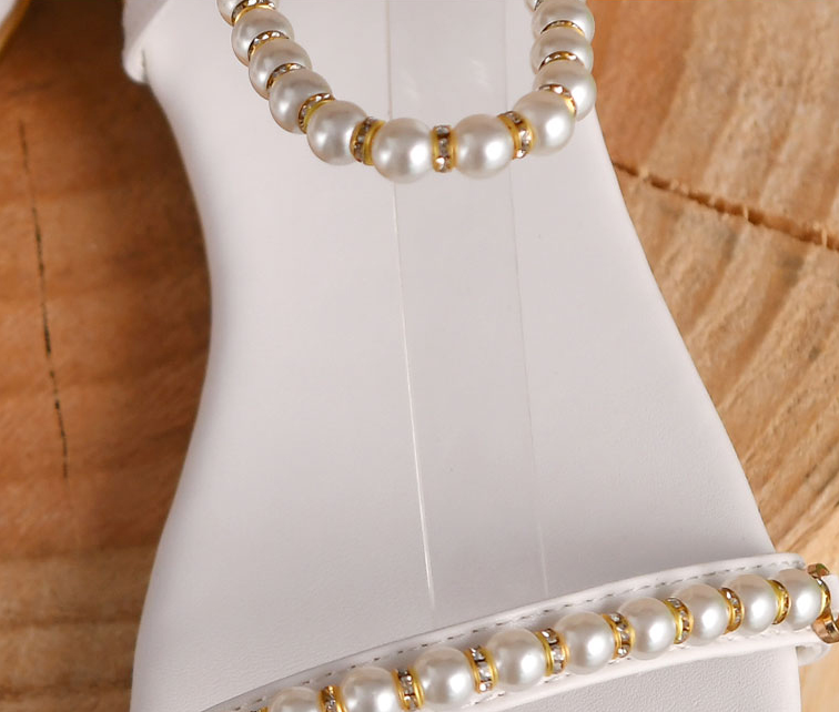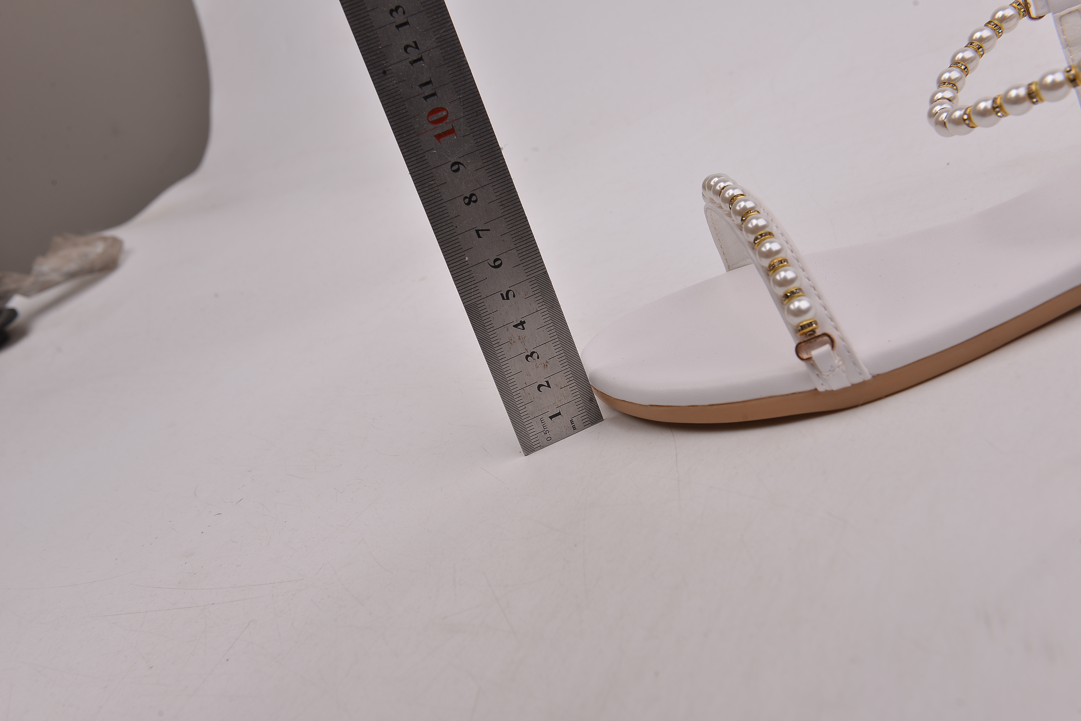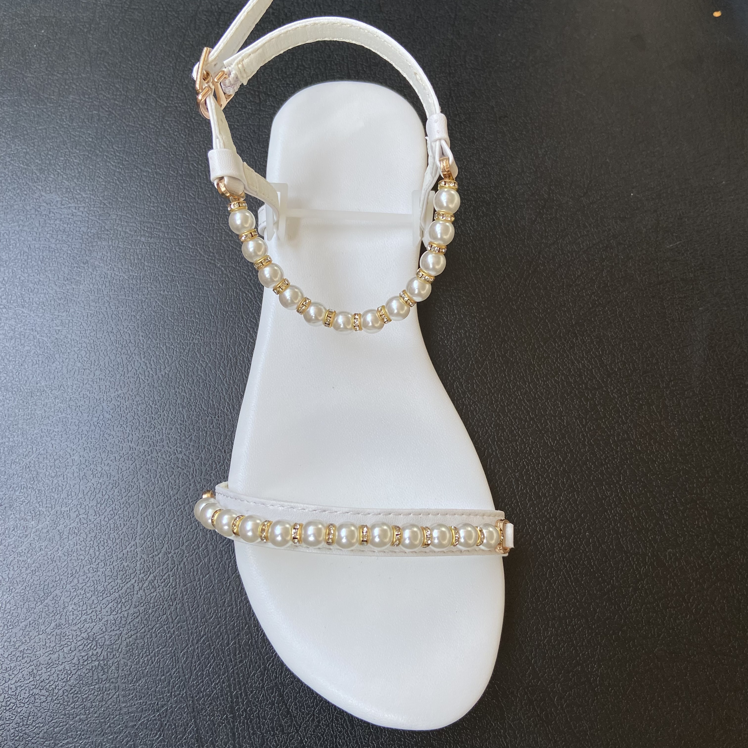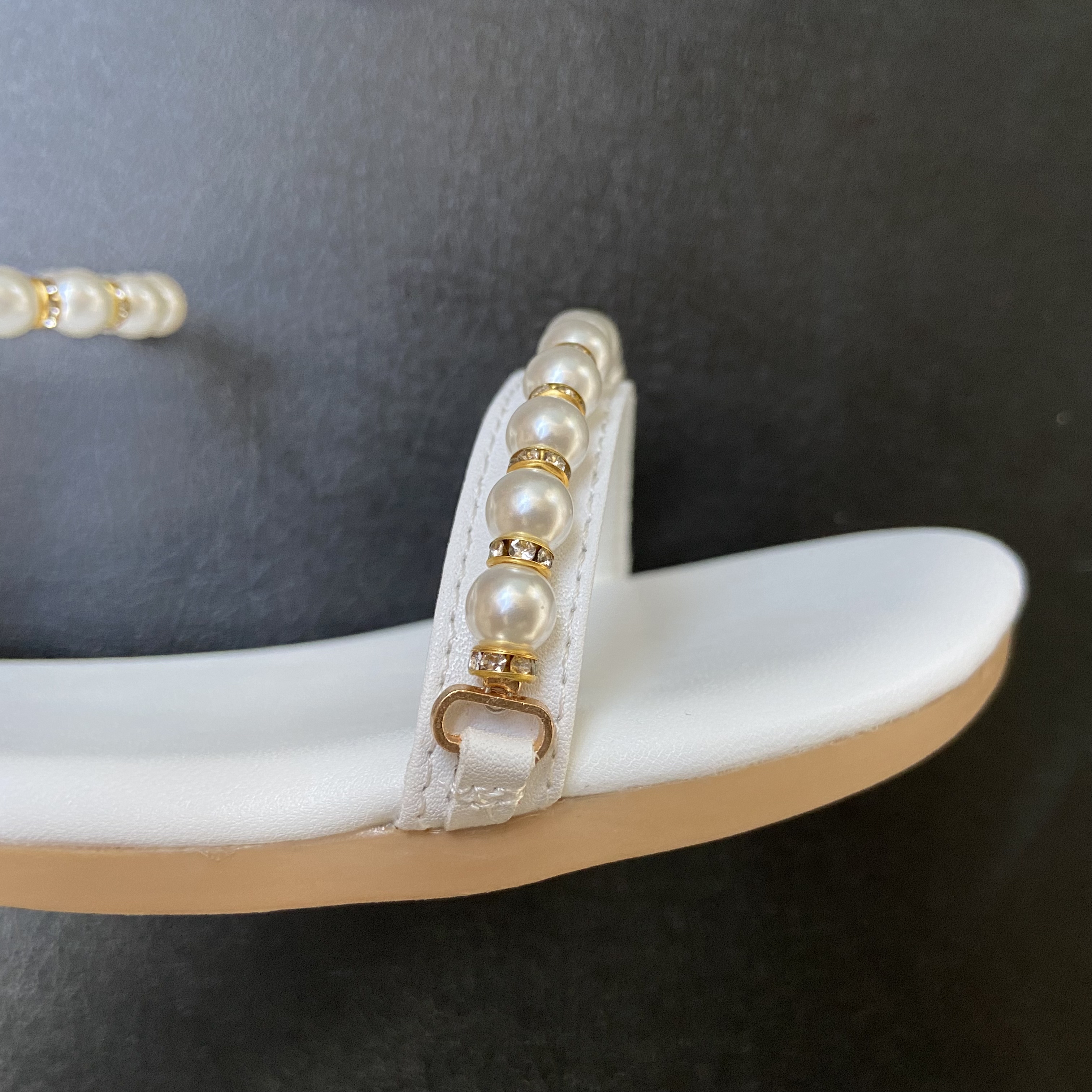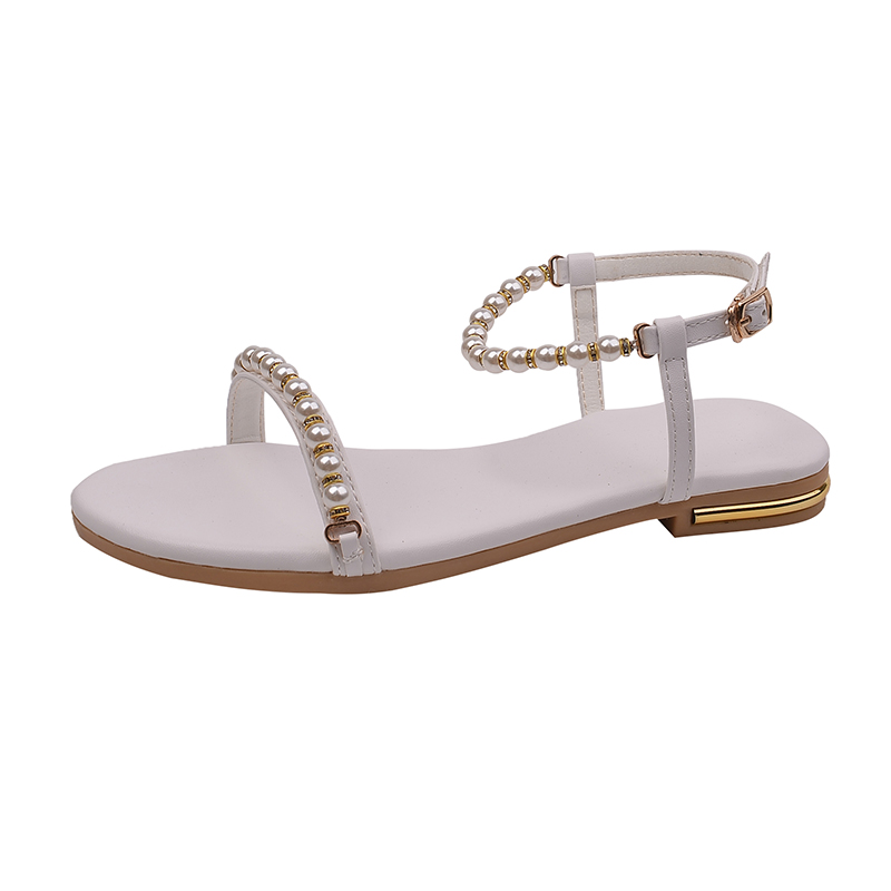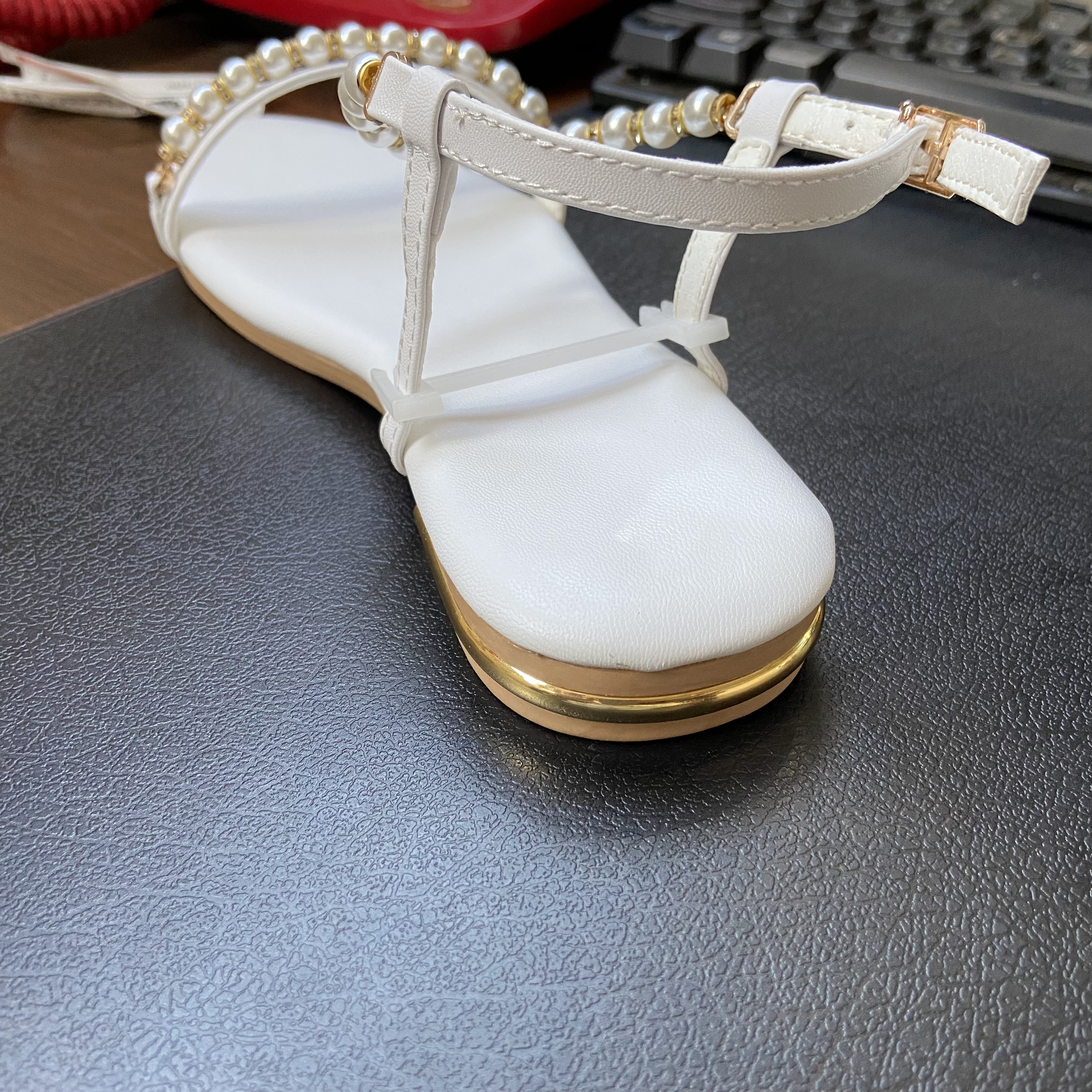 【品名】雅梦纤足仙女风一字珍珠羊皮凉鞋