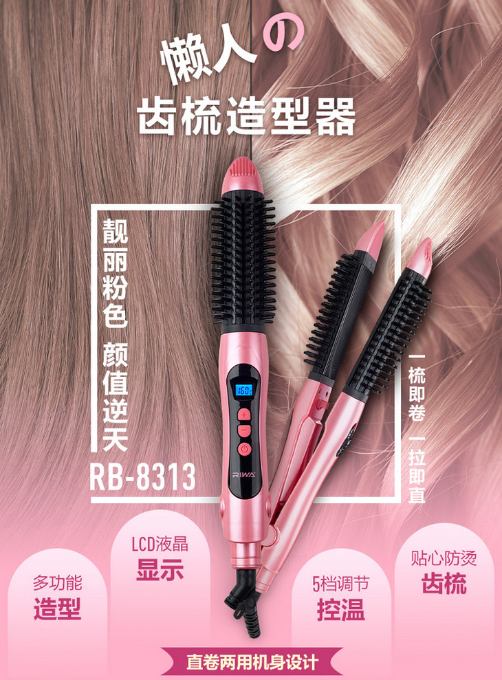 雷瓦(RIWA) 卷直发器 防烫设计卷发器 温控电卷梳 卷发棒直发夹板二合一 RB-8313