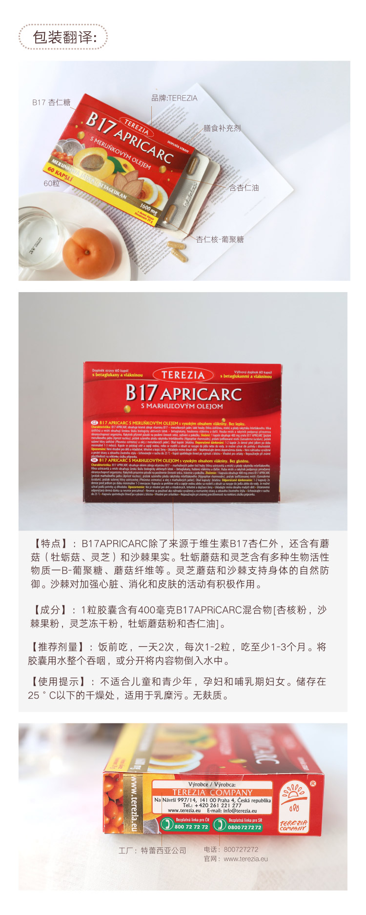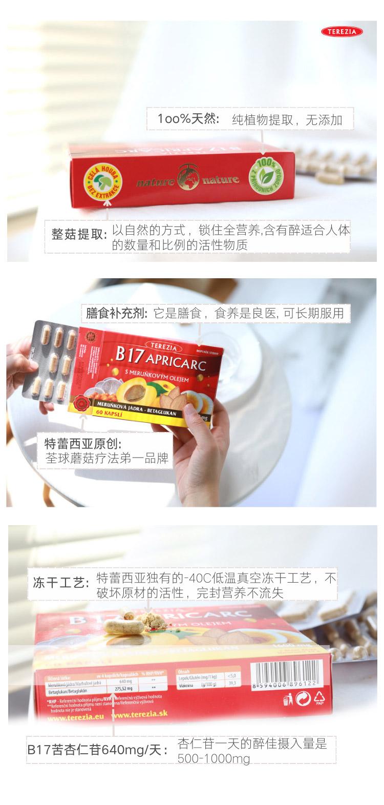 捷克特蕾西亚免疫4重奏 B17杏仁灵芝胶囊60粒!加强抵抗力术后补充能量防大疾