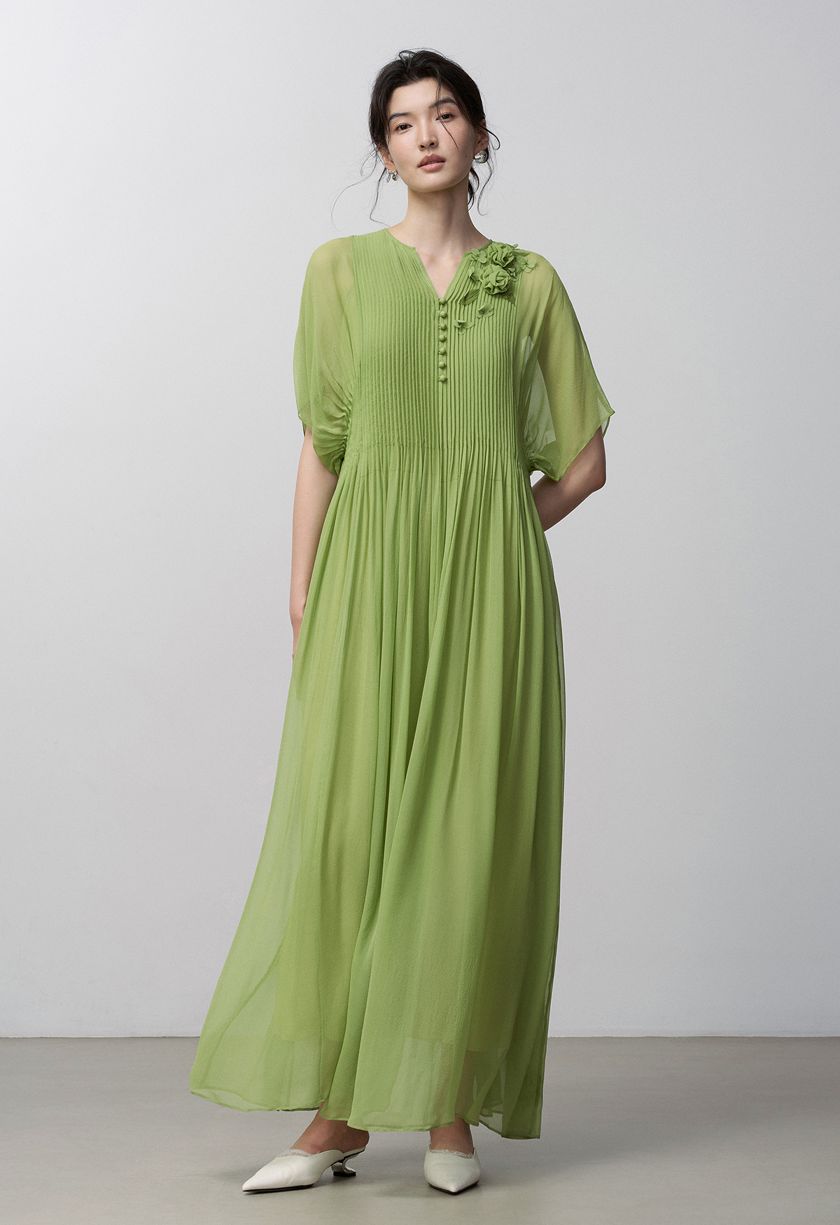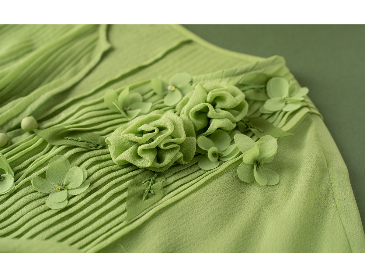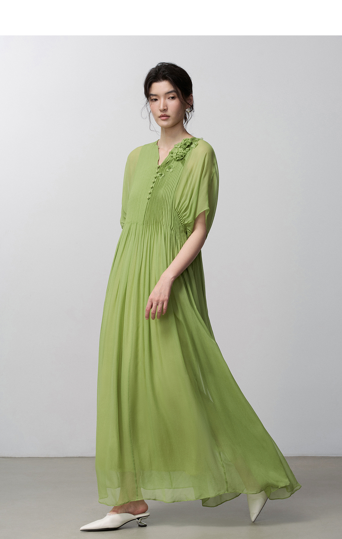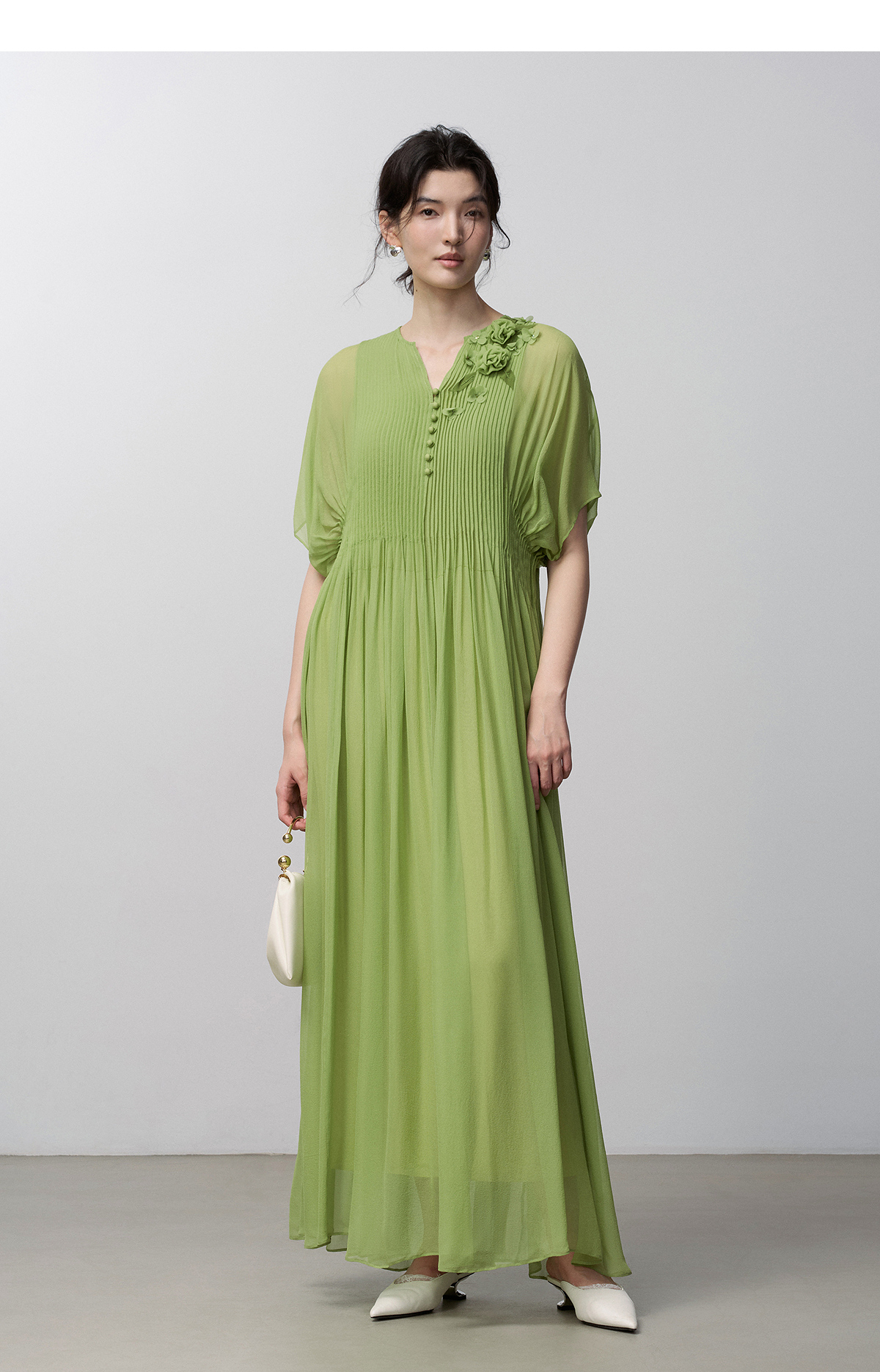 【林栖设计小店】手工钉花|手捏花桑蚕丝压褶垂感2026夏新款连衣裙两件套T1962001