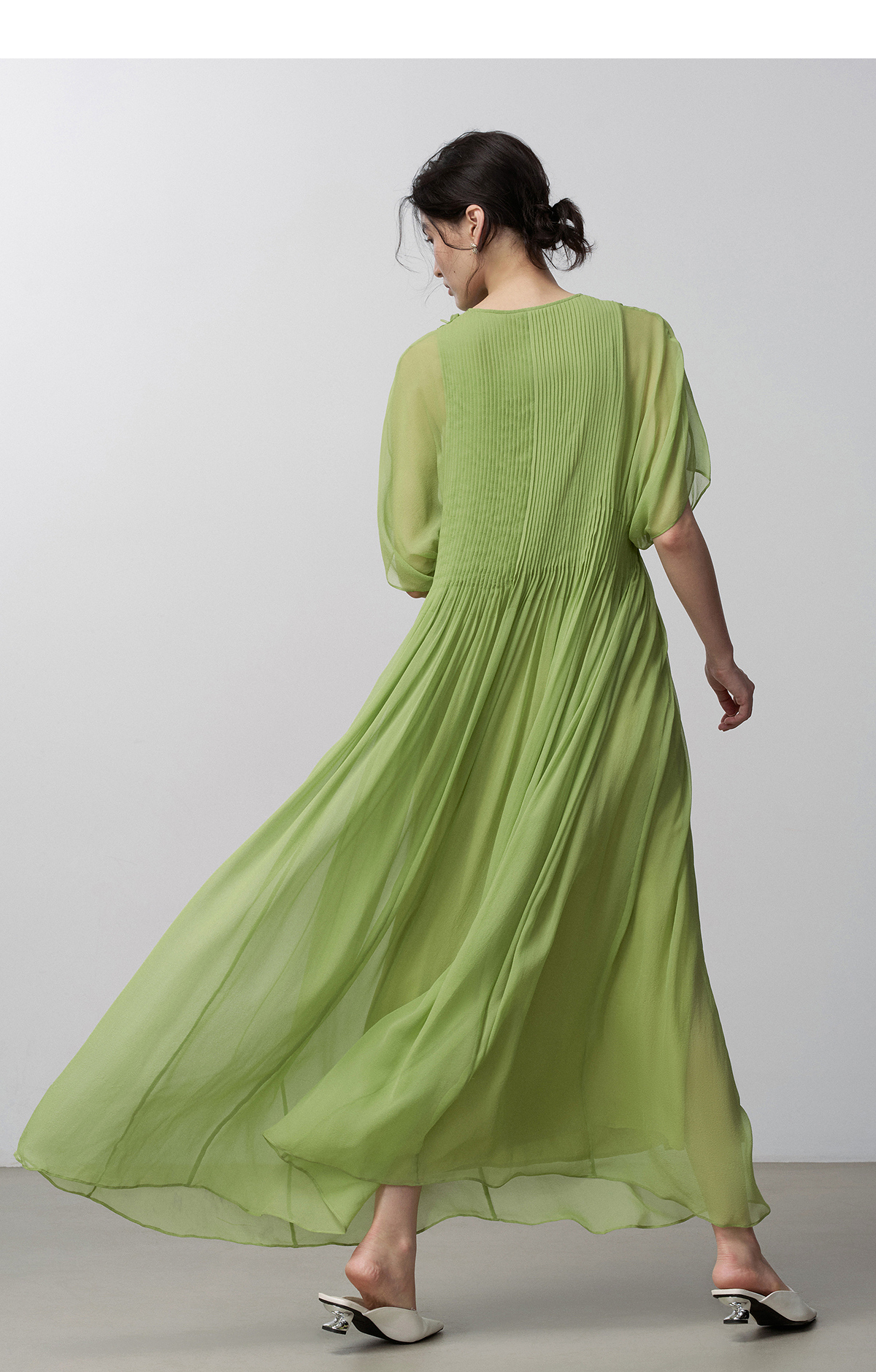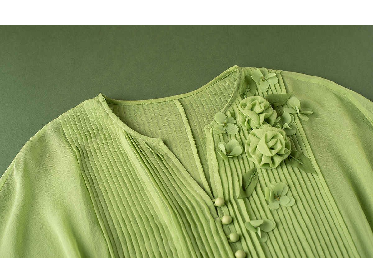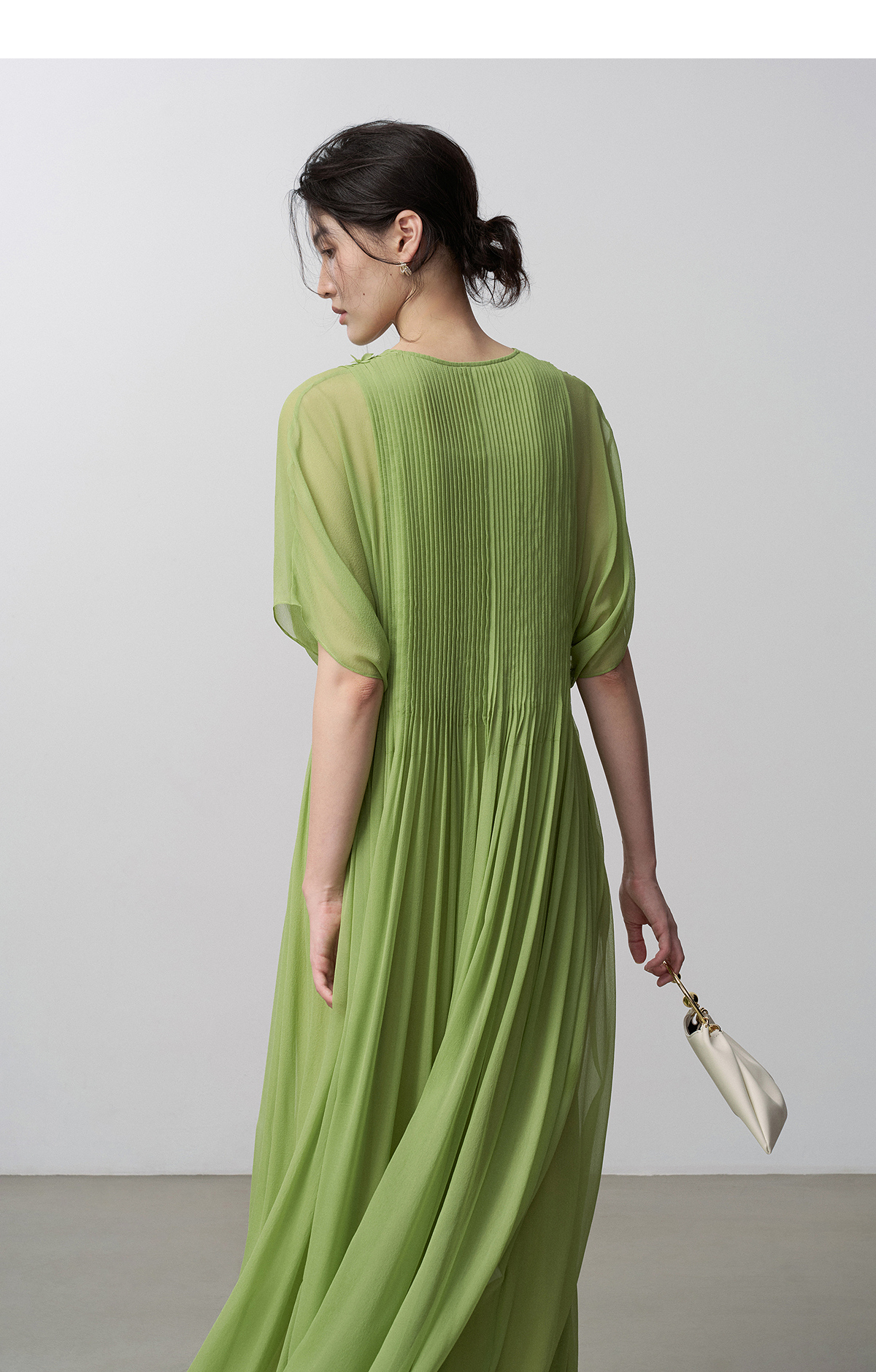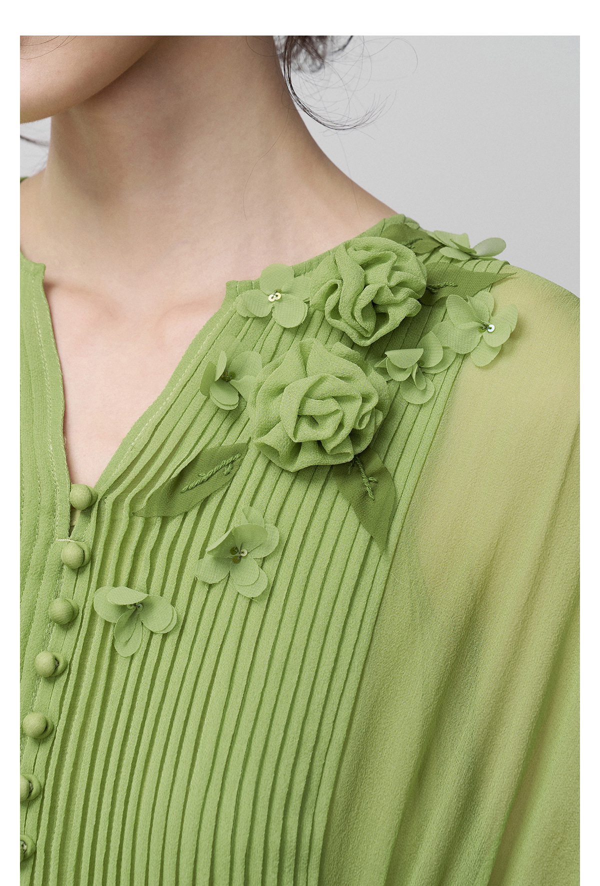 【林栖设计小店】手工钉花|手捏花桑蚕丝压褶垂感2026夏新款连衣裙两件套T1962001