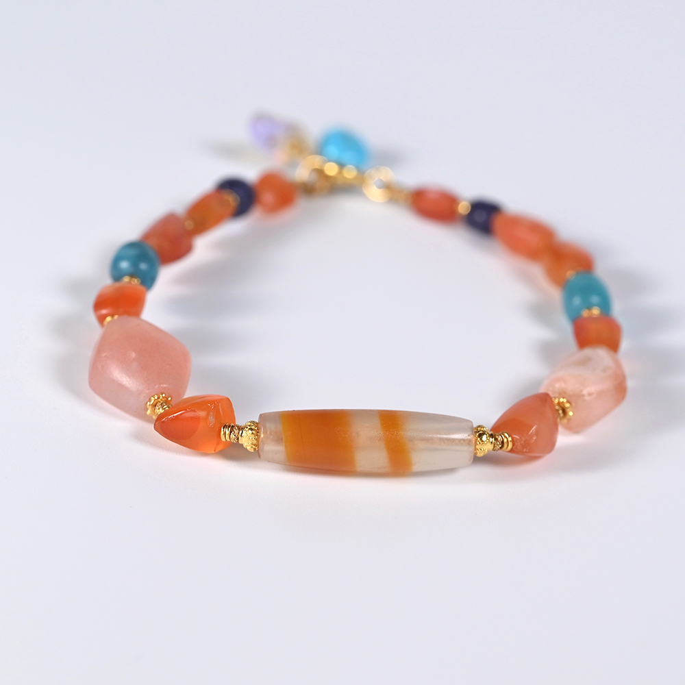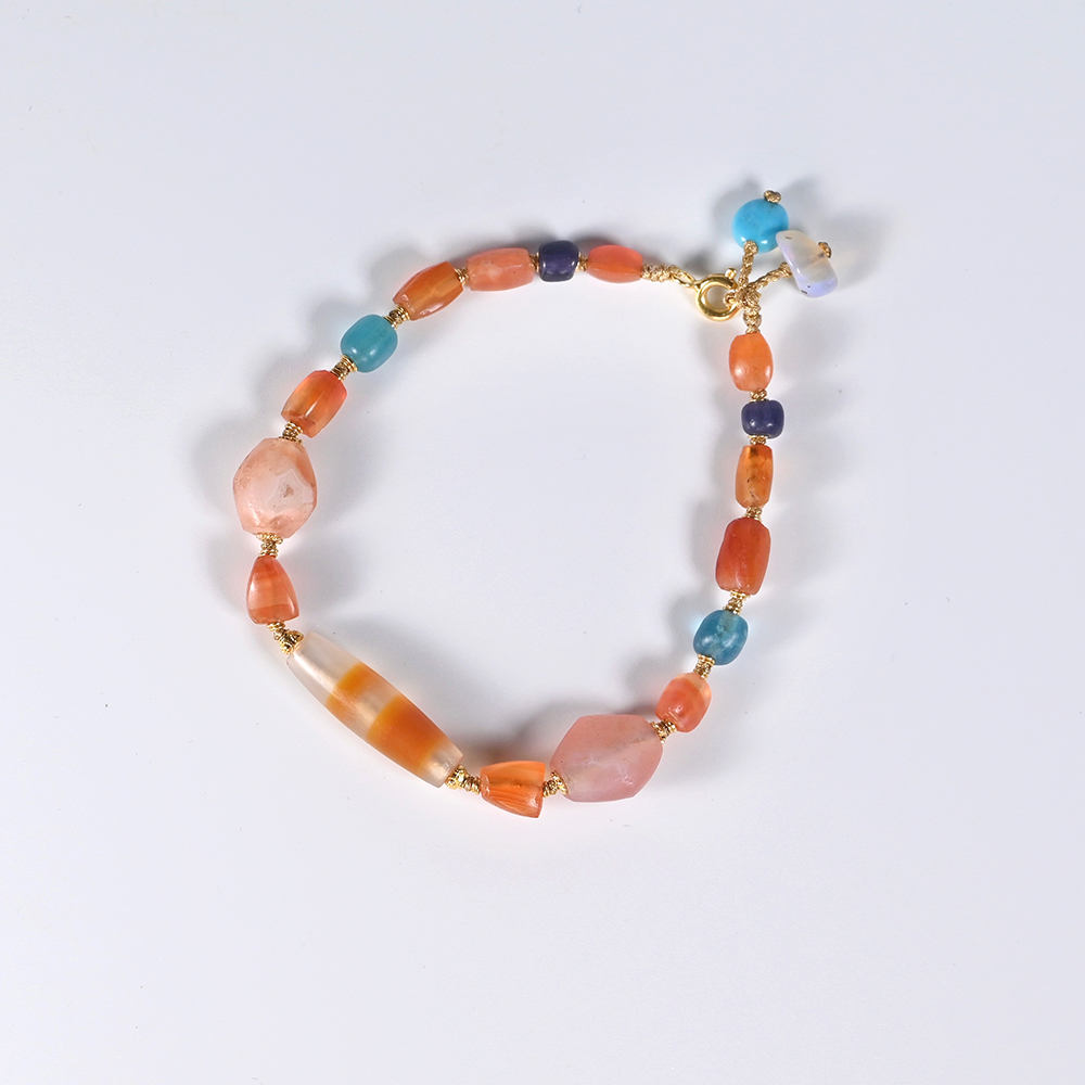 手串用到的其他小红玛瑙,也都经过精挑细选,颗颗玲珑剔透,造型仪态万千,花纹更是丰富多彩。