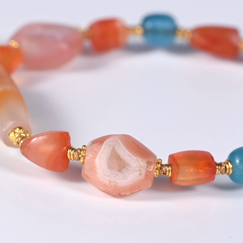 在汉代国际大港合浦,就发现有此类珠串,在当时算得上国际时尚奢侈品。