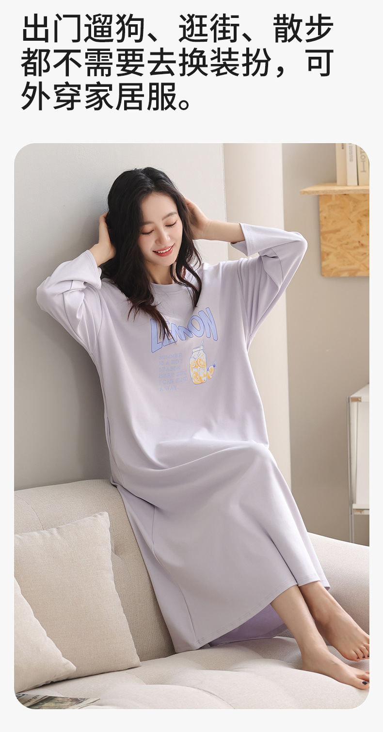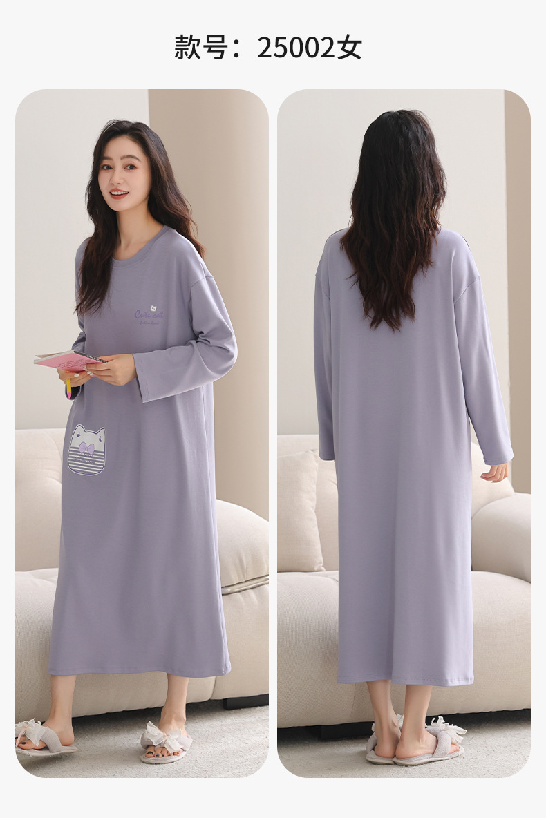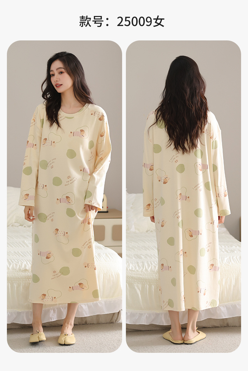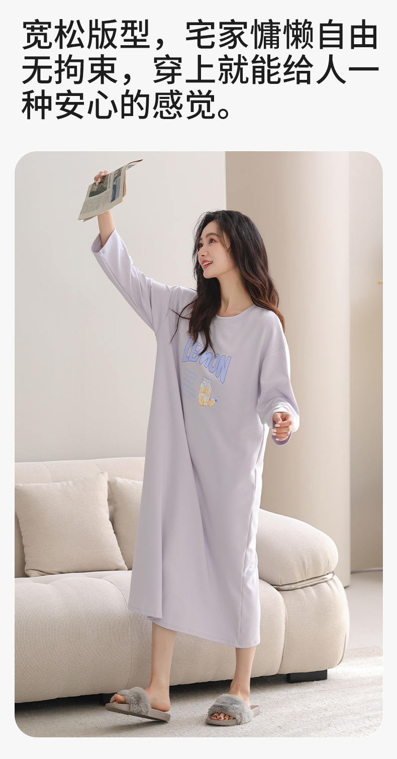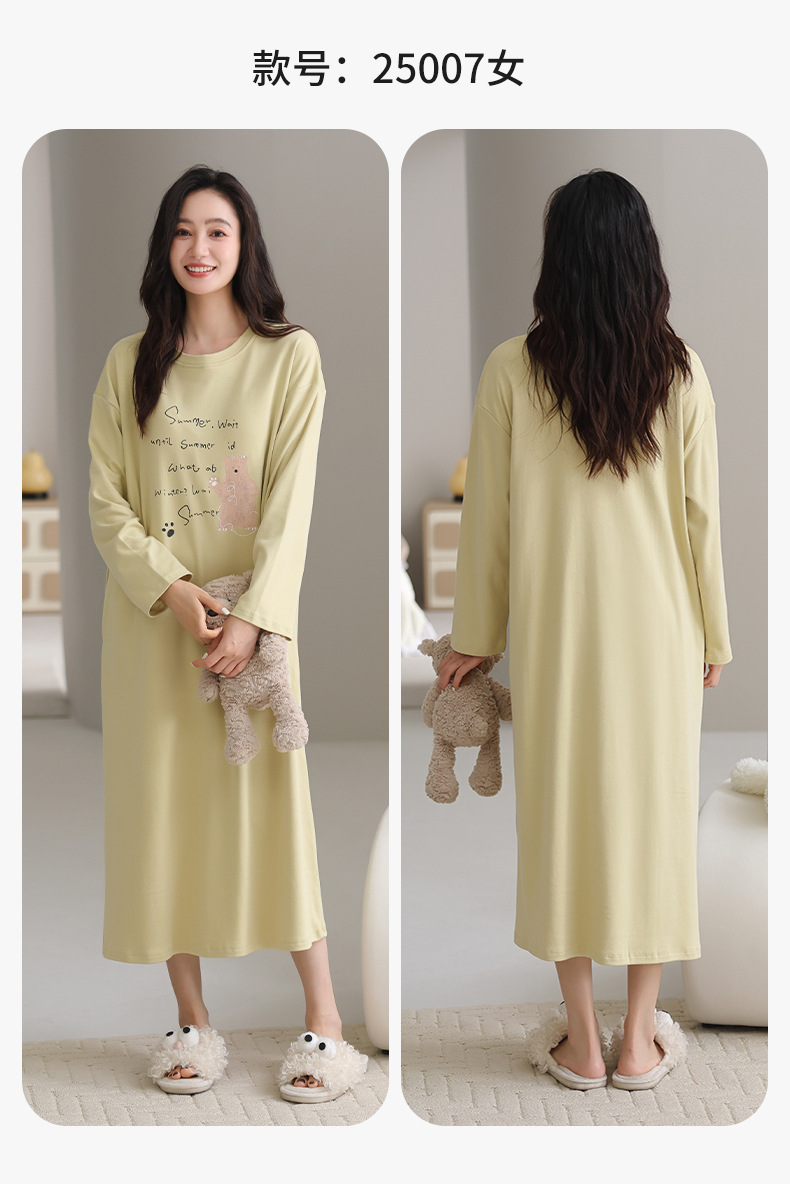 2025年秋季新品纯棉长袖过膝长款睡裙 可爱可外穿休闲简约家居服