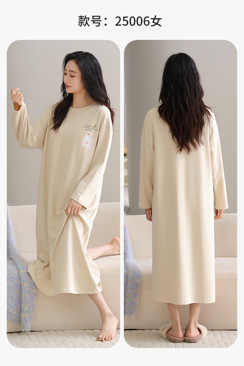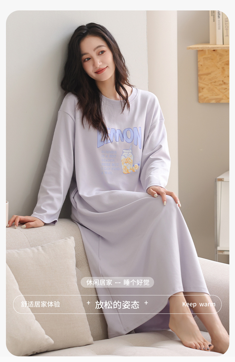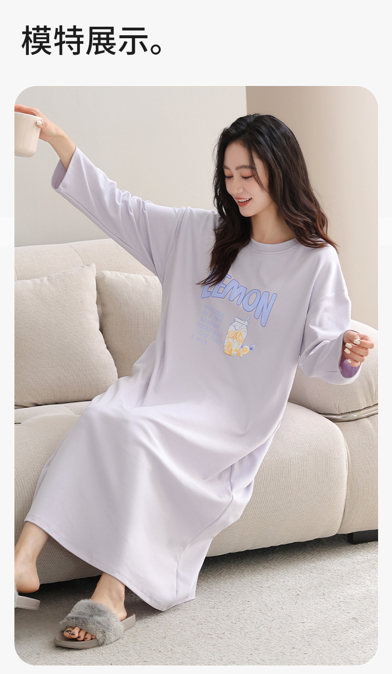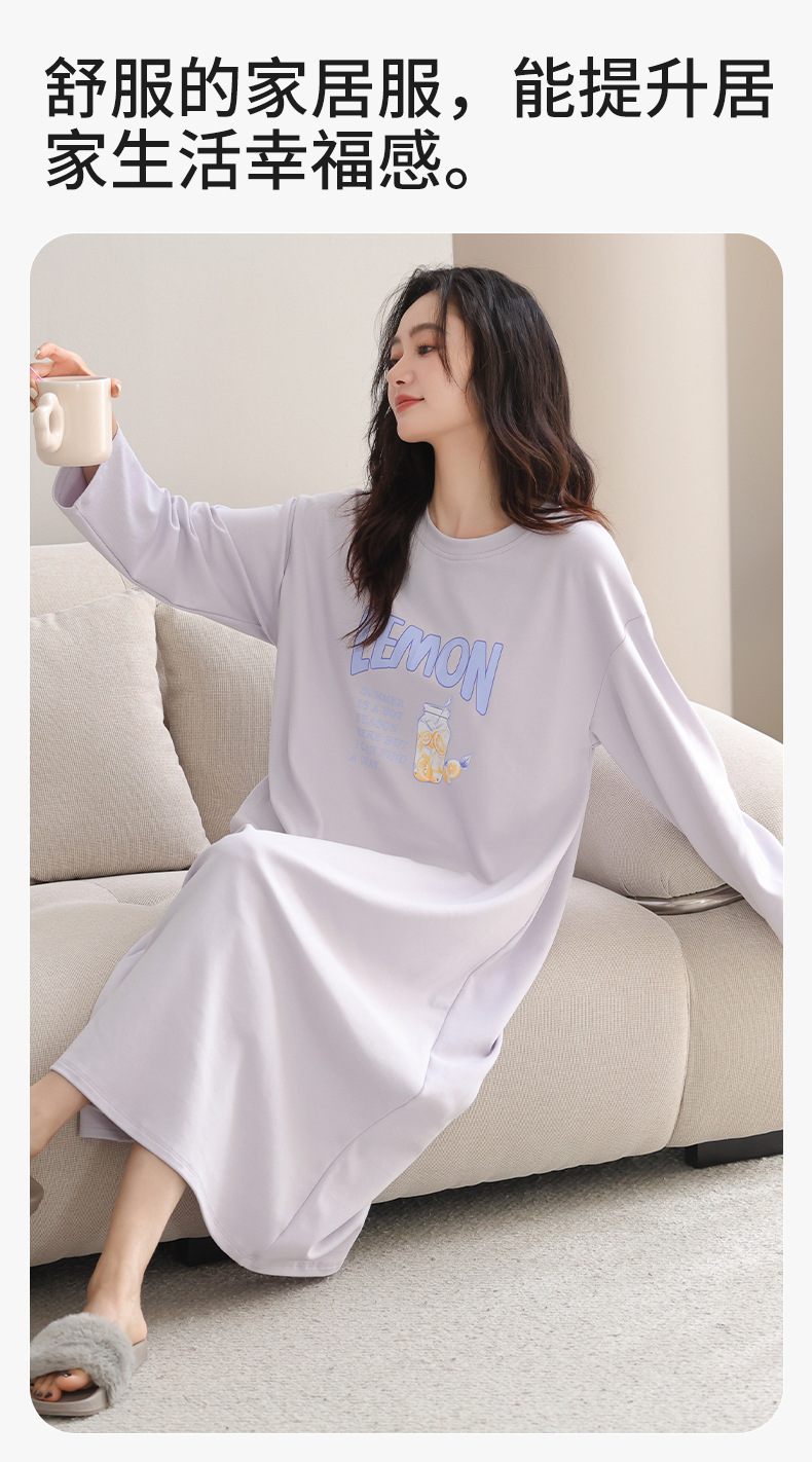 2025年秋季新品纯棉长袖过膝长款睡裙 可爱可外穿休闲简约家居服