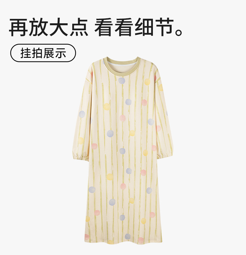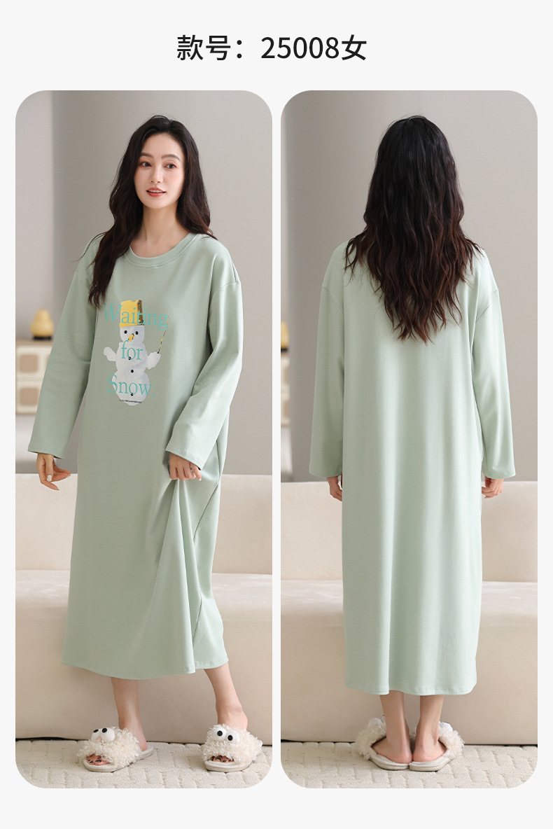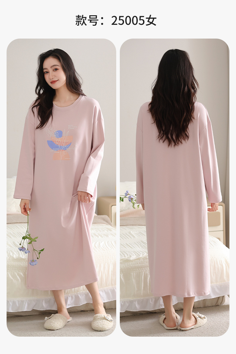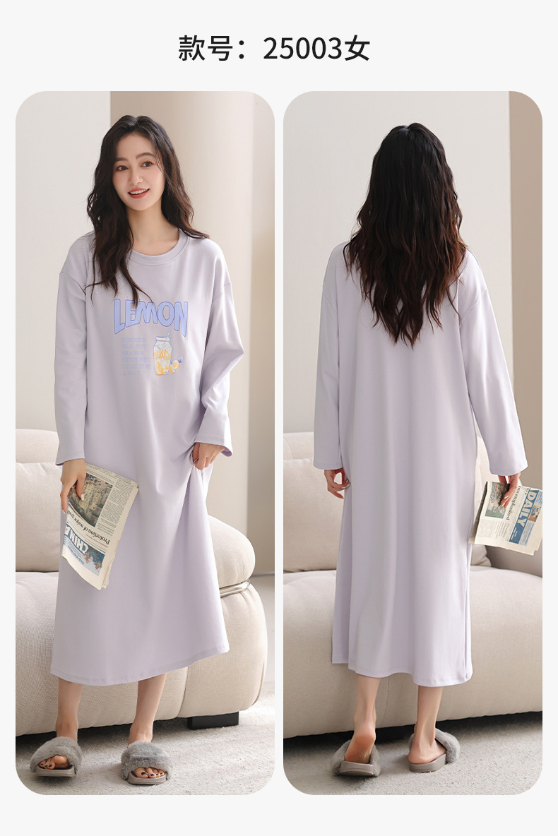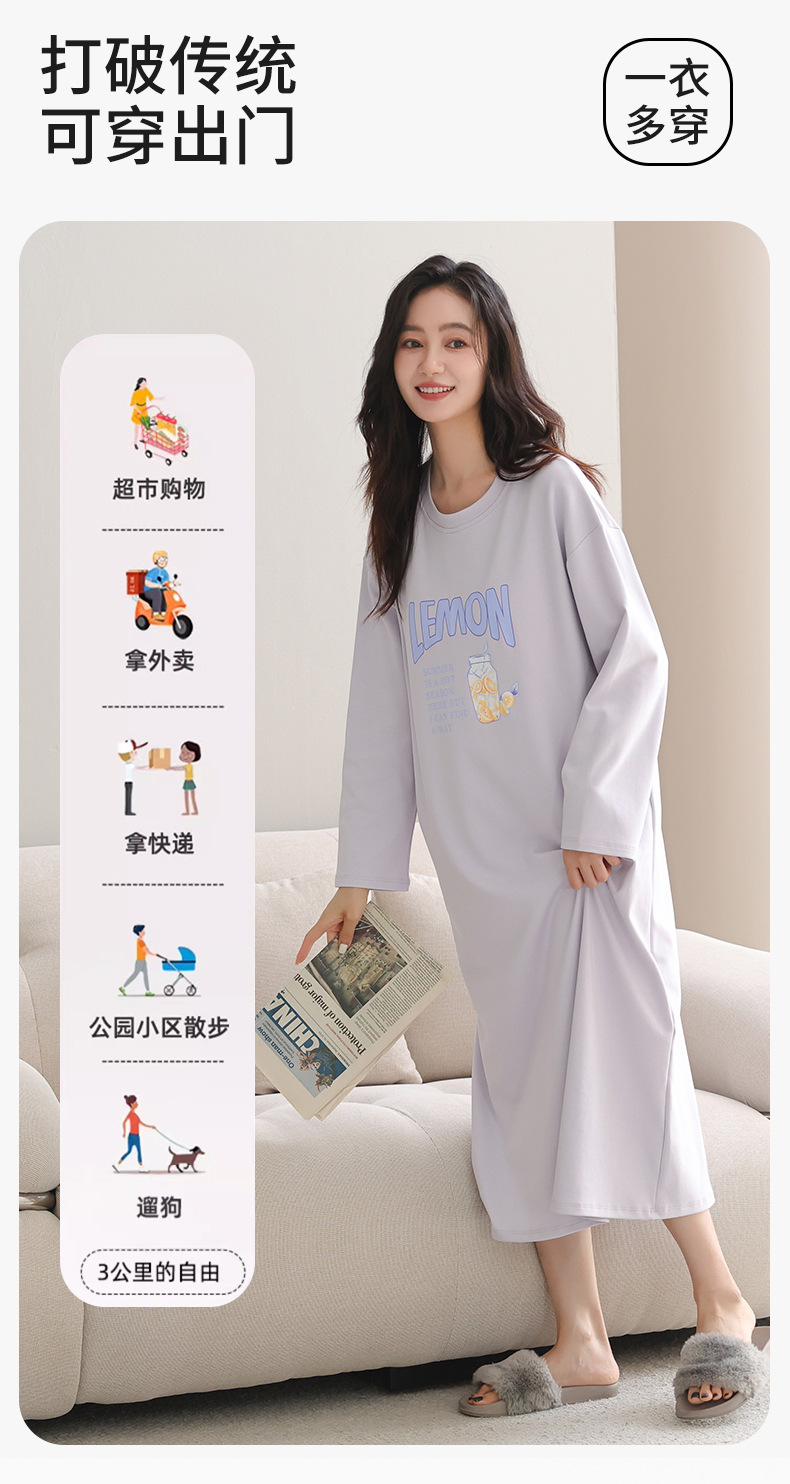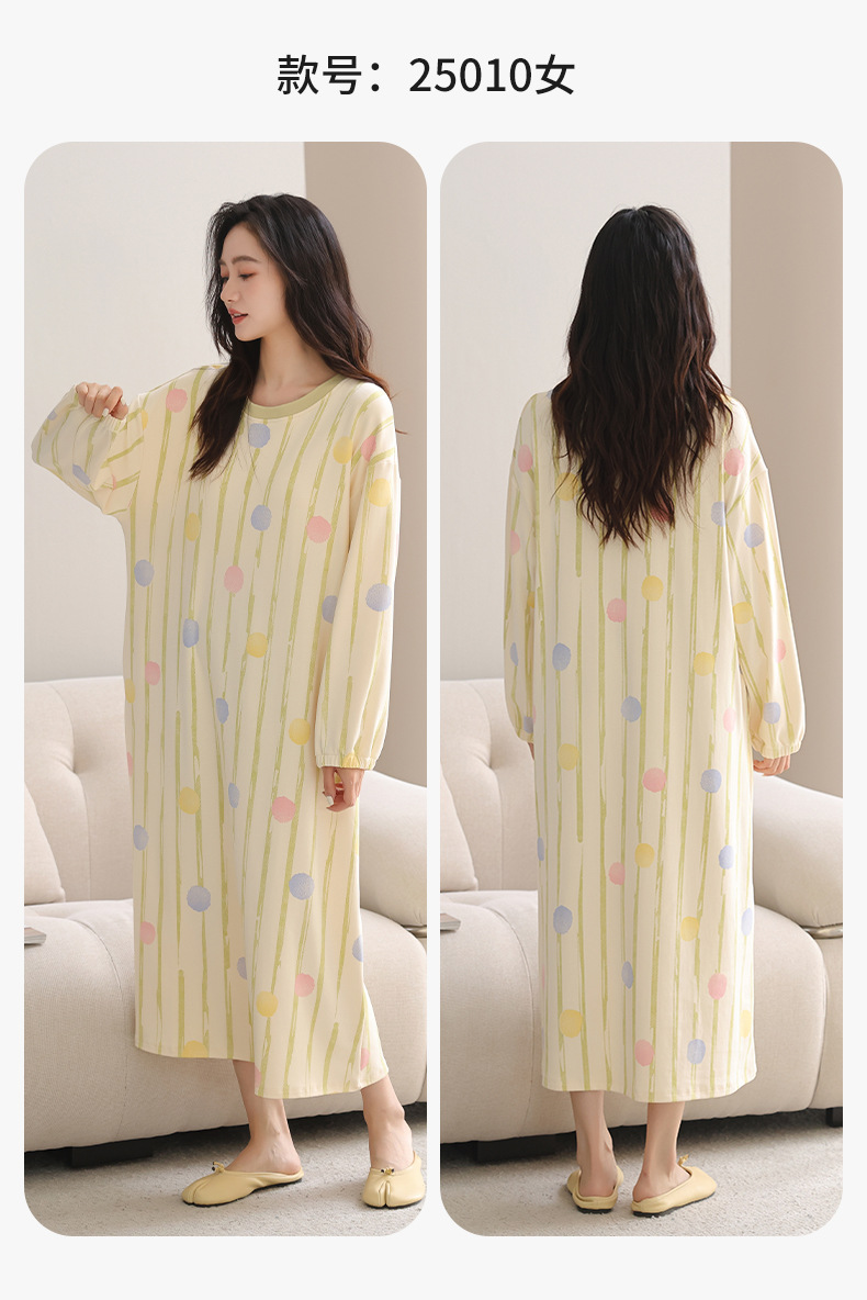 2025年秋季新品纯棉长袖过膝长款睡裙 可爱可外穿休闲简约家居服