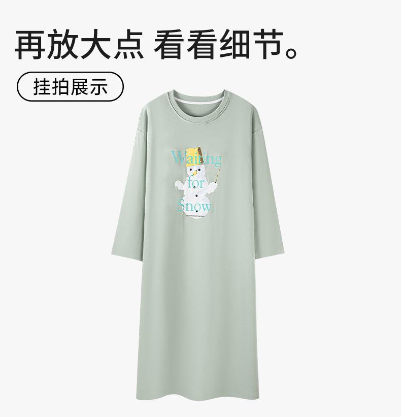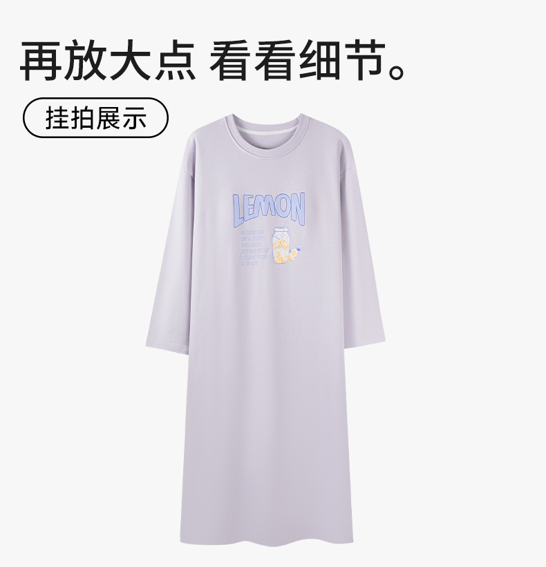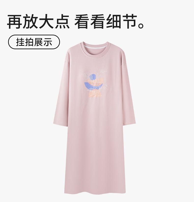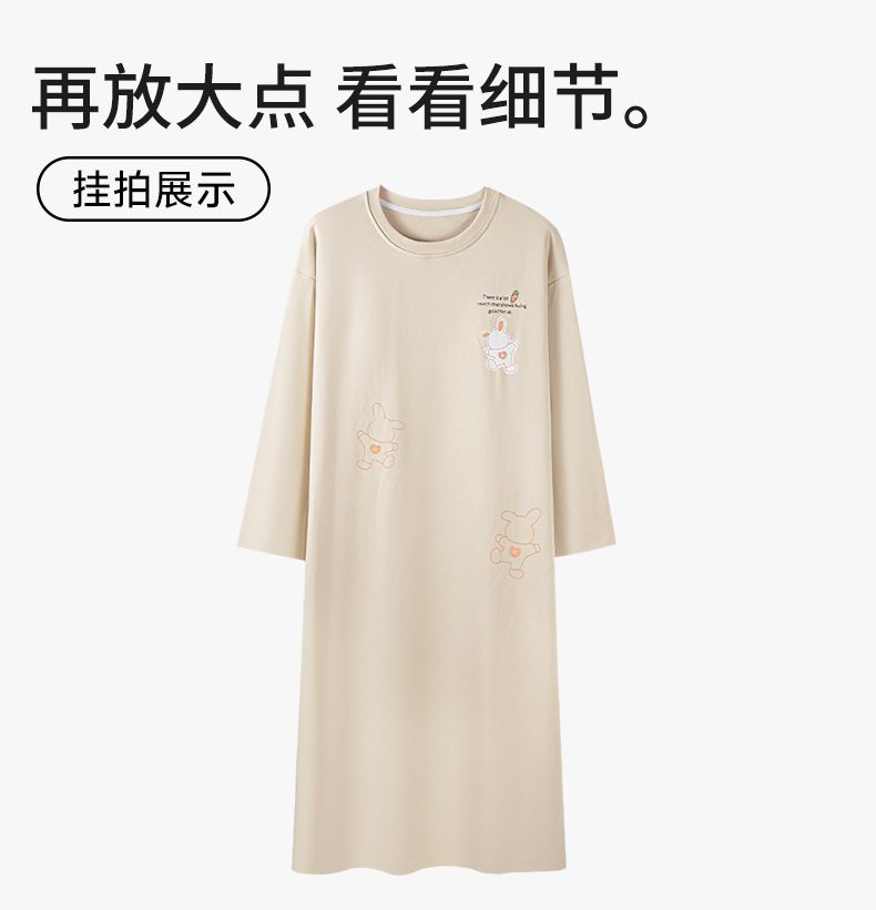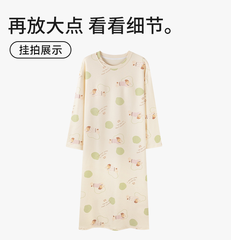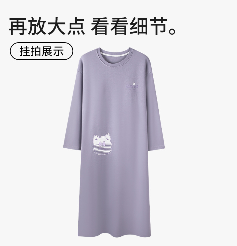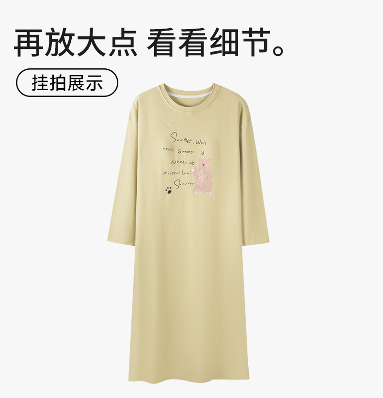 2025年秋季新品纯棉长袖过膝长款睡裙 可爱可外穿休闲简约家居服