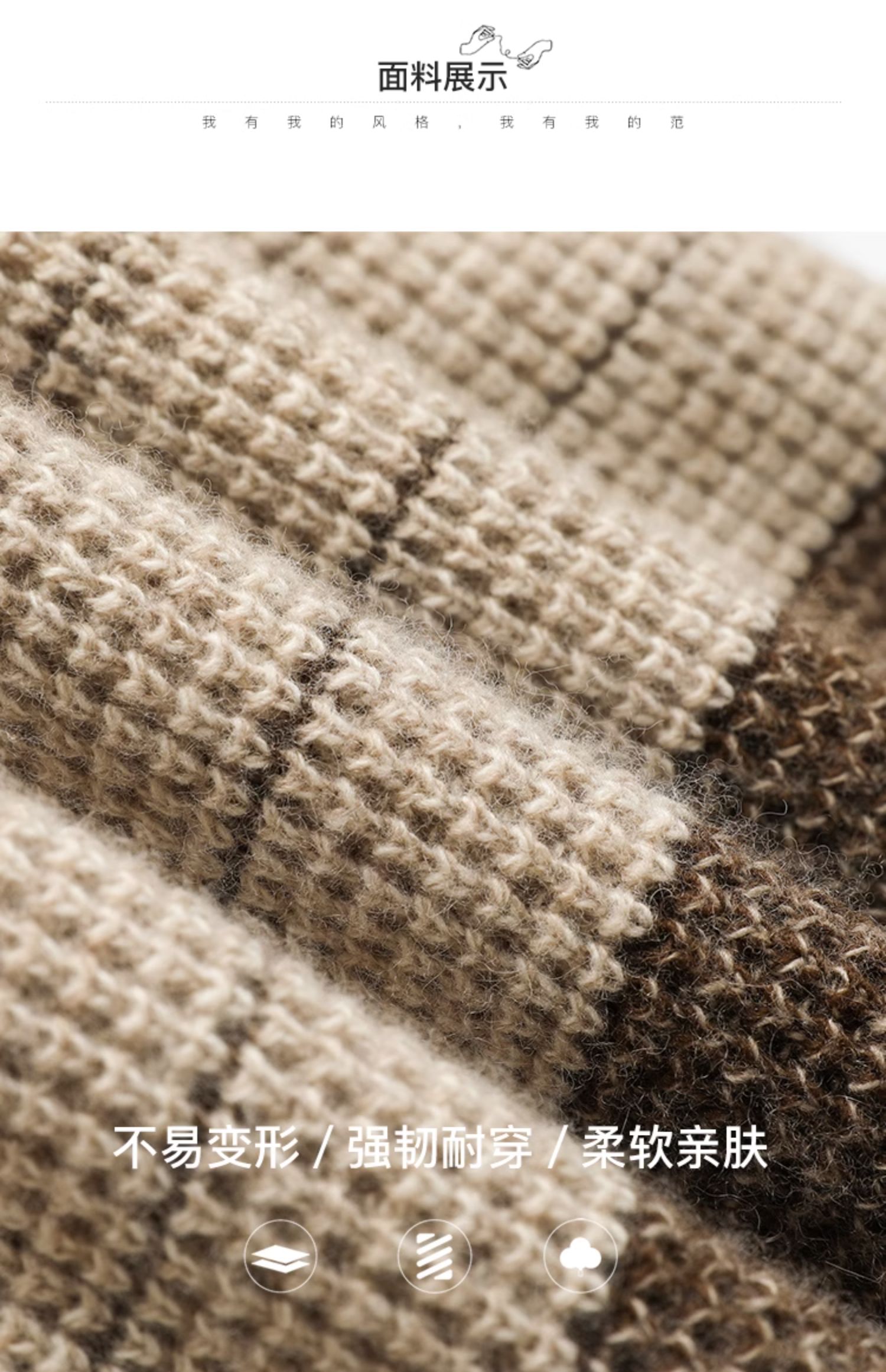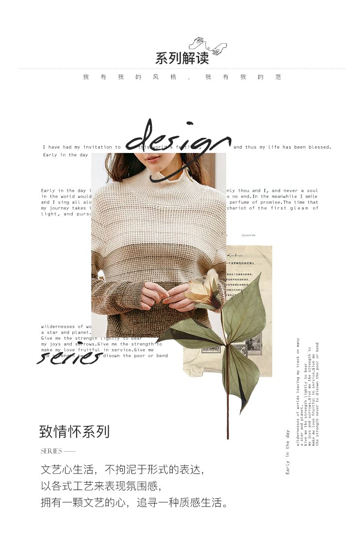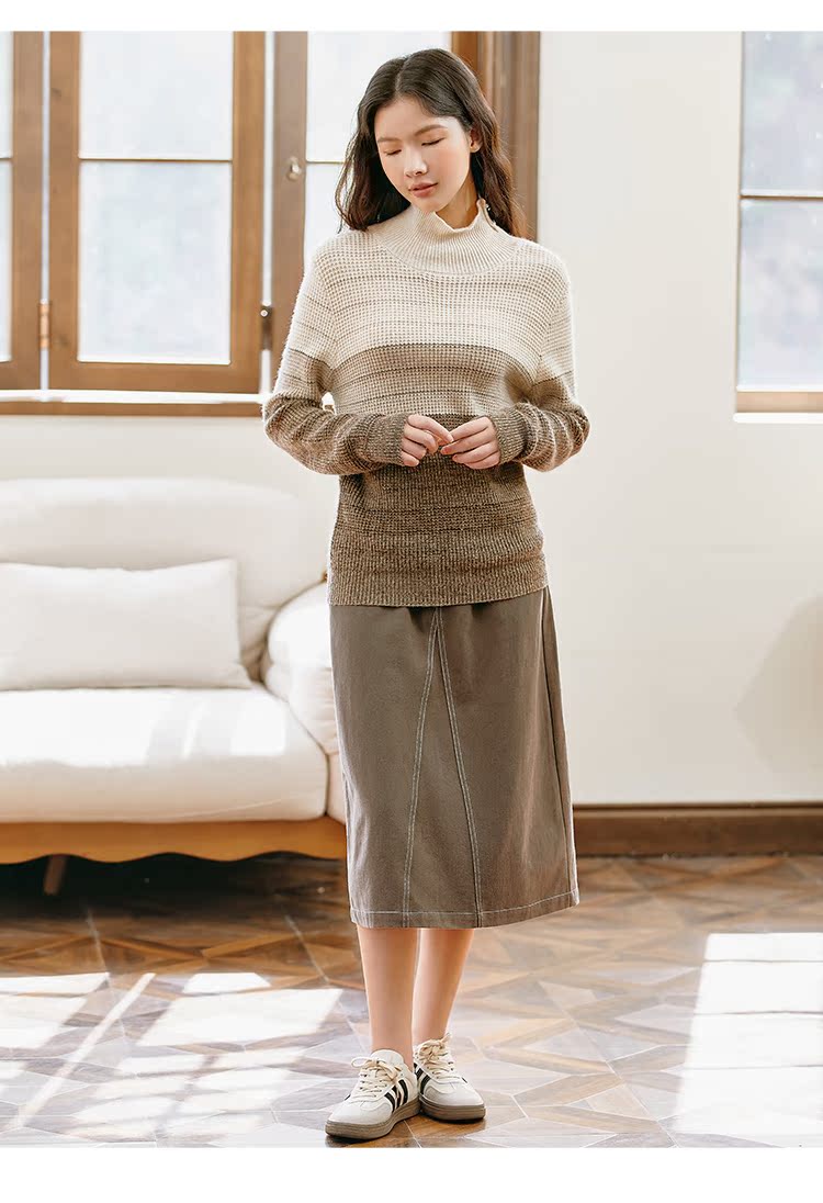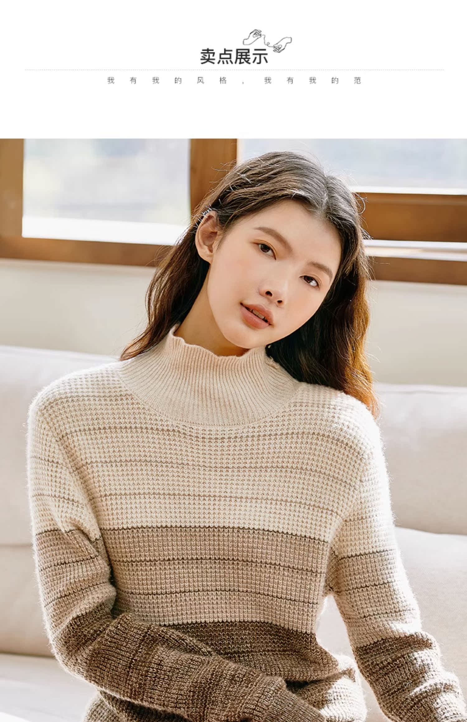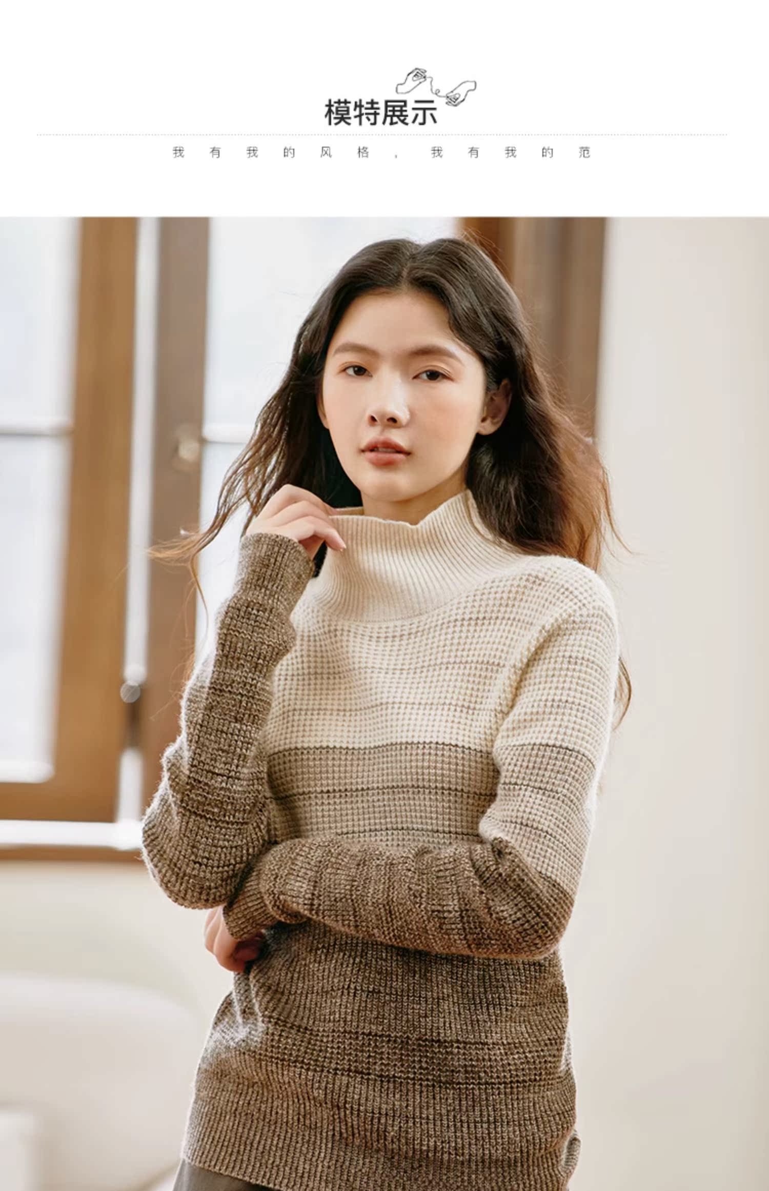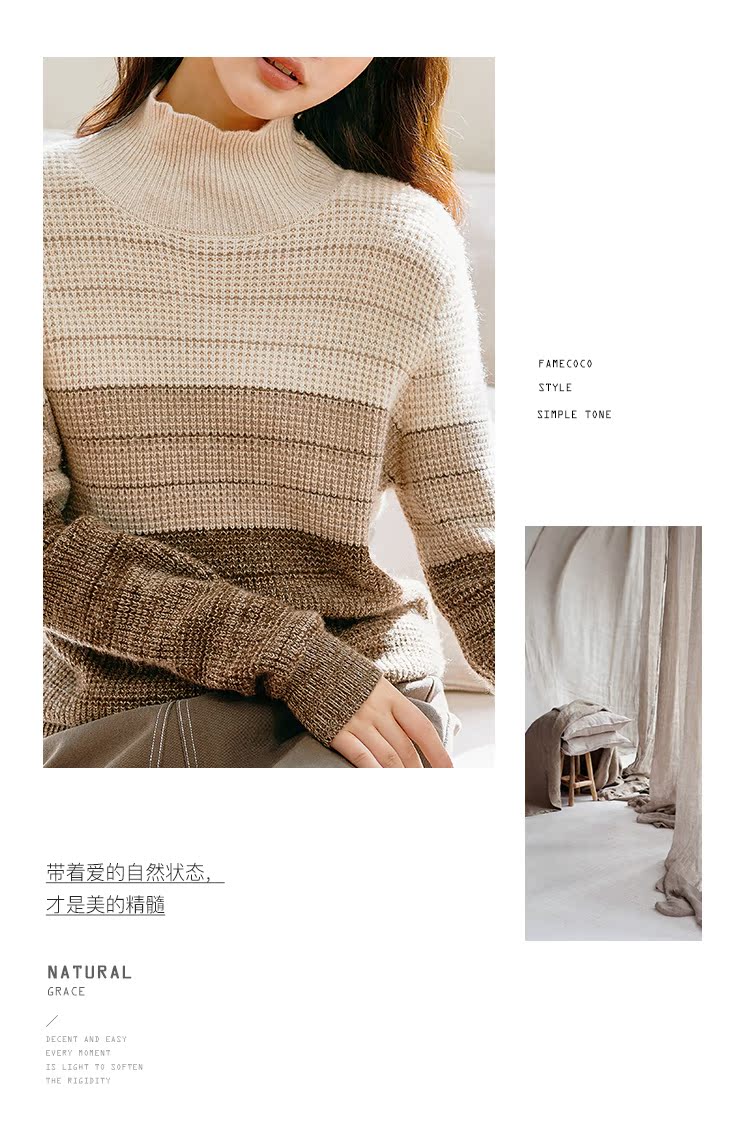 Famecoco范可儿羊毛高领毛衣女士秋季长袖条纹宽松休闲套头针织衫F225DC003