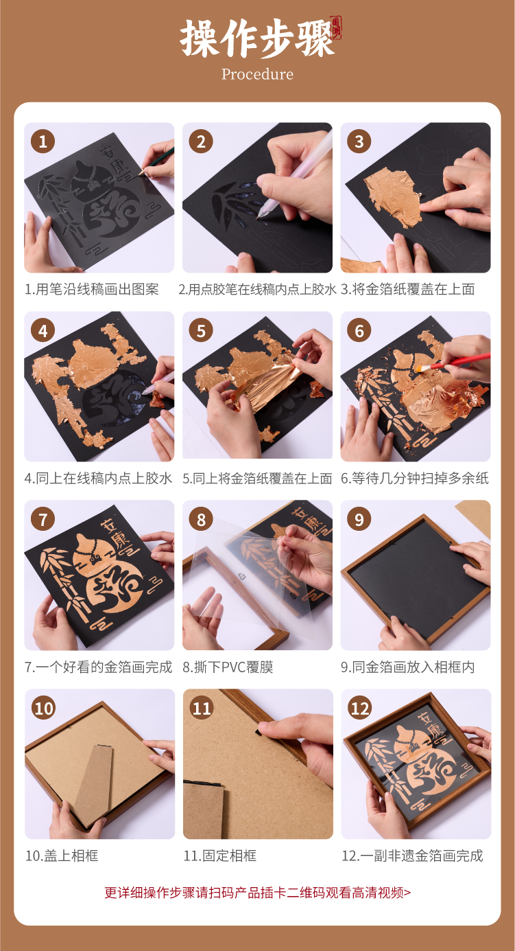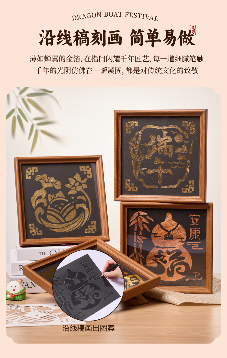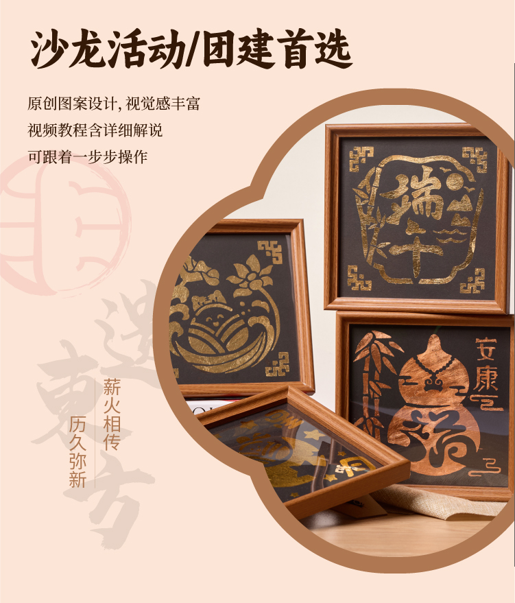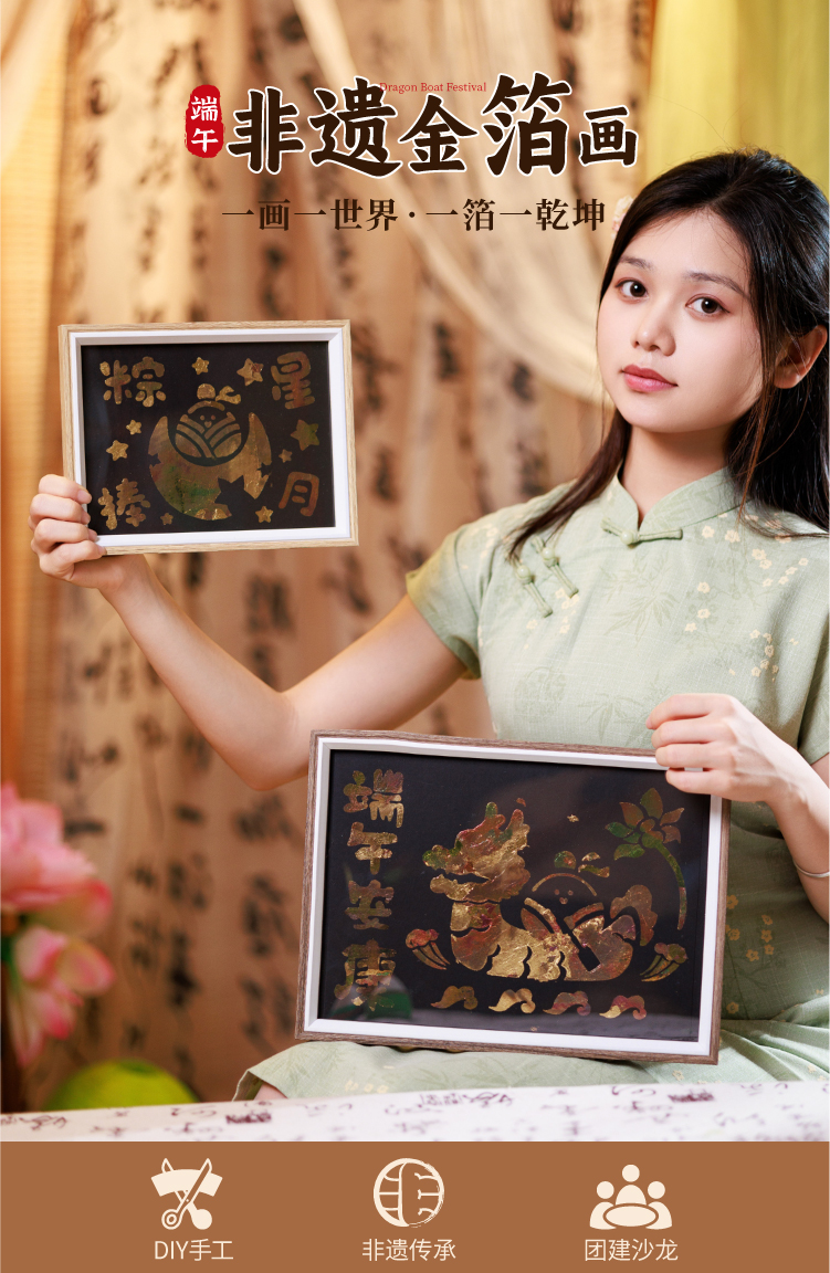 端午节非遗金箔画手工diy烧箔画儿童材料包相框暖场活动装饰绘画