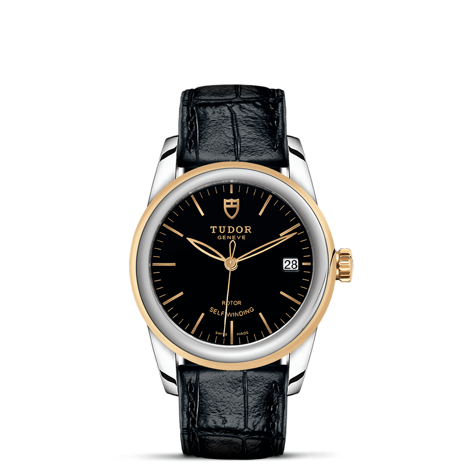 旋入式上链錶冠,饰以帝舵表标志;精钢覆有0.1毫米18K黄金薄层