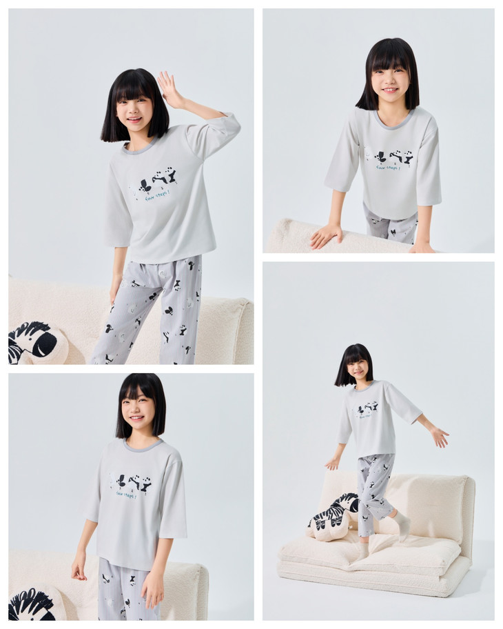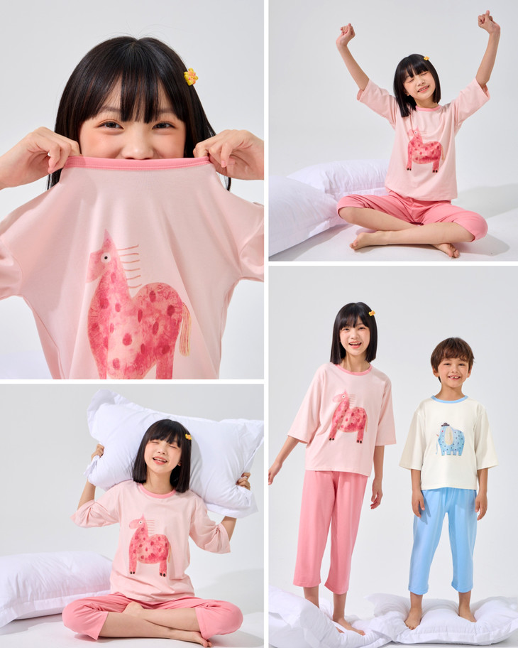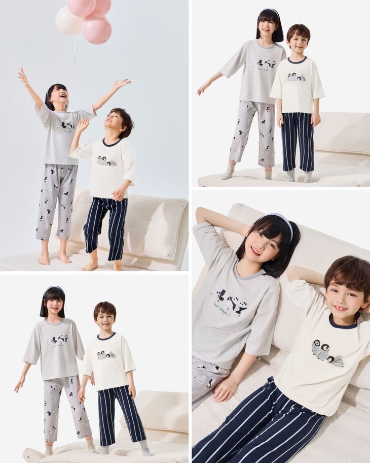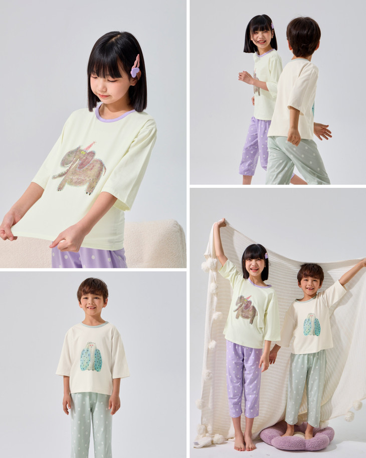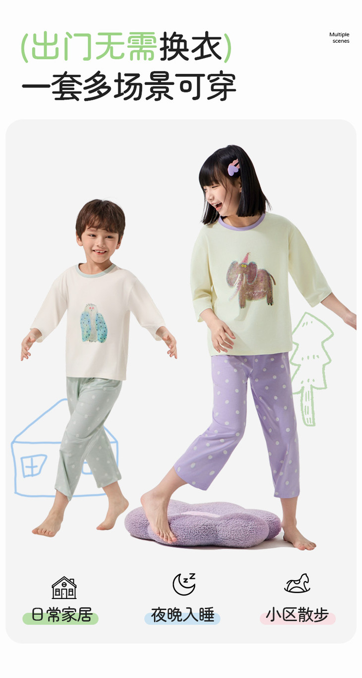 不做大人的缩小版—N多贴心设计,解放天性 🌟宽松舒适版型 各种大动作都毫无压力,让孩子尽情释放天性! 🌟7分袖+裤长 护住手肘,膝盖,不会让寒气从关节入侵 🌟高弹加固圆领 孩子自己穿脱很方便,不易变形松垮 🌟弹力松紧腰 软软弹弹,跑跳不掉,不勒肚子