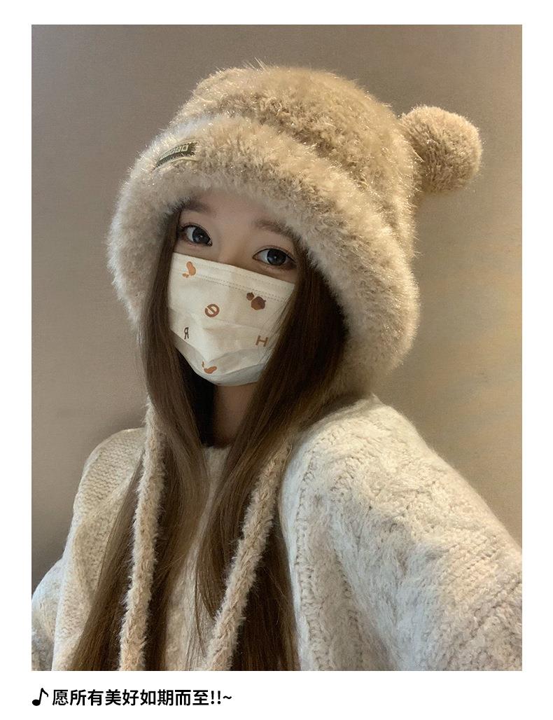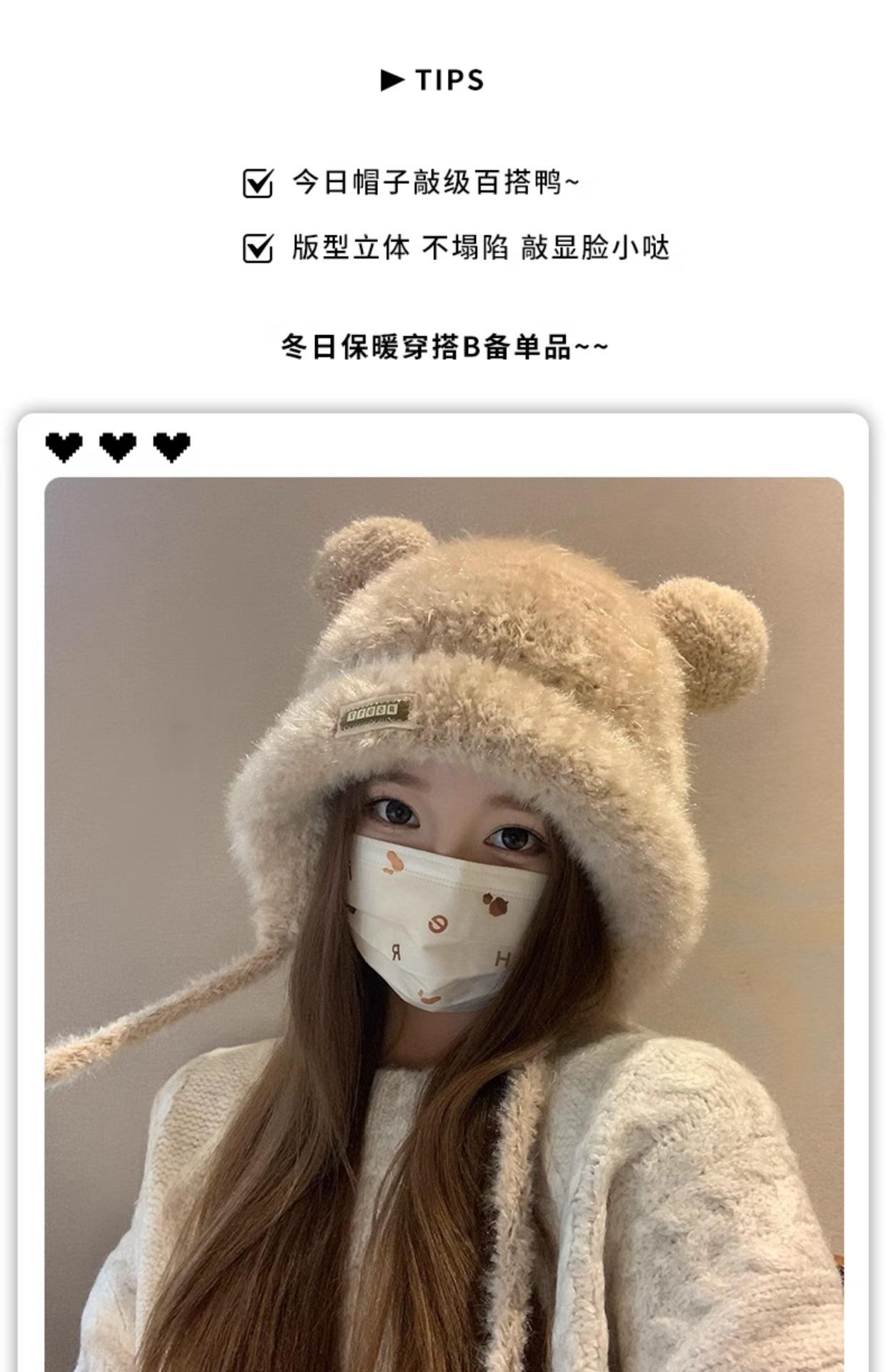 新款小熊帽子女士秋冬季保暖加厚防寒大头围显脸小针织毛线帽