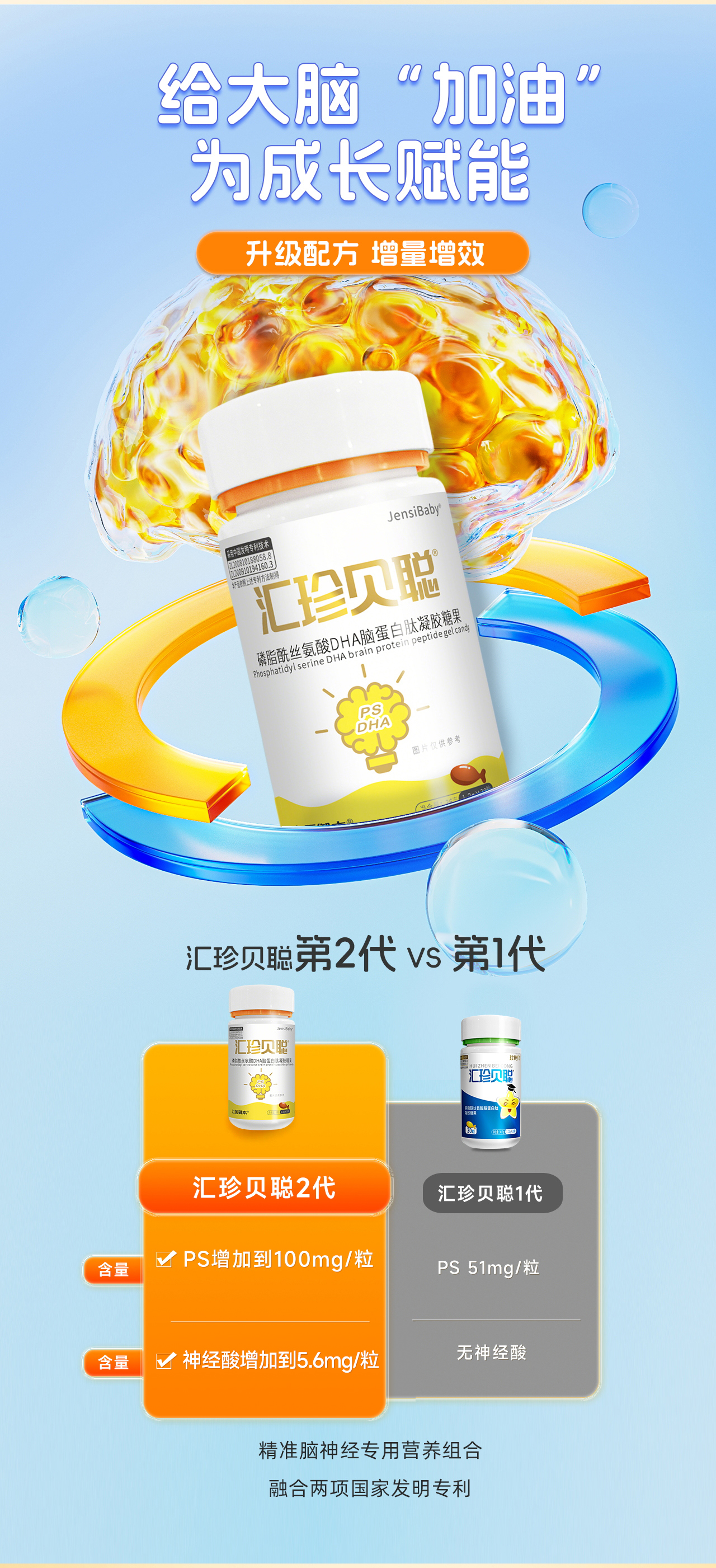 升级版汇珍贝聪鳞脂酰丝氨酸DHA脑蛋白肽凝胶糖果