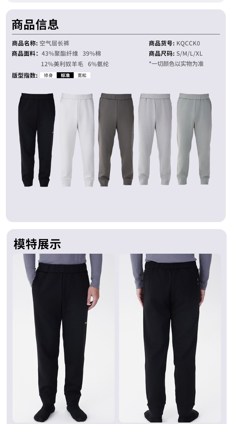 GP户外男士休闲运动裤加厚束脚裤美丽诺羊毛空气层登山徒步长裤