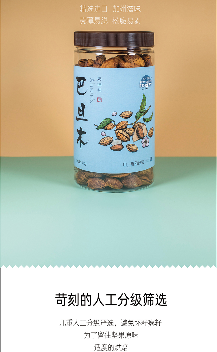 九月森林手剥巴旦木新货扁桃仁孕妇干果零食500g罐装