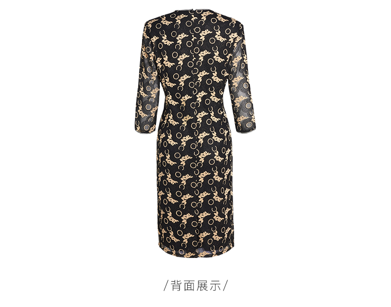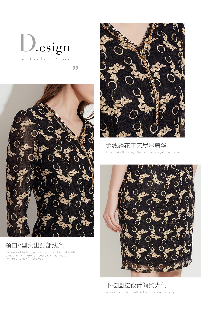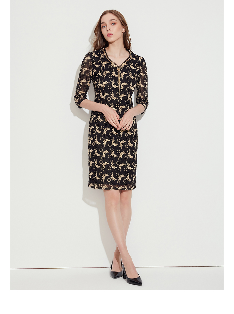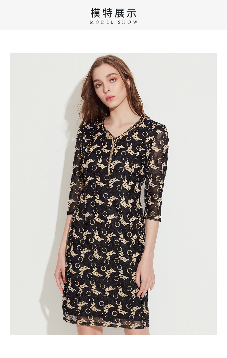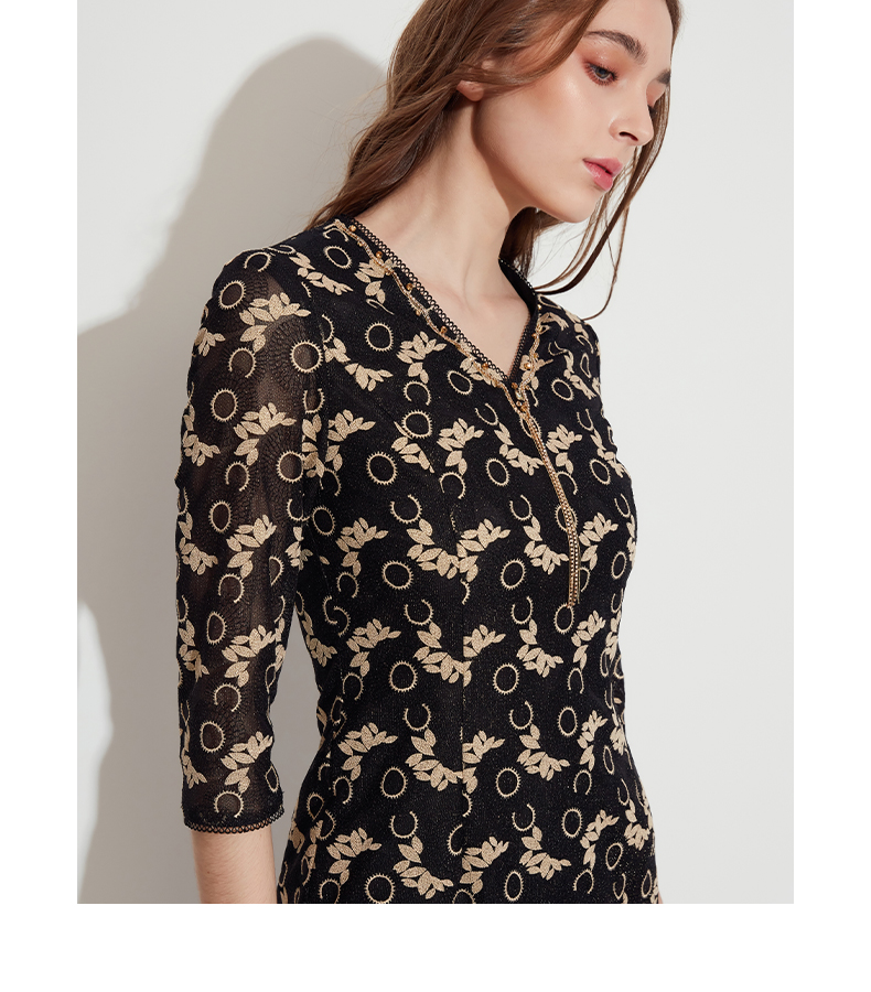 皮尔卡丹女装春季新款优雅端庄蕾丝长袖连衣裙P1110E1067J0
