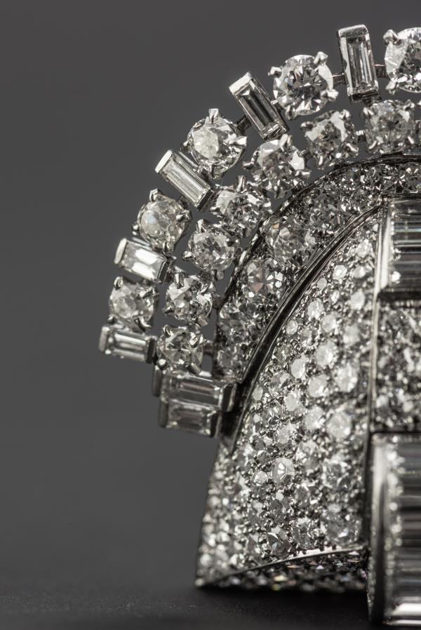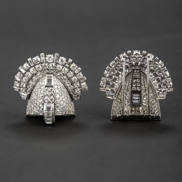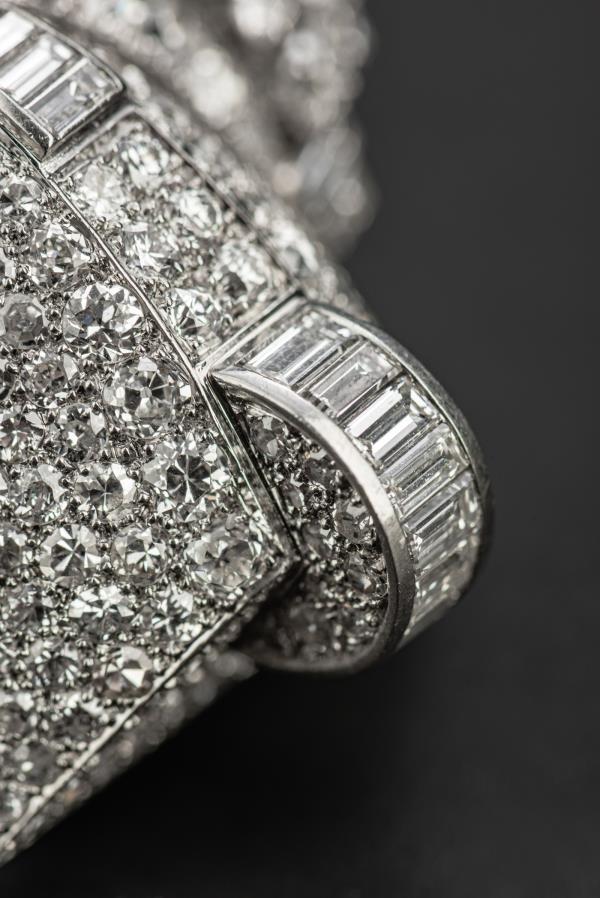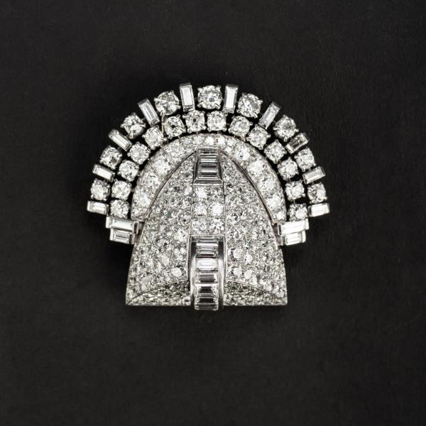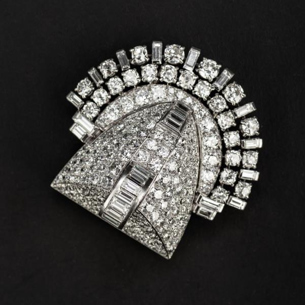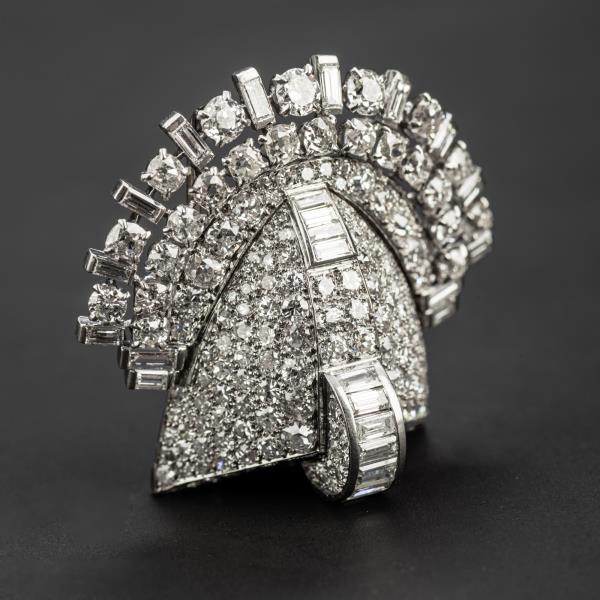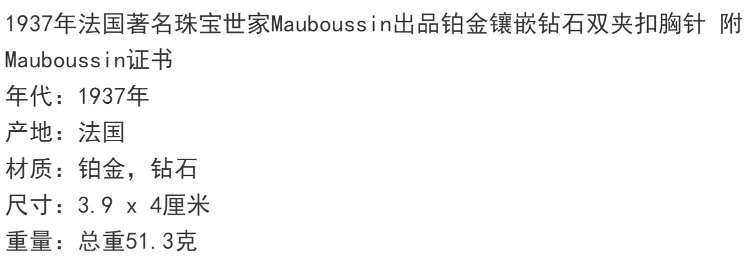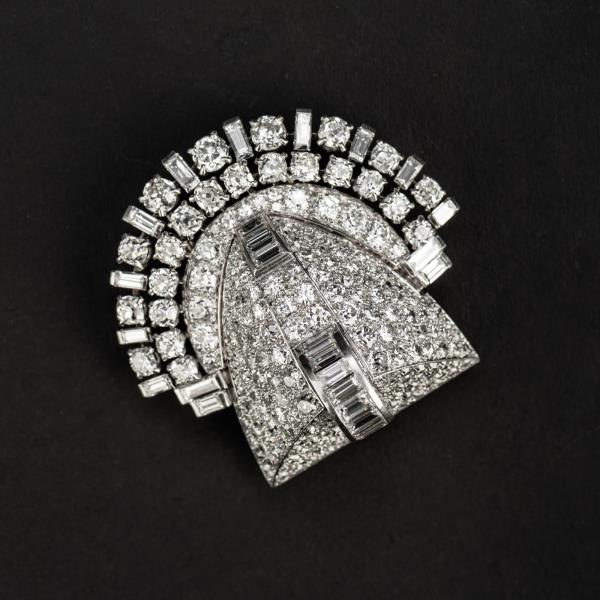 独角鹿西洋古董珠宝首饰法国Mauboussin铂金镶嵌钻石双夹扣胸针