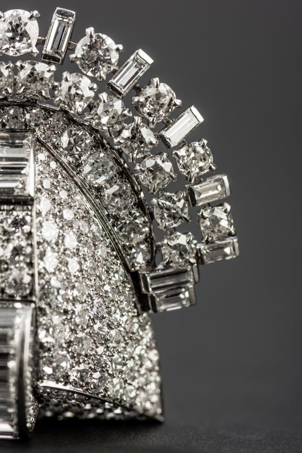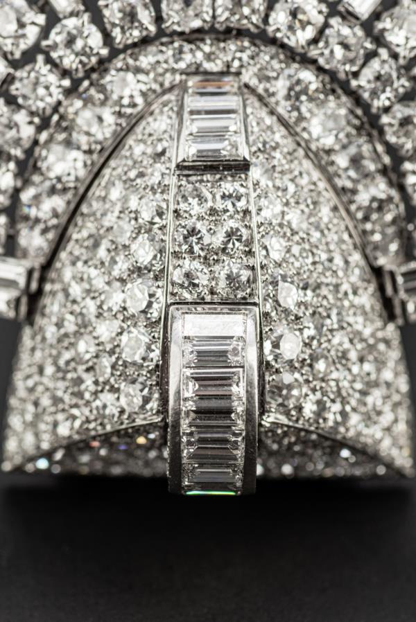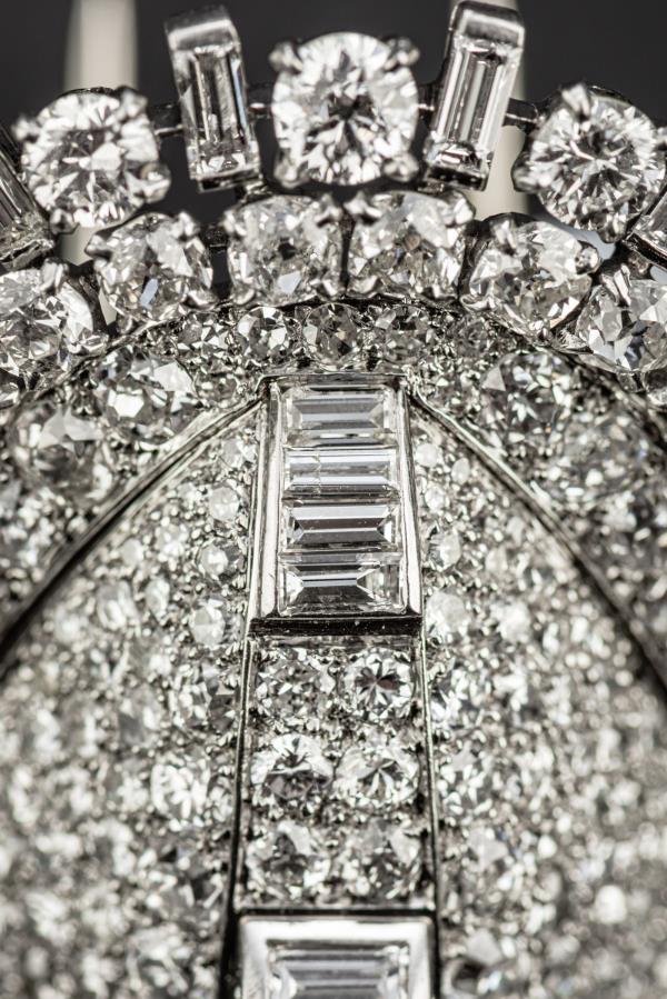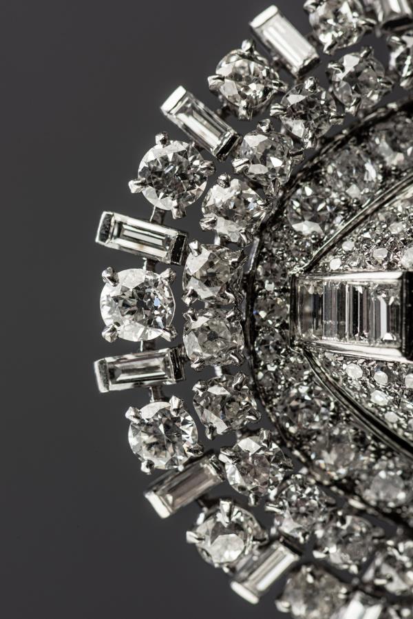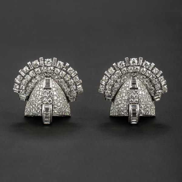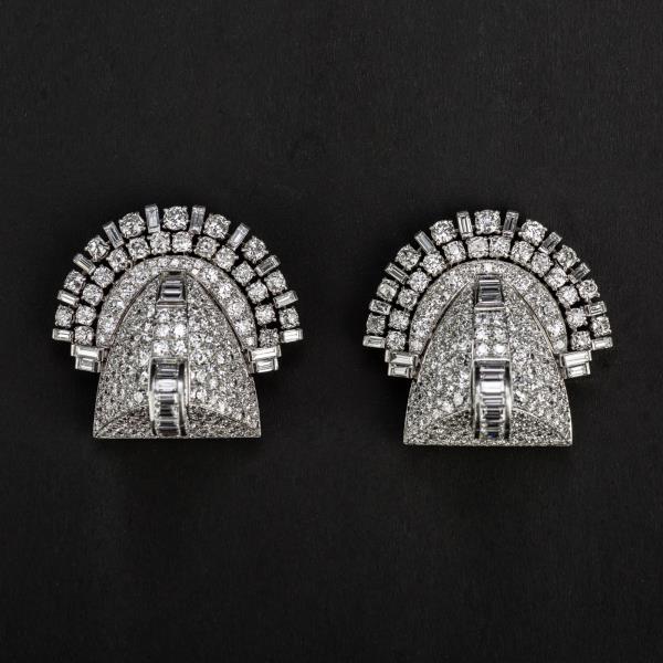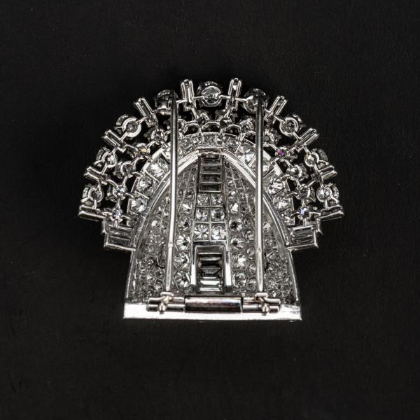 独角鹿西洋古董珠宝首饰法国Mauboussin铂金镶嵌钻石双夹扣胸针