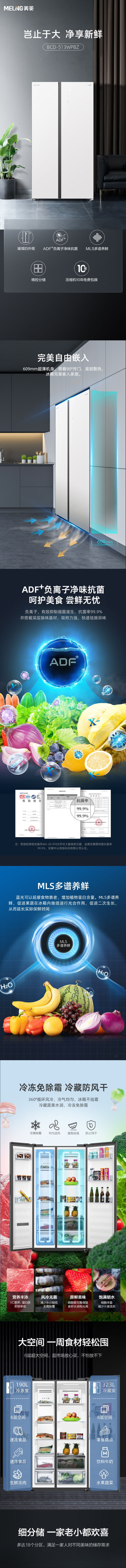 美菱(MeiLing)(202803)【线下同款】513升超薄嵌入式对开门冰箱 家用一级能效底部散热嵌入式智能玻璃门大冰箱 BCD-513WPBZ【60.9薄】