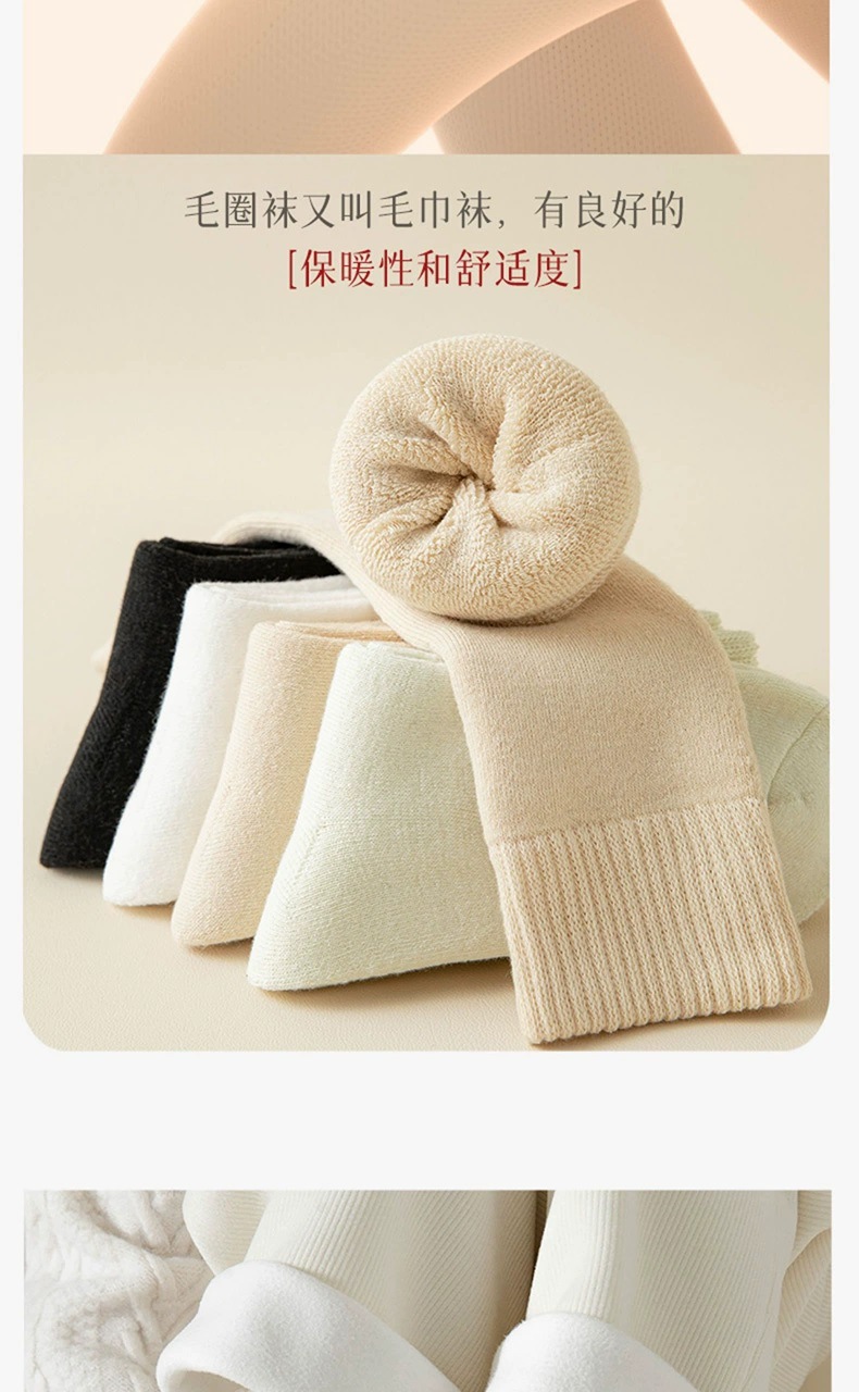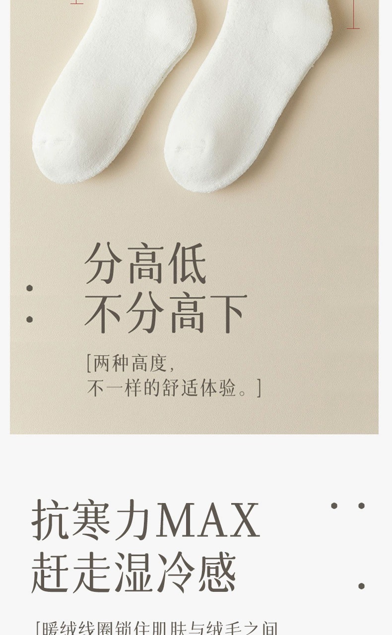 「10双装!木棉鱼毛圈袜」袜子女中筒保暖雪地袜 男女款加绒加厚款保暖 舒适亲肤告别冬天寒冷配饰