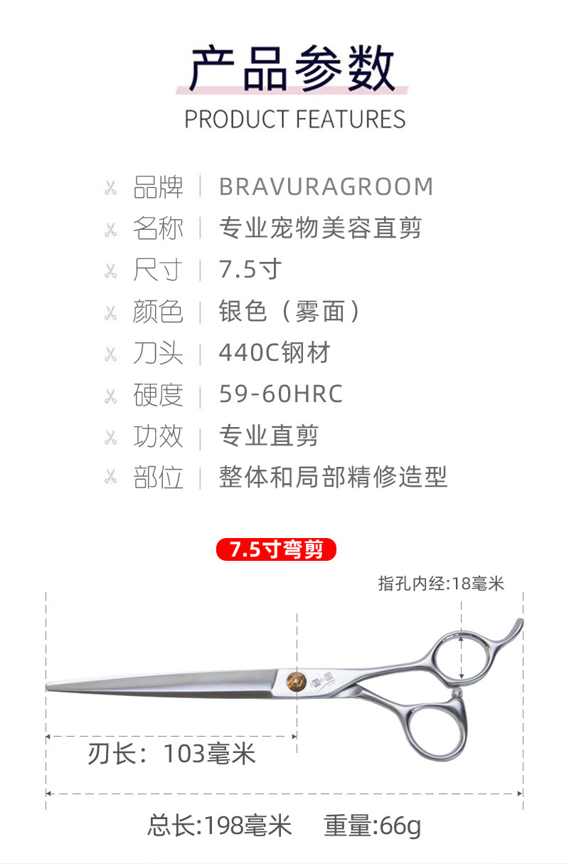 直剪 B3D-70意大利BRAVURAGROOM 宠物美容B系列