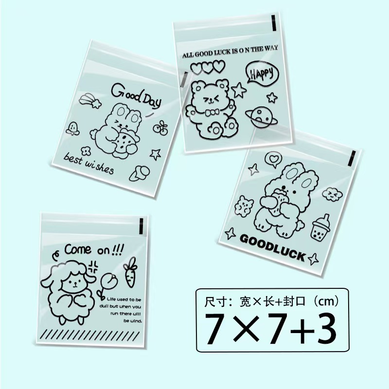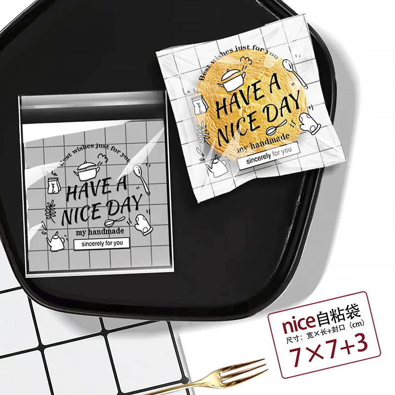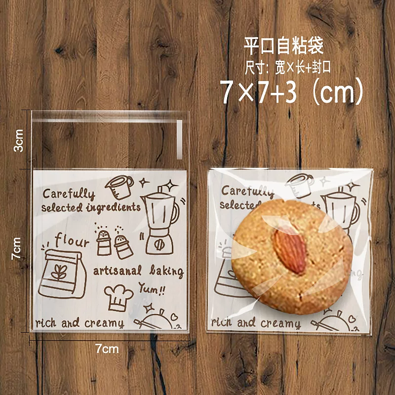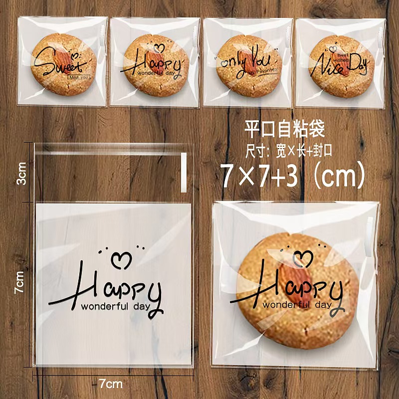 7*7cm平口自粘袋 100入 饼干零食糖果雪花酥自粘小包装袋花样小袋