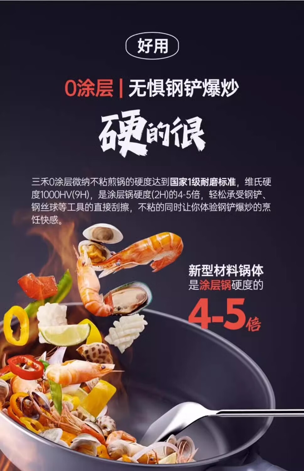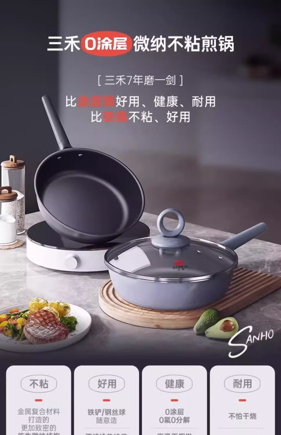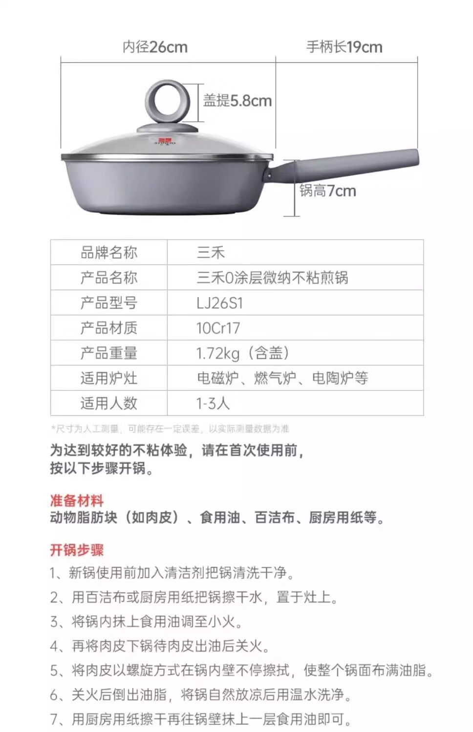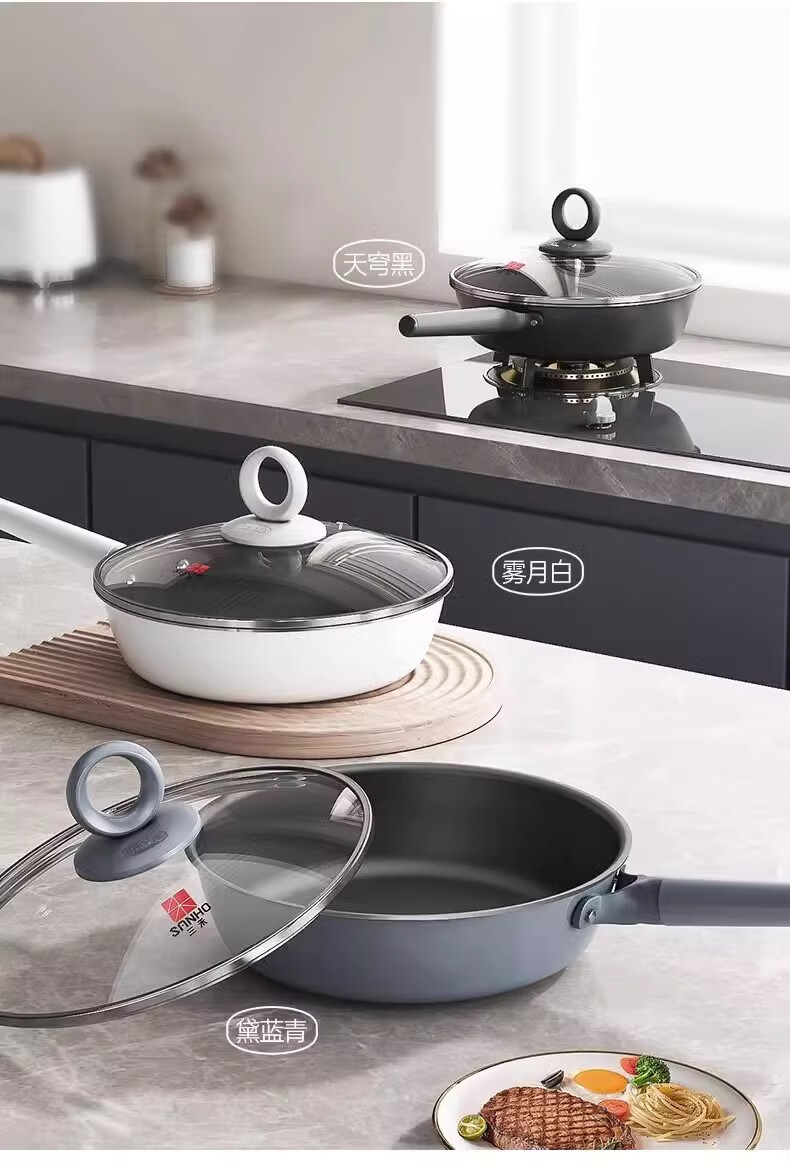 三禾0涂层不粘煎锅LN26S1 26CM(黛蓝青/天穹黑)