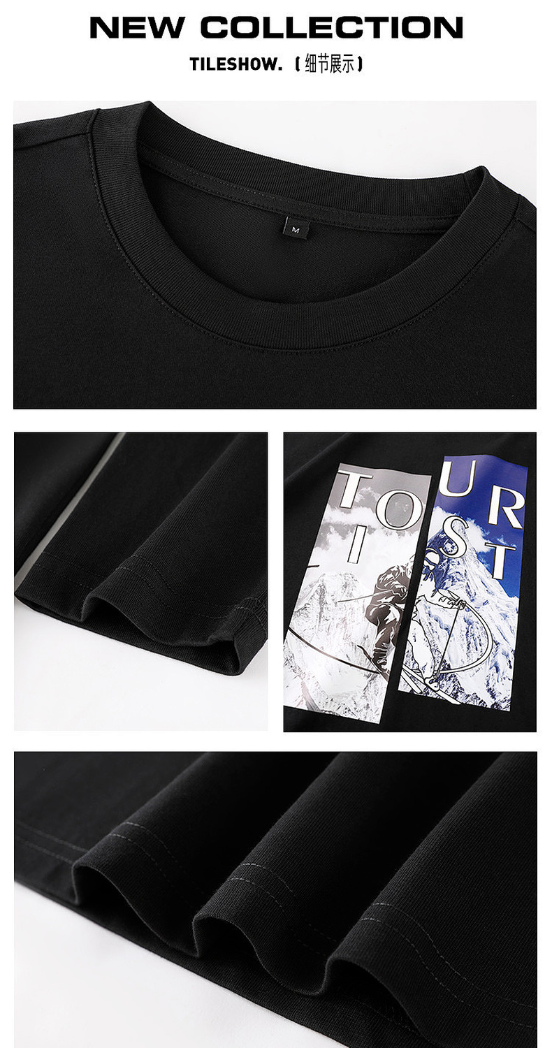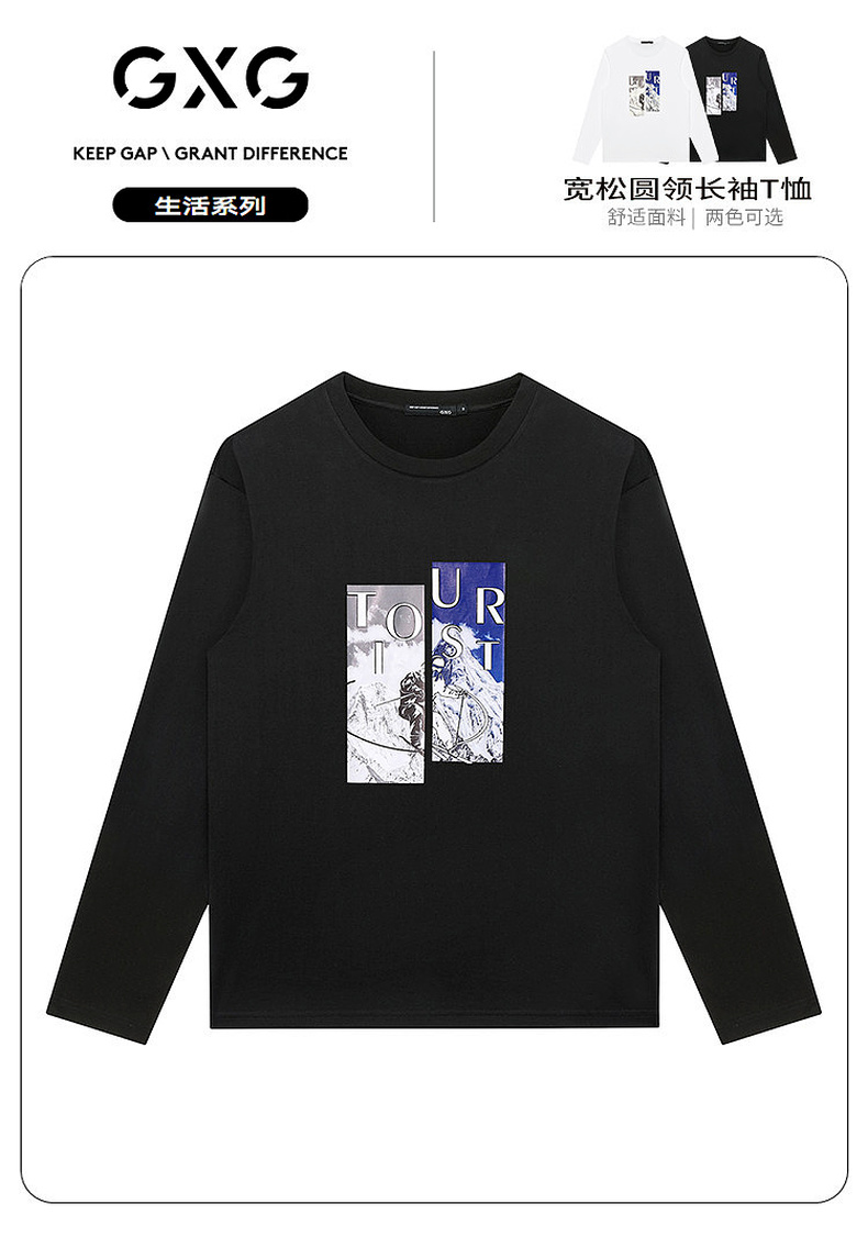 GXG男装【雪山滑板】春季简约印花纯棉男士长袖T恤打底衫K&C