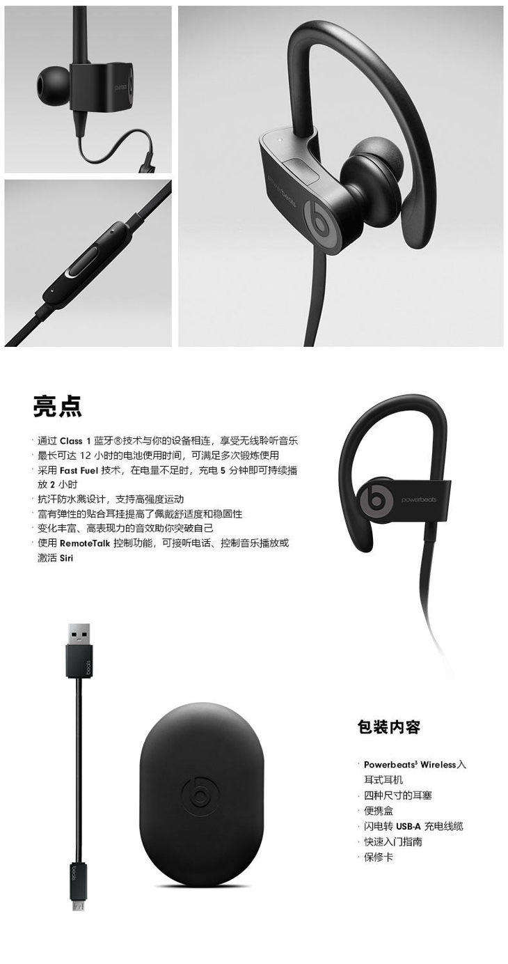 Beats Powerbeats3 Wireless 双动力 带麦蓝牙入耳式耳机
