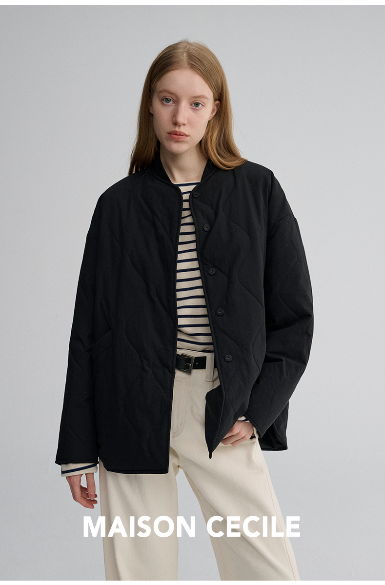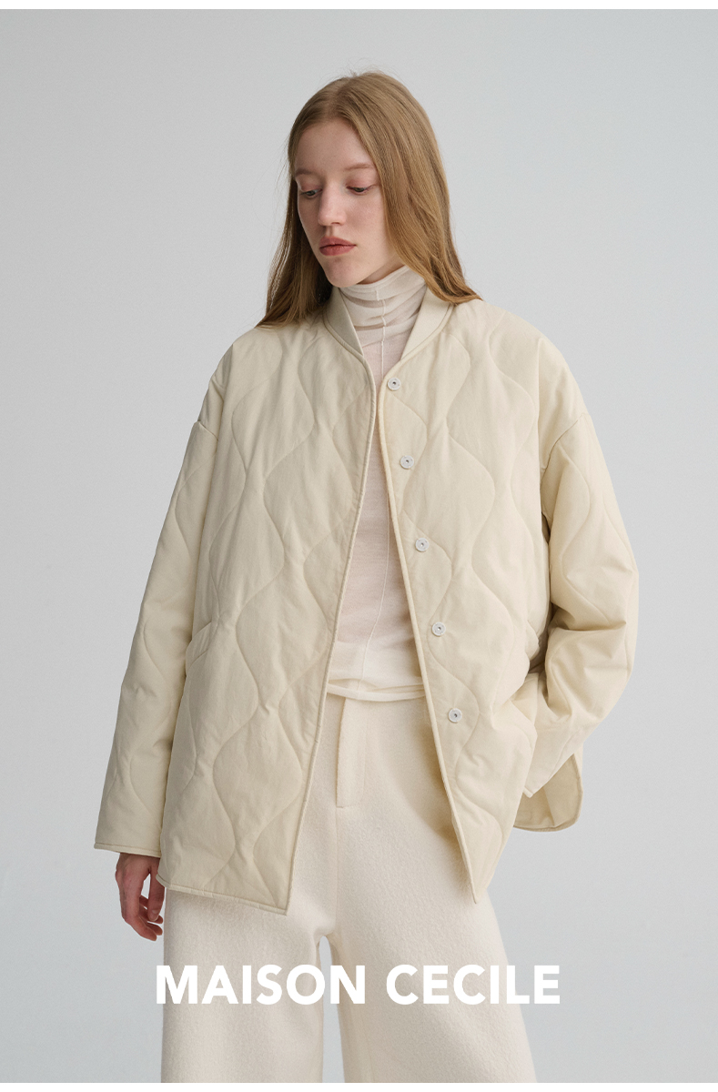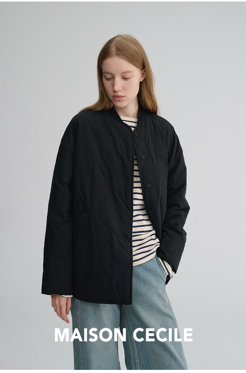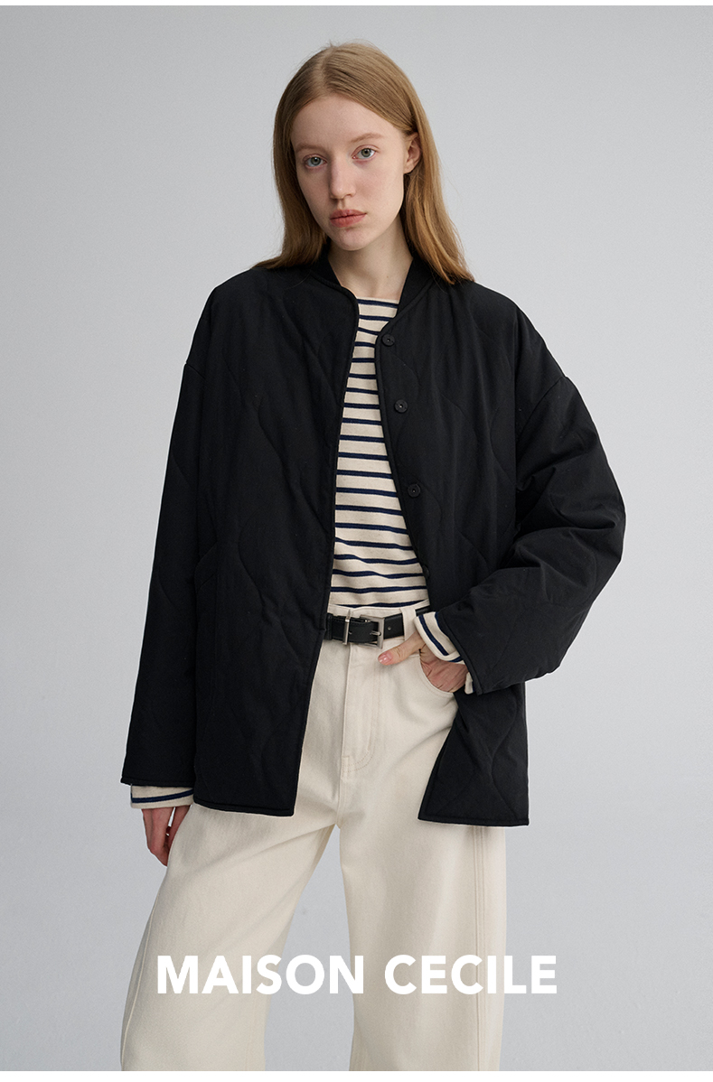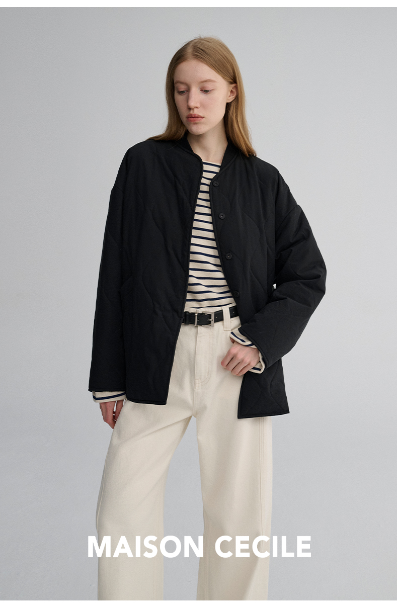 MAISON CECILE 秋冬复古设计感菱格绗缝轻便保暖廓形棉服外套