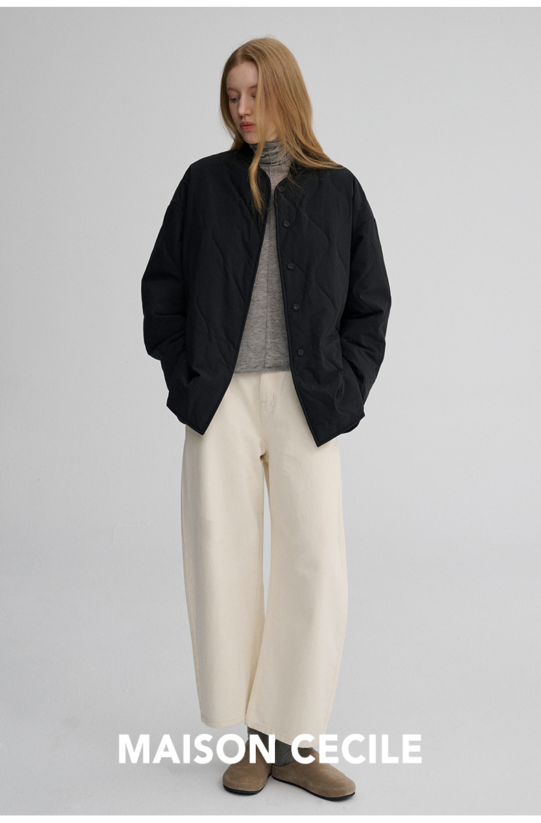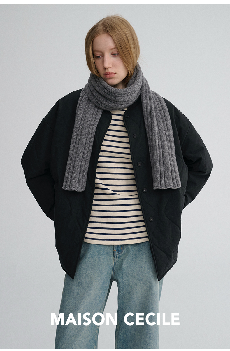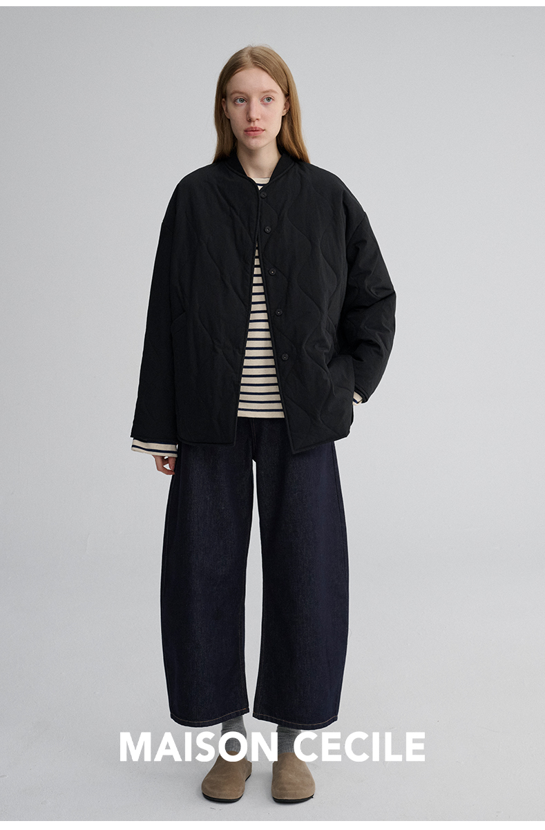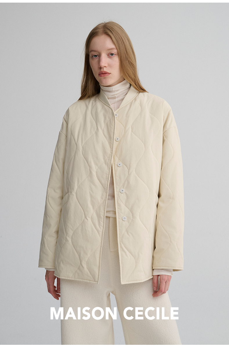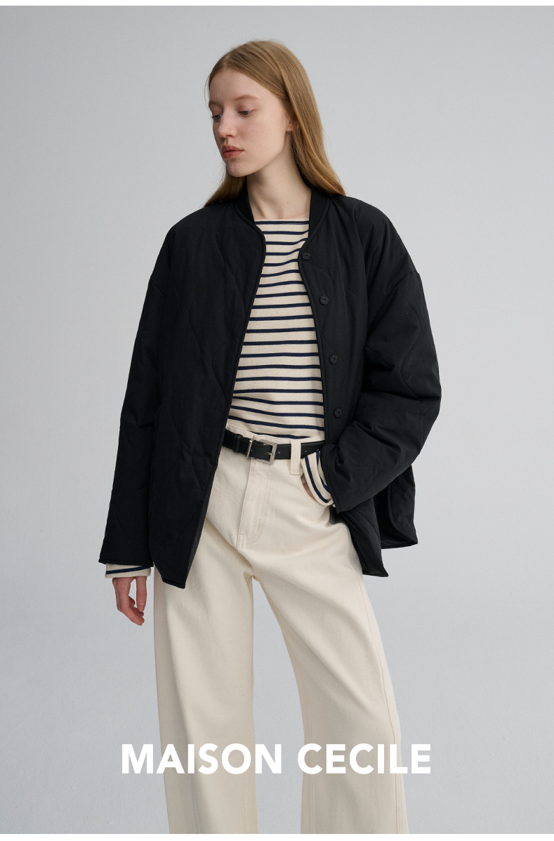 MAISON CECILE 秋冬复古设计感菱格绗缝轻便保暖廓形棉服外套