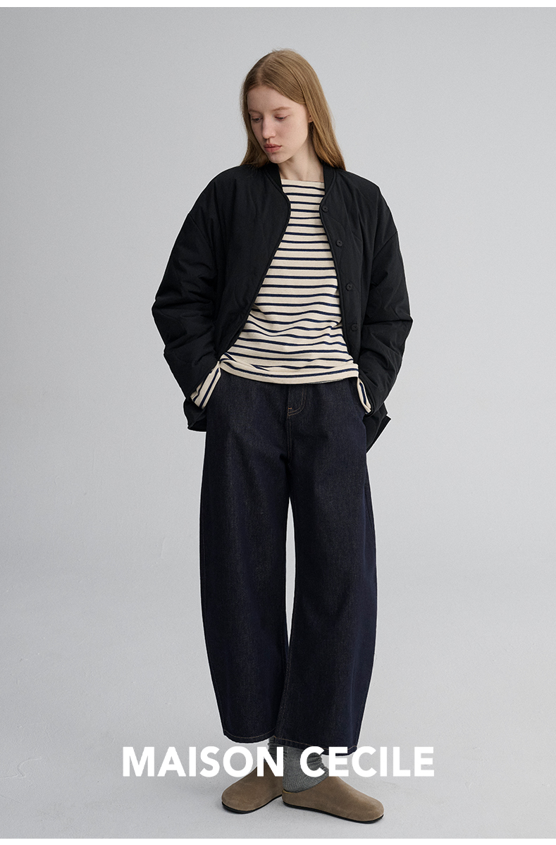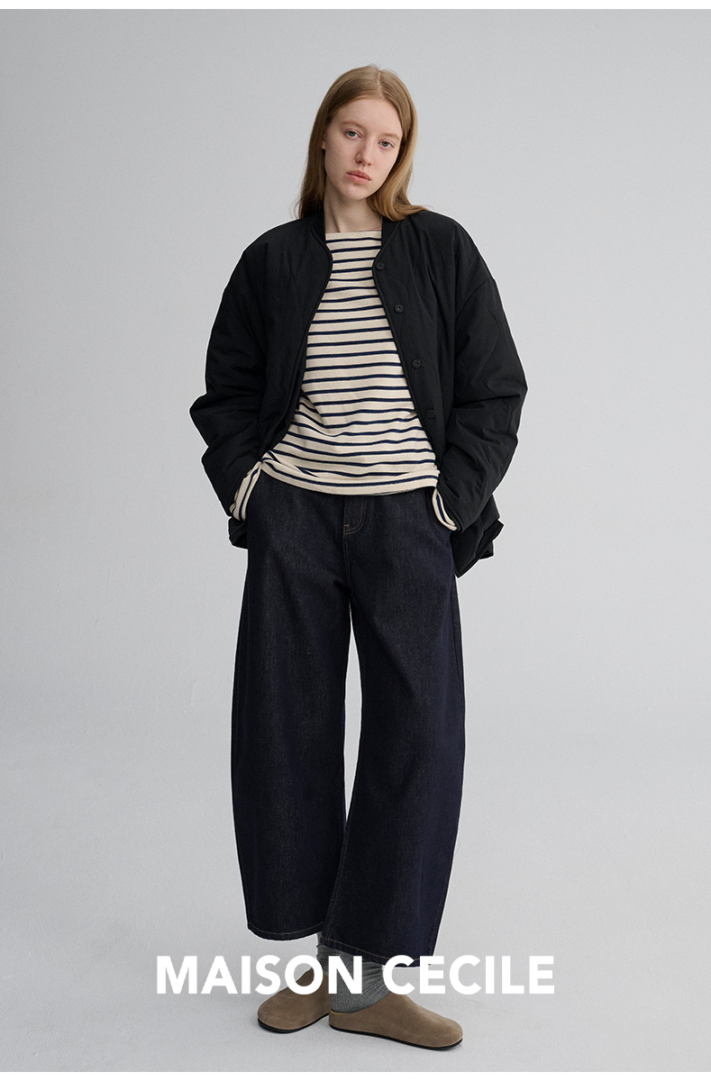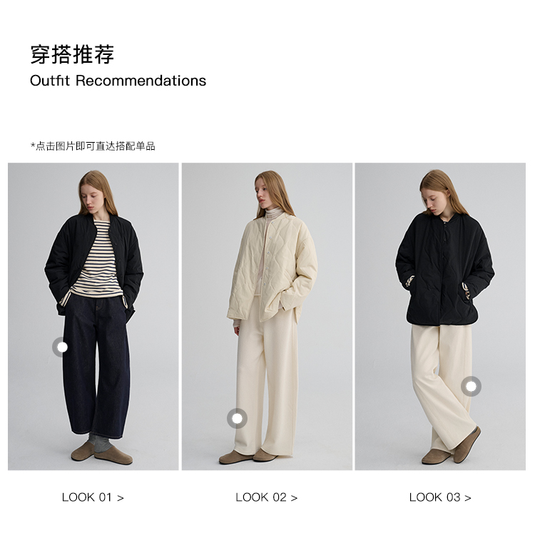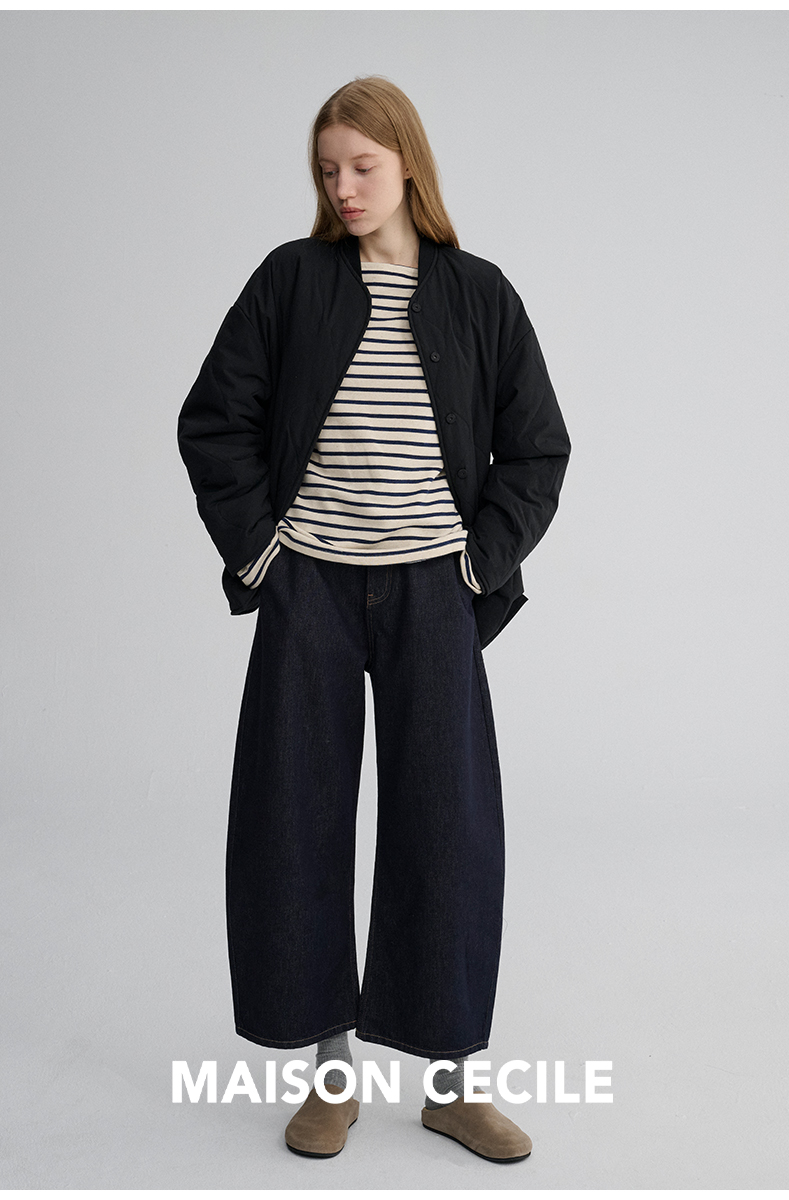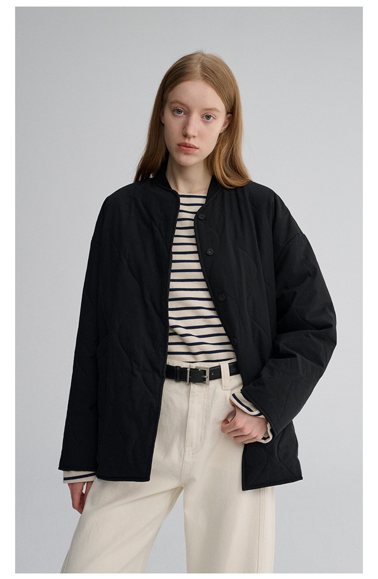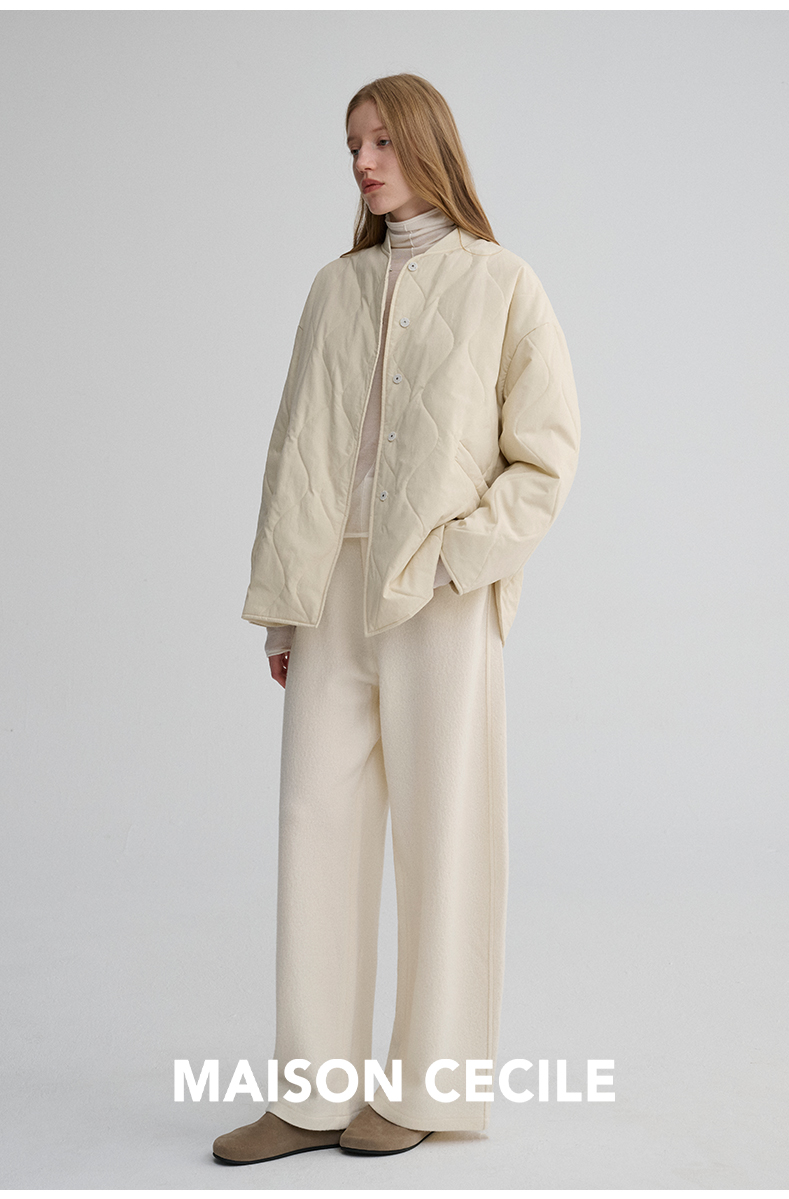 MAISON CECILE 秋冬复古设计感菱格绗缝轻便保暖廓形棉服外套