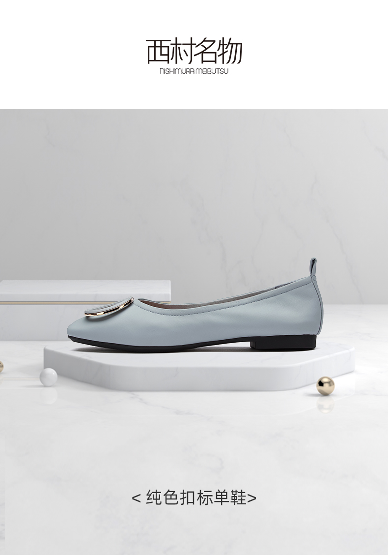 西村名物2021春季新款女鞋平底软底小跟单鞋女百搭软皮浅口T21AE14141