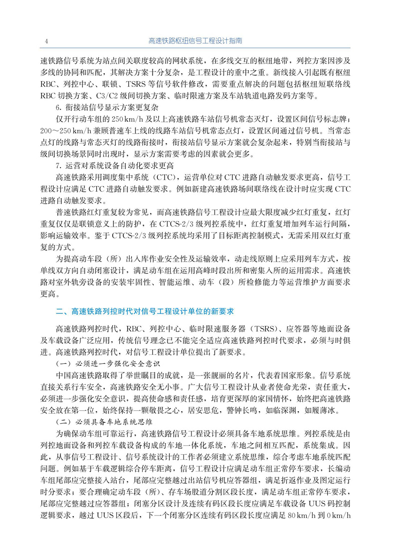 全书共7章,第一章为概述,主要介绍高铁列控时代对设计单位的新要求;第二章为枢纽地区联锁控制方案,主要介绍枢纽地区联锁控制方案总体原则及枢纽特殊线路所典型案例;第三章为信号显示方案,主要介绍衔接站信号显示、优先满足CTC进路自动触发要求的场间联锁分界方案等;第四章为枢纽列控方案,主要介绍枢纽RBC设置方案、RBC切换方案、短联络线C3→C2级间切换方案、连续大号码道岔区域列控方案等;第五章为轨道电路设计指南,主要介绍轨道电路发码总体方案、典型车站发码及载频切换方案等;第六章为列控数据设计指南;第七章为信号与站前等专业接口设计指南。