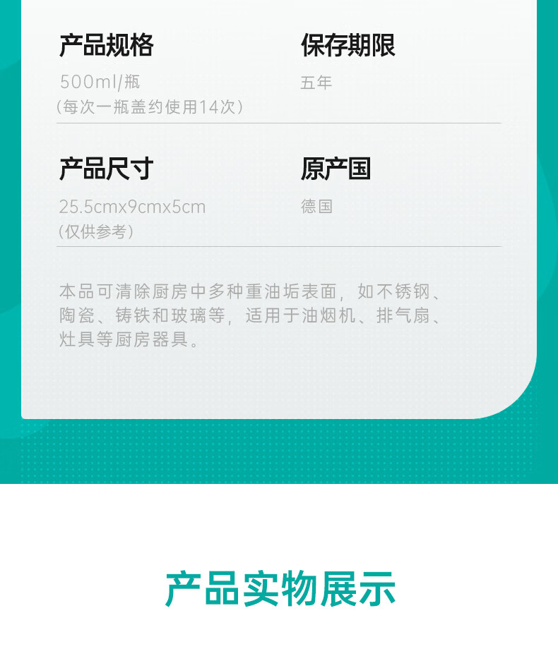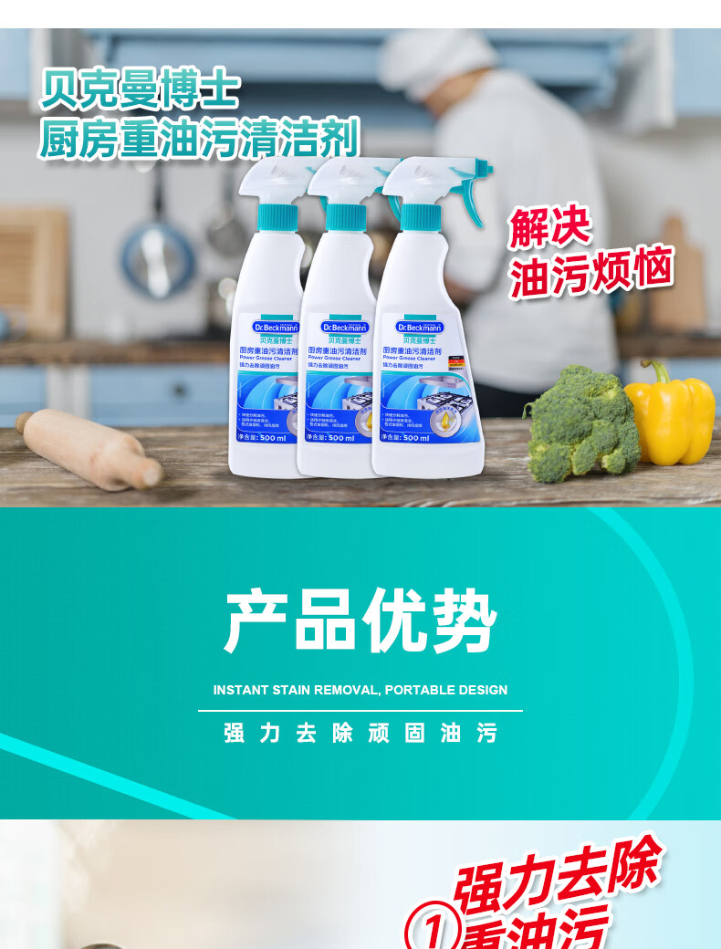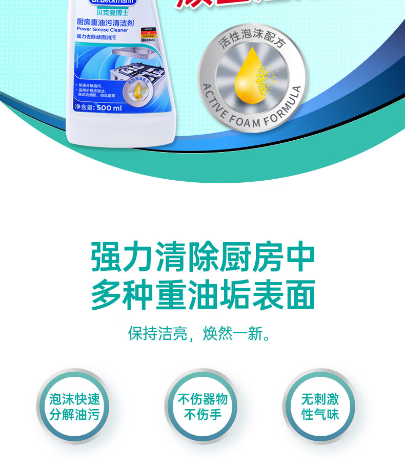 【大扫除神奇】德国贝克曼博士 厨房重油污清洁剂不锈钢灶具油烟机清洗剂500ml(26年8月)