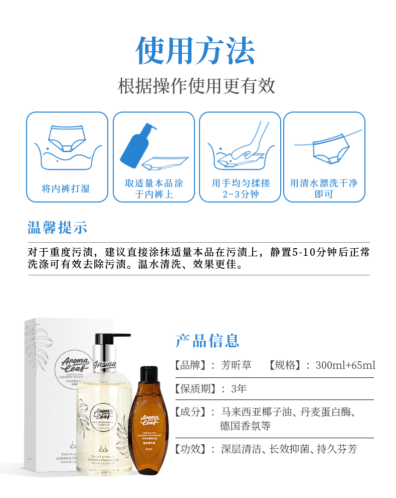 【内衣裤专用洗衣液】抑菌除螨率高达99%!浓缩型植物配方 更强效清洁 能有效分解血渍 污渍!清洗安全无残留!一份300ml*1瓶+旅行装60ml*3瓶!【SDK-J仓】