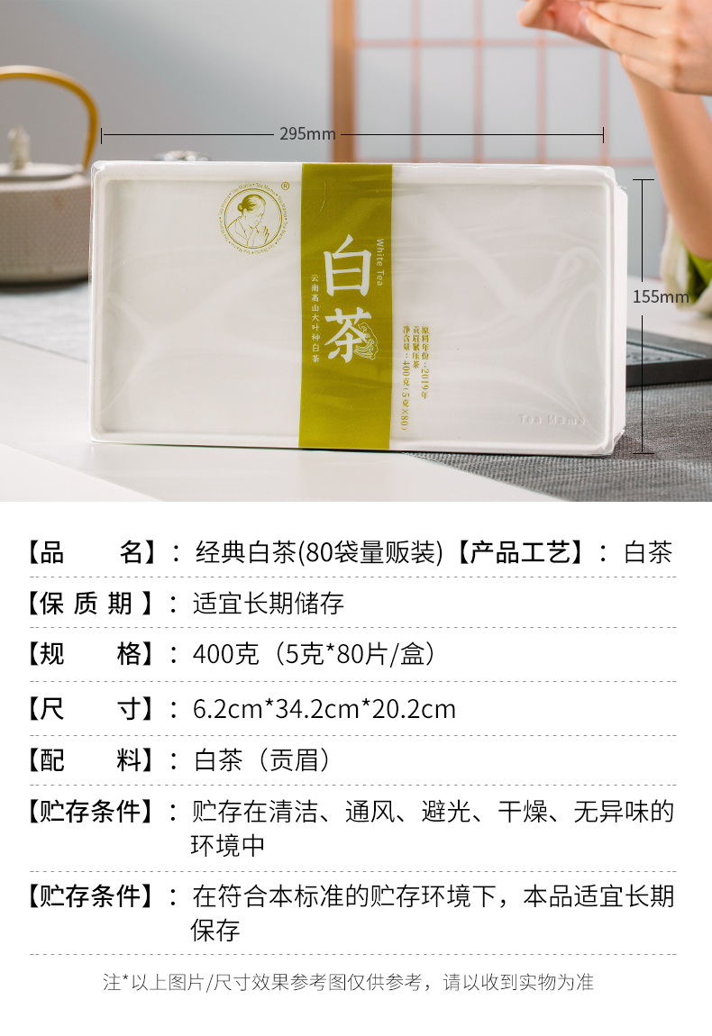 澜沧古茶2021年茶妈妈经典白茶贡眉单泡装80袋量贩装礼盒400g