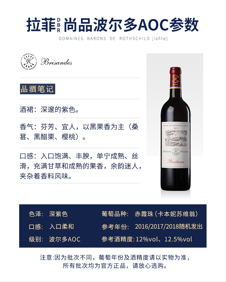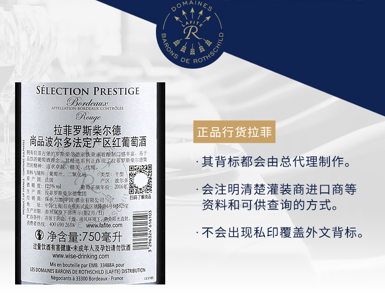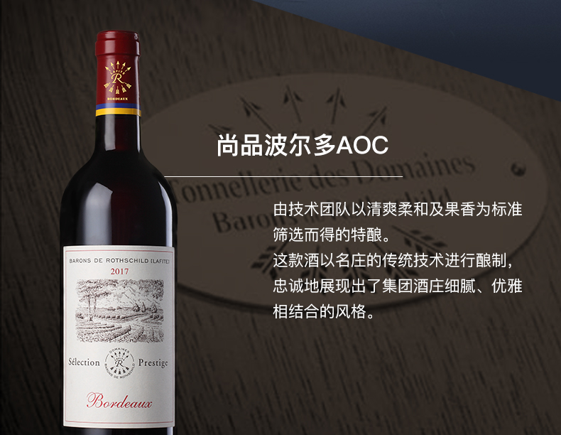 拉菲红酒 法国原瓶进口 尚品波尔多 AOC干红葡萄酒单支750ml