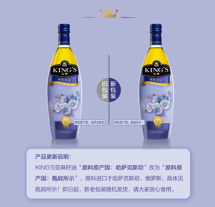【疫情管控地区停发】金龙鱼King's 亚麻籽油750ML