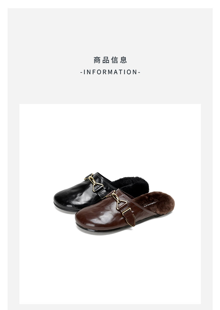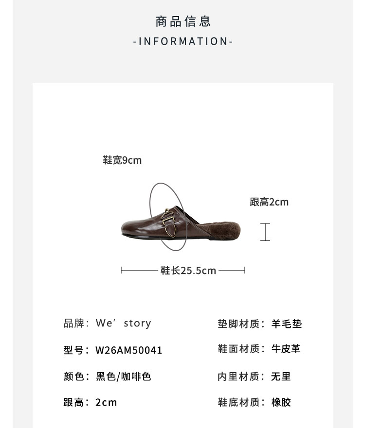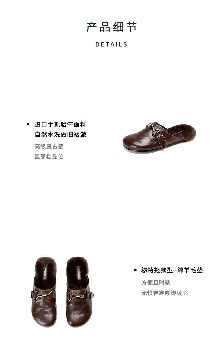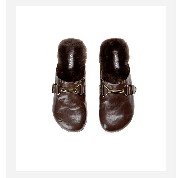 Westory2026年春季圆头低跟水洗牛皮羊毛穆勒拖鞋休闲慵懒风毛拖W26AM50041