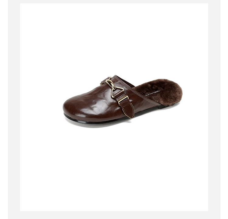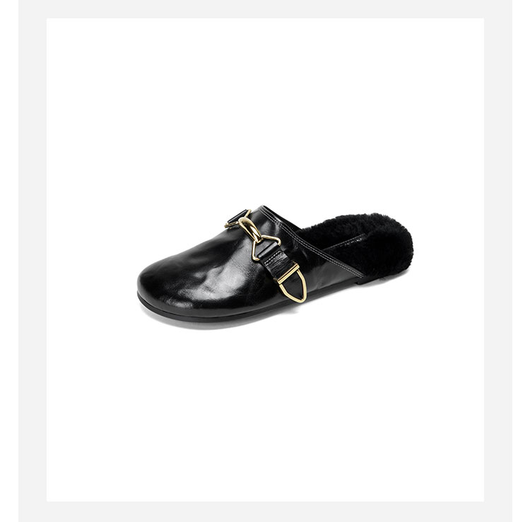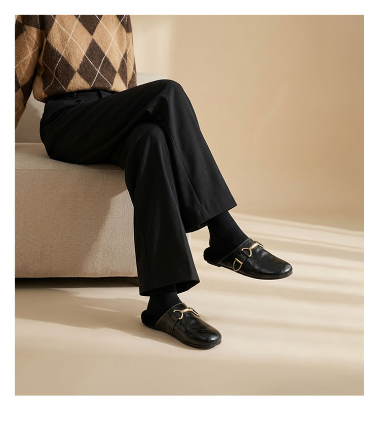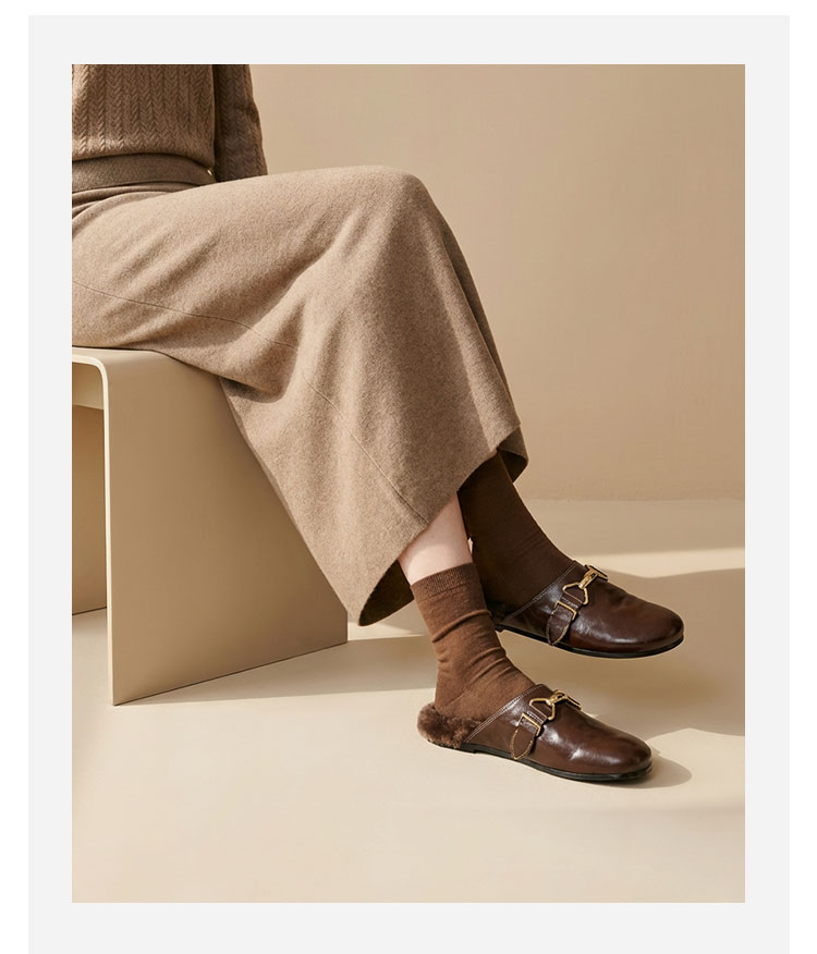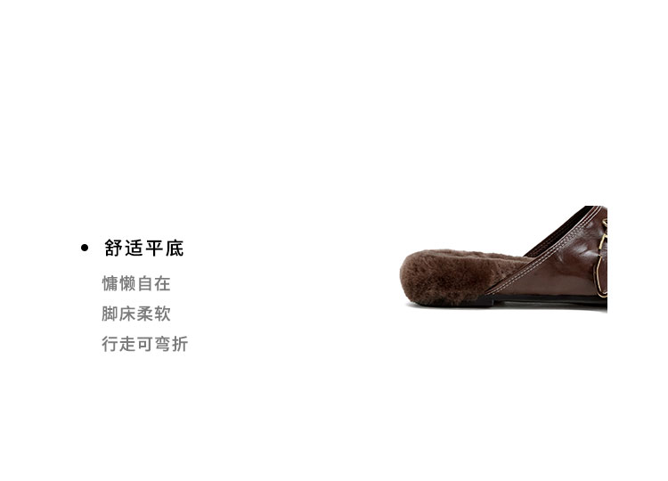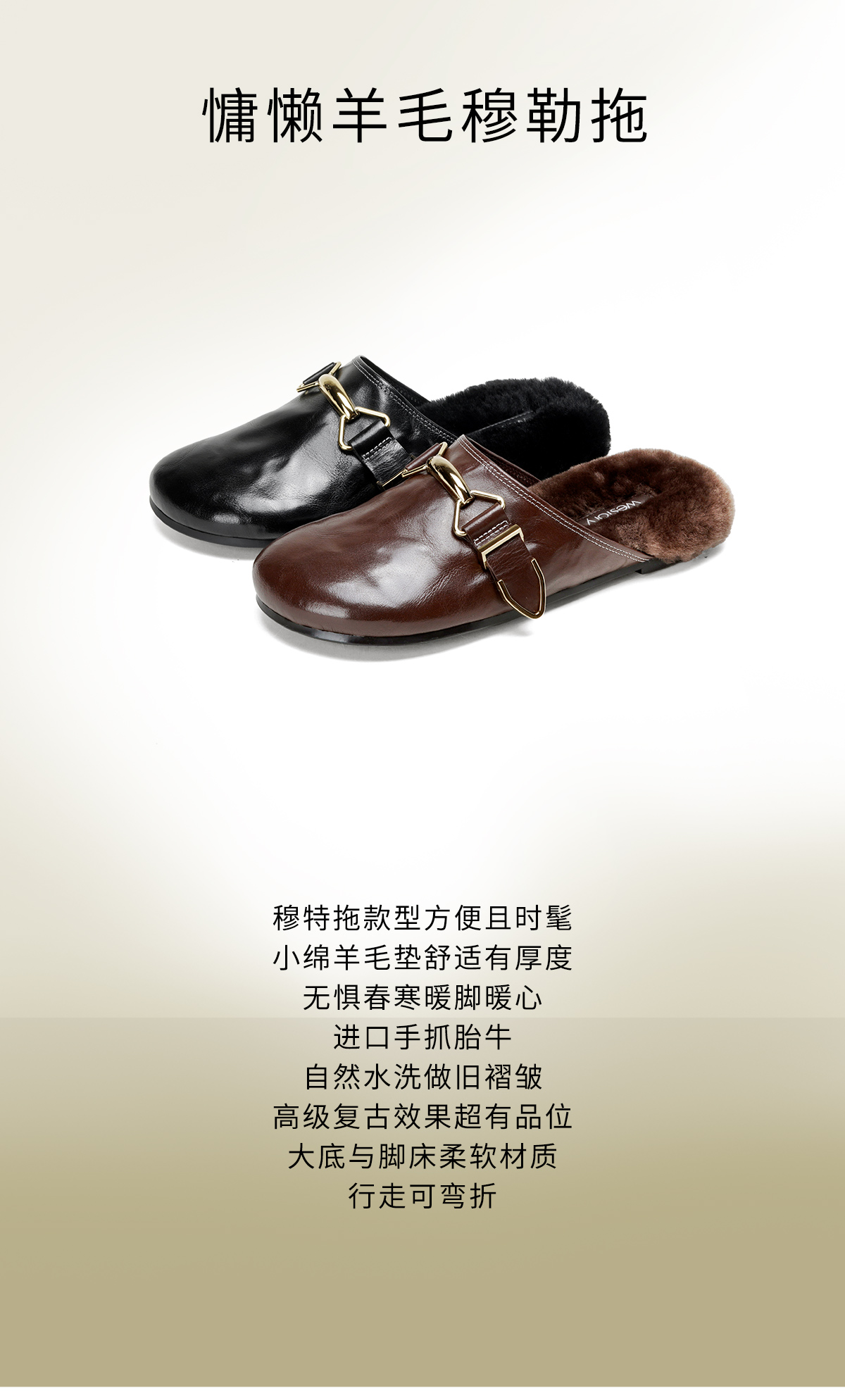 Westory2026年春季圆头低跟水洗牛皮羊毛穆勒拖鞋休闲慵懒风毛拖W26AM50041