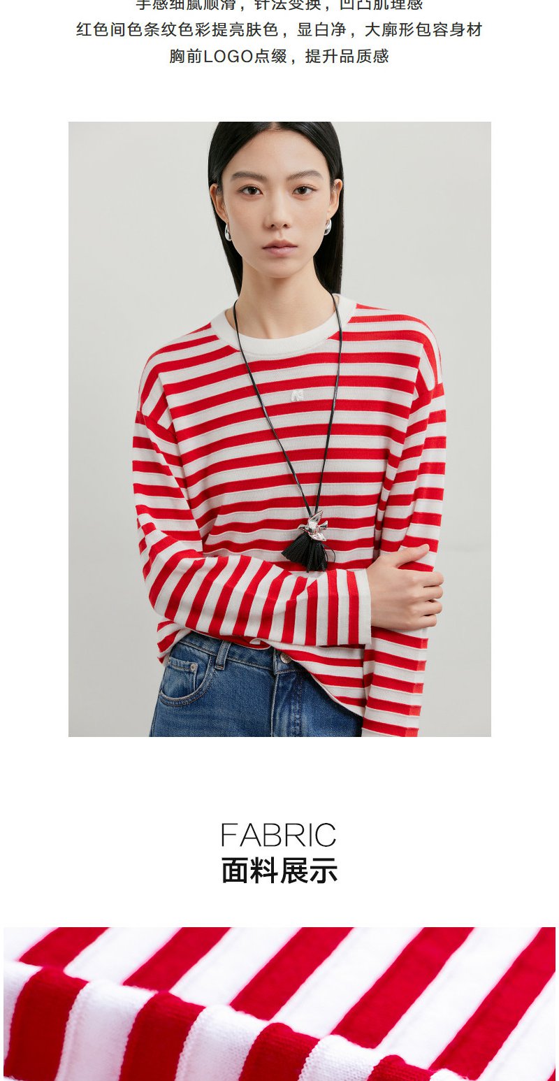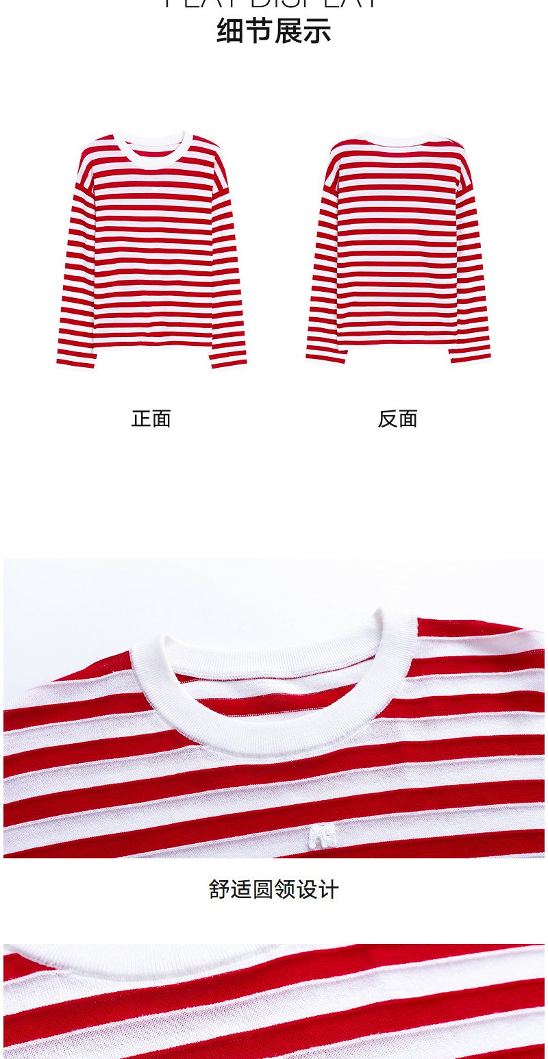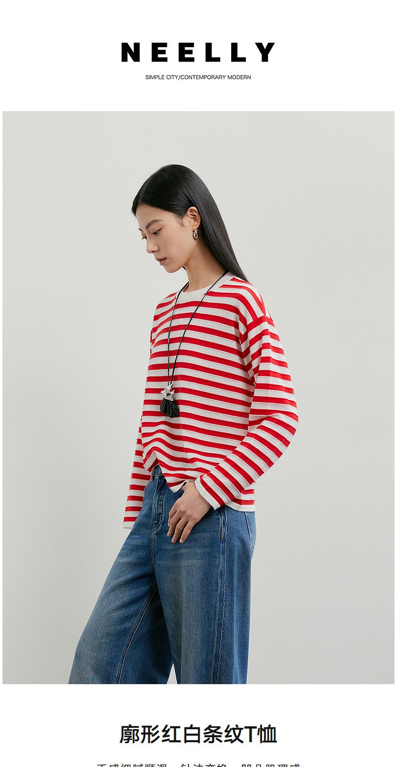 NEELLY纳俪商场同款春季新款时尚撞色条纹长袖T恤女休闲百搭上衣N26011A01007