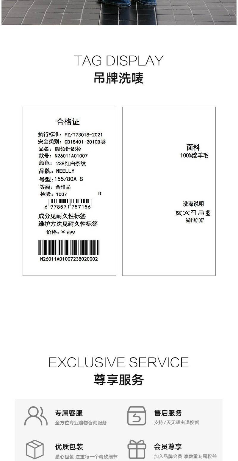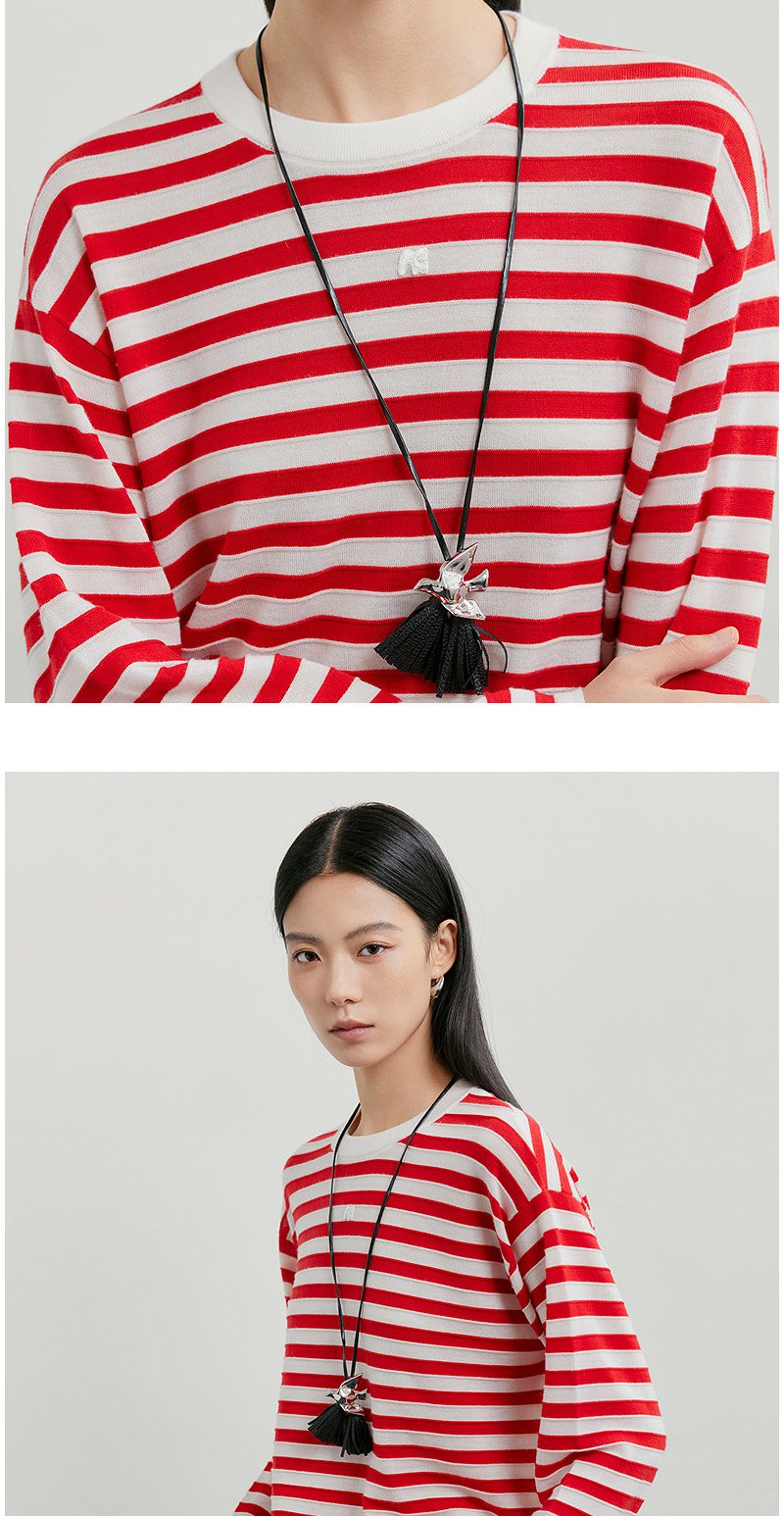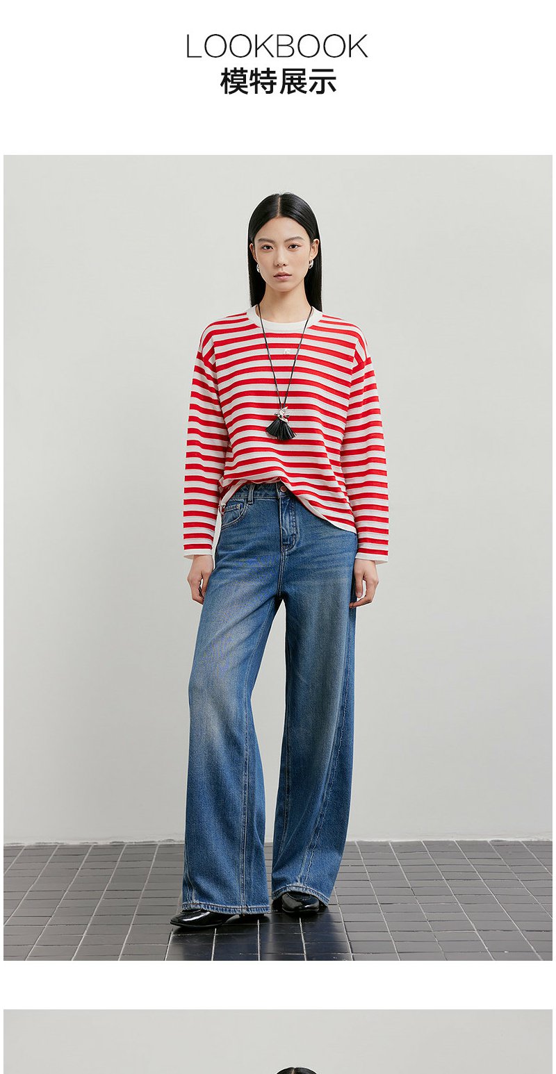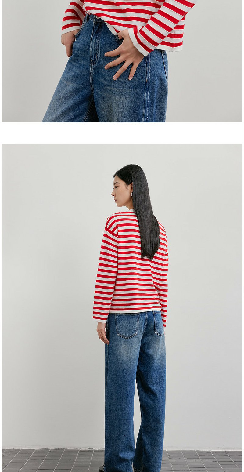 NEELLY纳俪商场同款春季新款时尚撞色条纹长袖T恤女休闲百搭上衣N26011A01007
