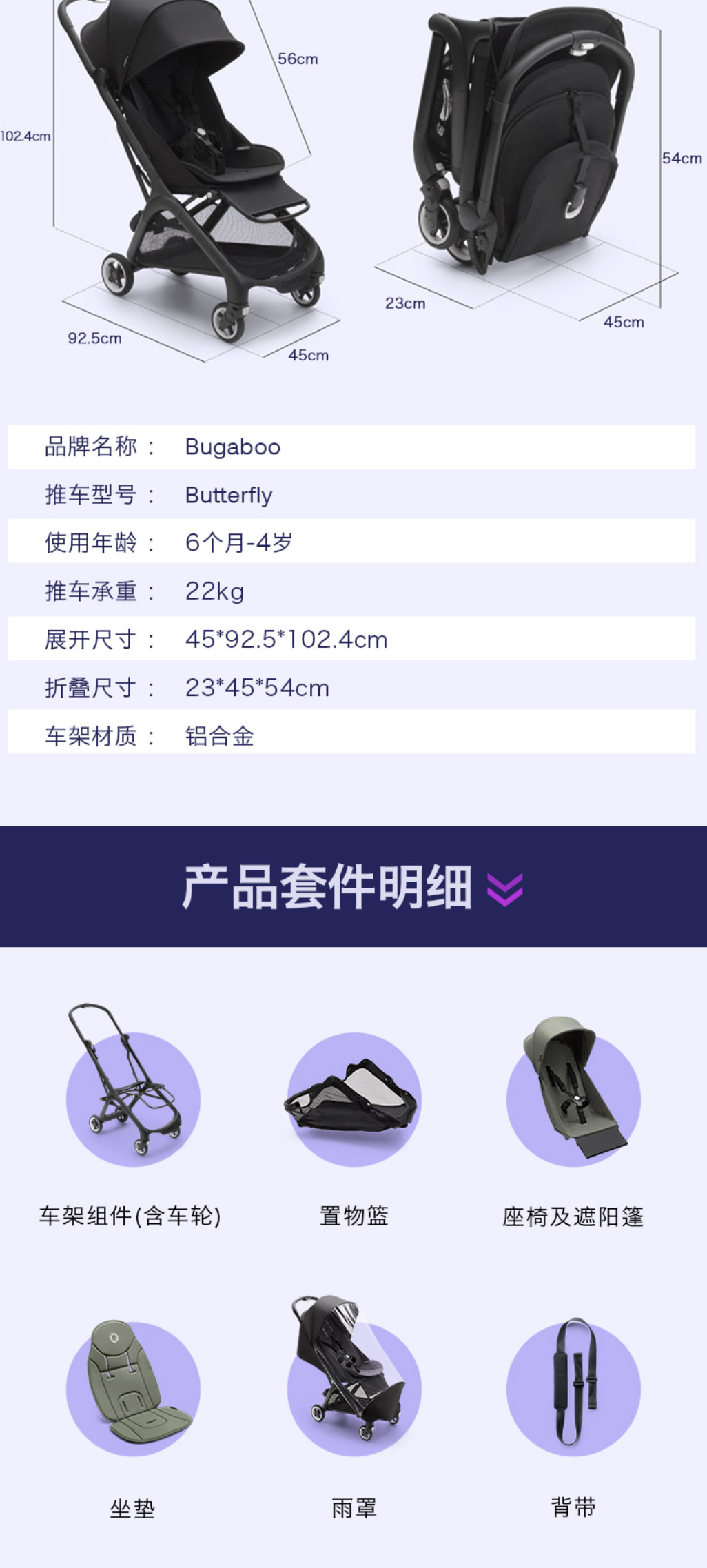 荷兰Bugaboo博格步 Butterfly 1 小蝴蝶1代 婴儿手推车 宝宝可坐 伞车可登机 可躺轻便可折叠6m-4y