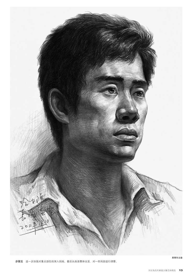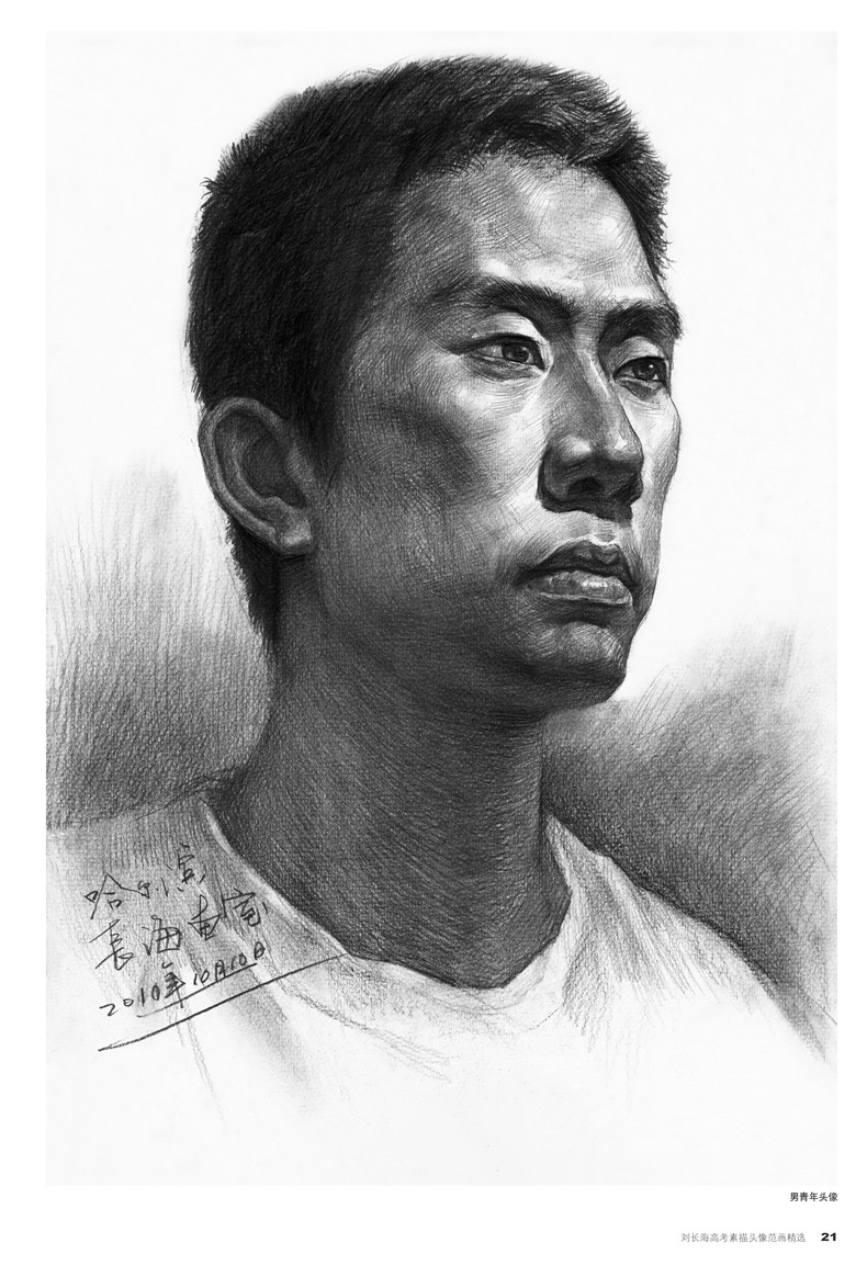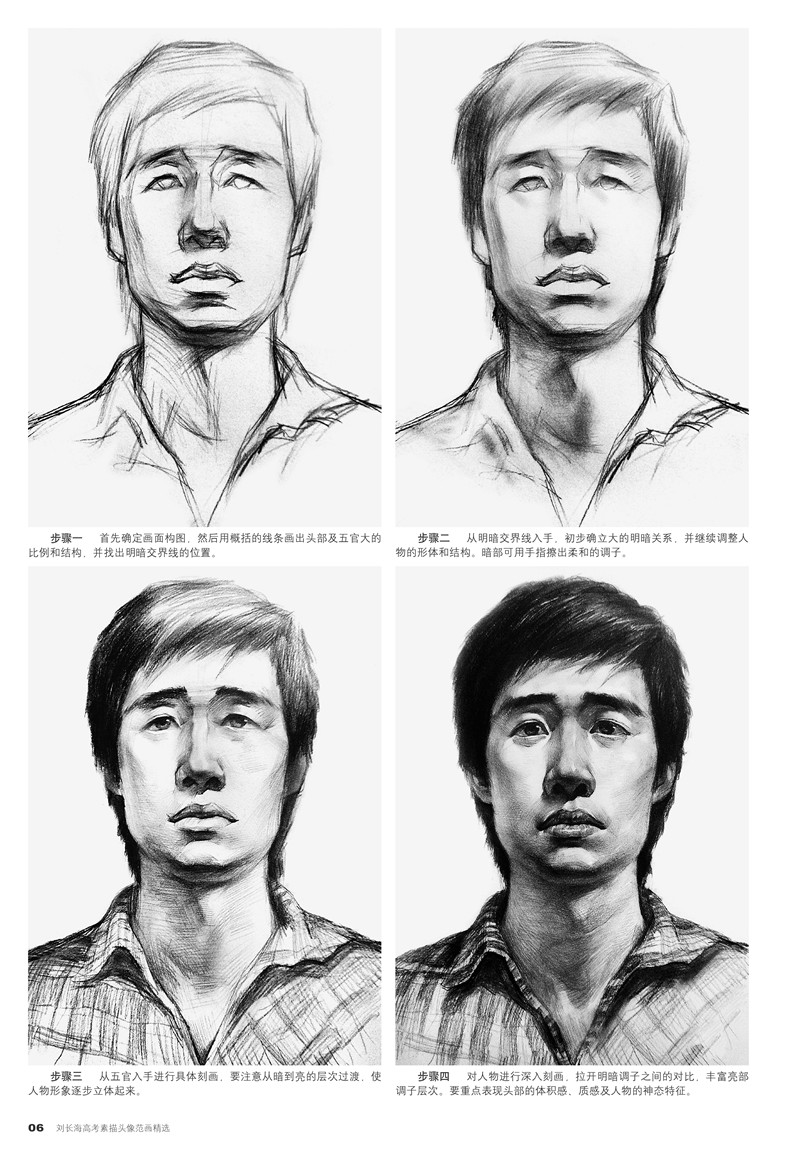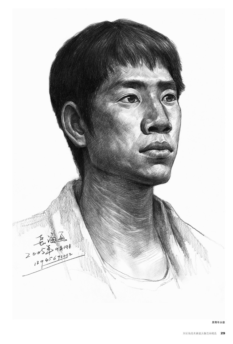 《刘长海高考素描头像范画精选》内容简介:图文并茂地介绍了人物头部结构、骨骼肌肉、五官及不同年龄段真人头像的画法,通过大量精选的典型实例,系统讲解了素描头像的表现技法,着重阐述了素描头像的绘画流程、绘画方法及步骤。