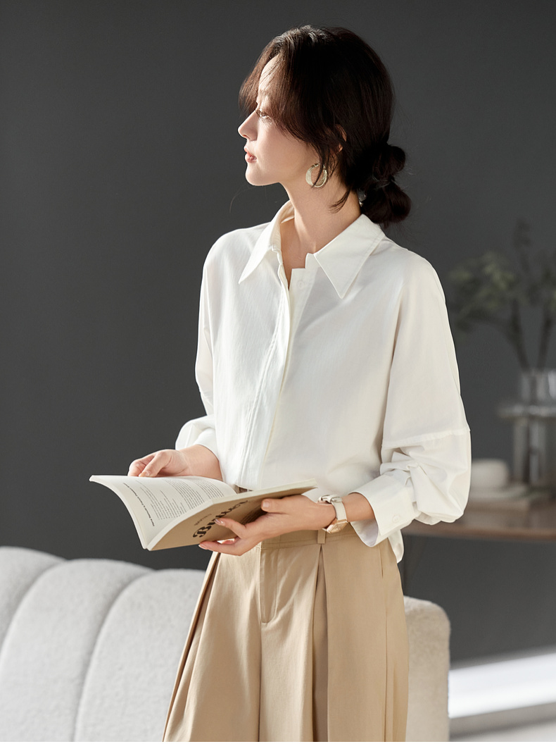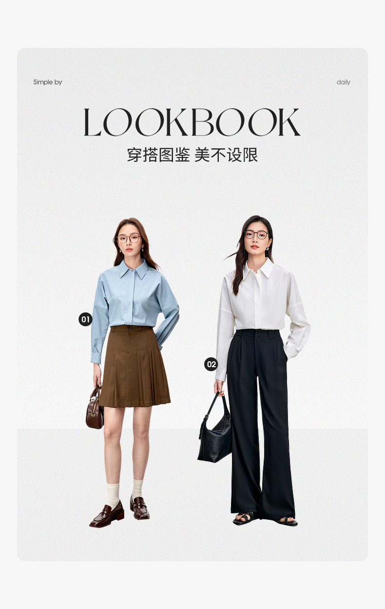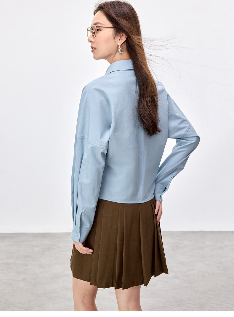 【内购】【莱赛尔棉休闲衬衫】时尚通勤落肩袖H型莱赛尔含棉衬衫-153CA3249X